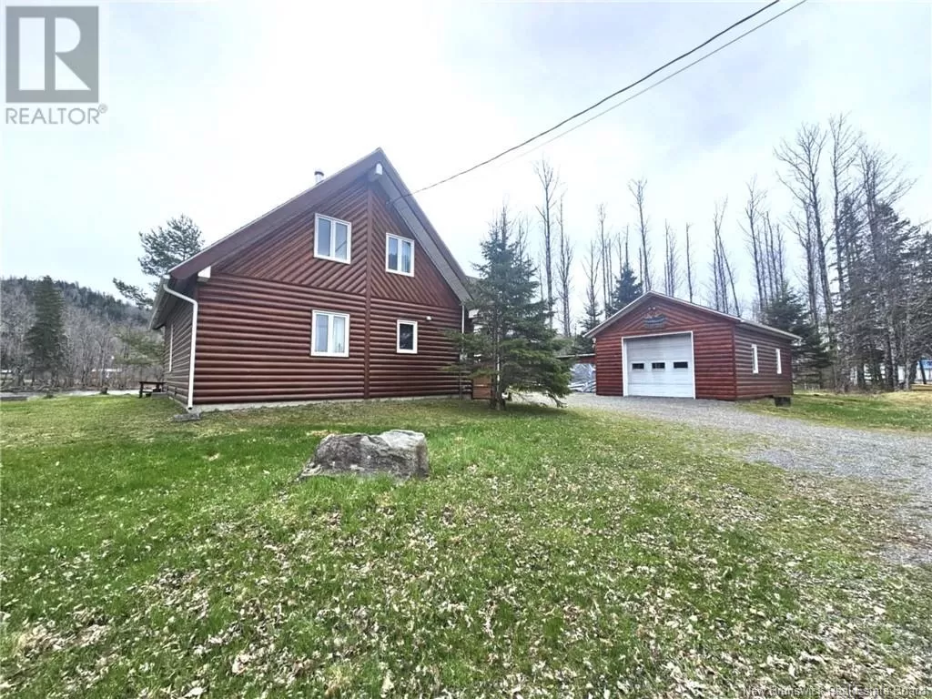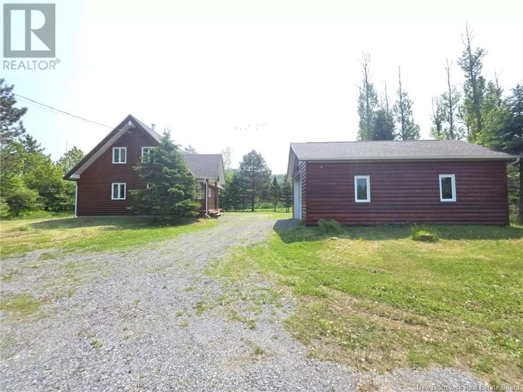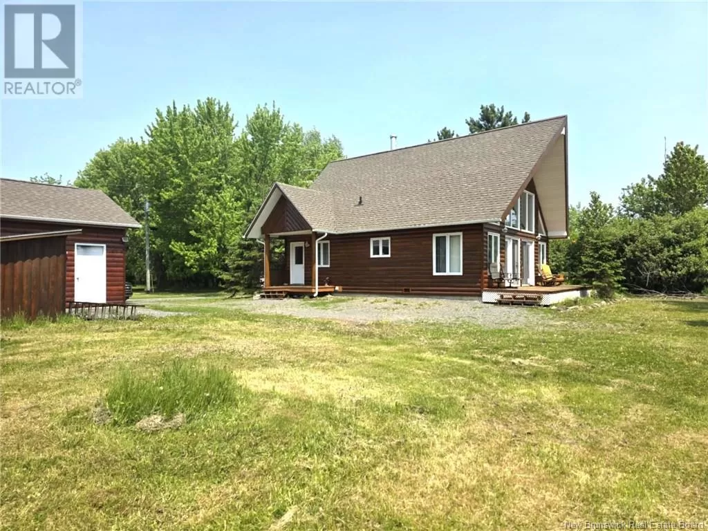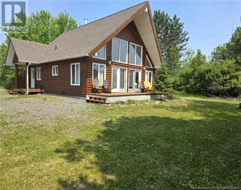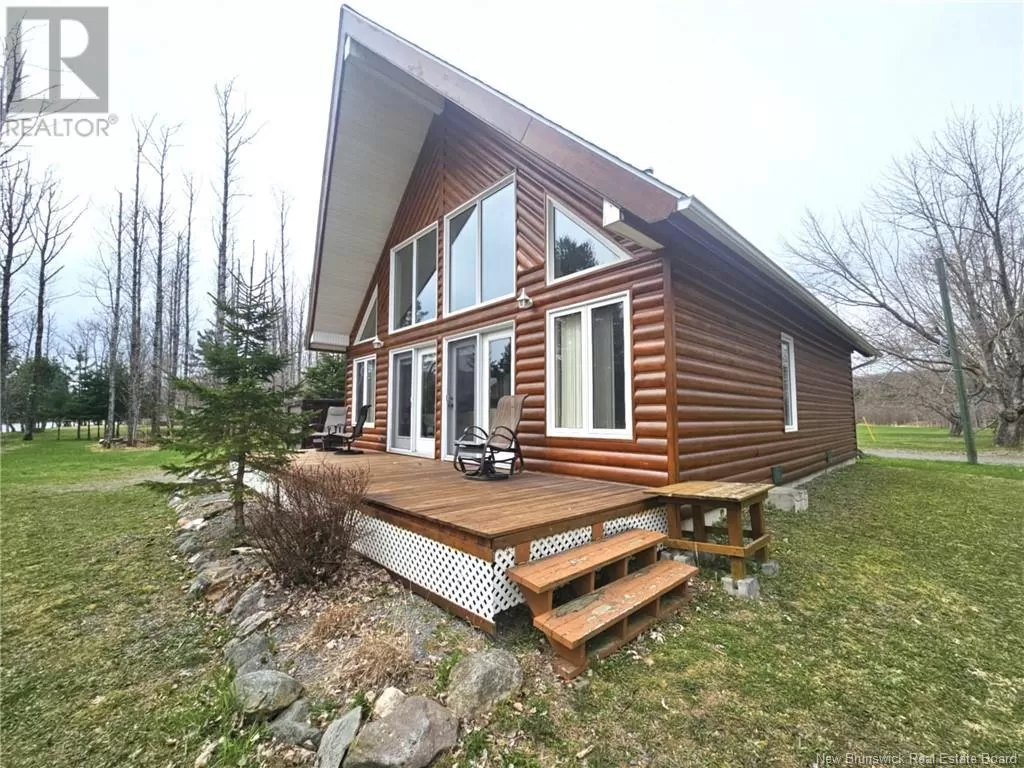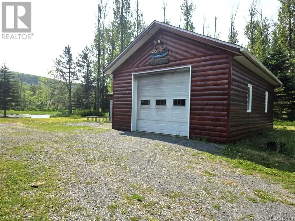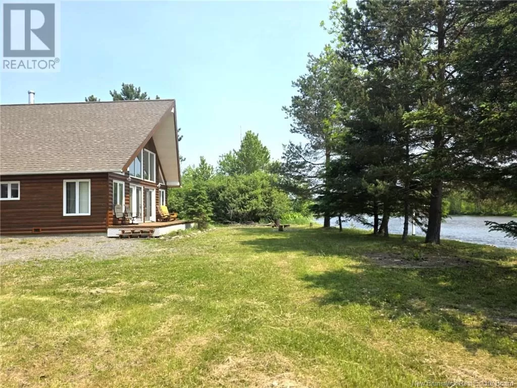 Breathtaking Waterfront Retreat on the Tobique River. Welcome to your dream escape! This gorgeous waterfront property offers cozy comfort, a peaceful woodsy feel, and picture-perfect views of the stunning Tobique River. Sitting on 2.6 acres , youll love the sense of space, privacy, and the abundance of wildlifekeep an eye out for friendly neighbouring deer! Relax on the front deck and enjoy the soothing sounds of the river flowing bynature is truly at your doorstep. Inside, you'll find a warm and inviting atmosphere featuring convenient main-level laundry and a full bathroom. The spacious primary bedroom on the main floor offers double closets and easy access to everything you need. The open-concept kitchen, dining, and living area is the heart of the home, with a full wall of windows that bathe the space in natural light and offer breathtaking river views. Upstairs, a charming loft-style layout provides two additional bedroomsperfect for family, guests, or flexible use. A detached single-car garage adds convenience and storage options. Whether you're searching for a peaceful year-round residence, a weekend retreat, a second property, or even an Airbnb or rental unit, this home has endless potential. **There was a fire in the garage caused by fourwheeler. While the fire was contained there was damage to the garage ceiling and electrical and repairs will be required which presents the new owner a chance to personalize the space to their liking.** **shared well** (id:27476)