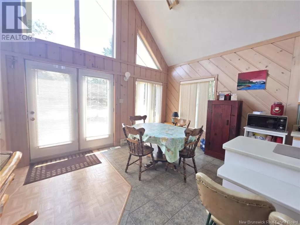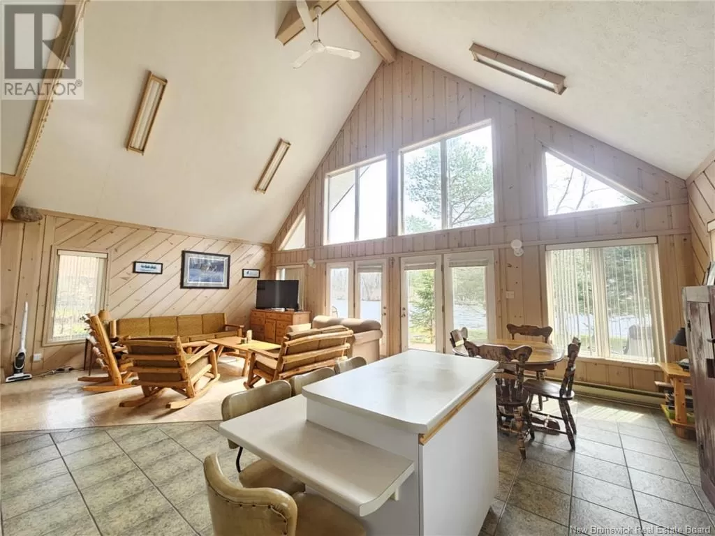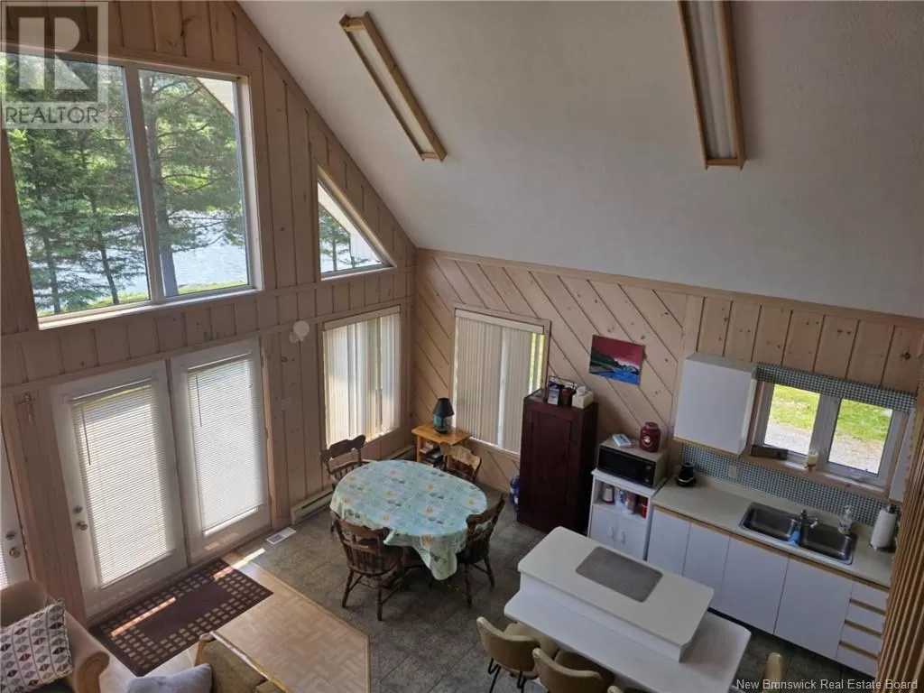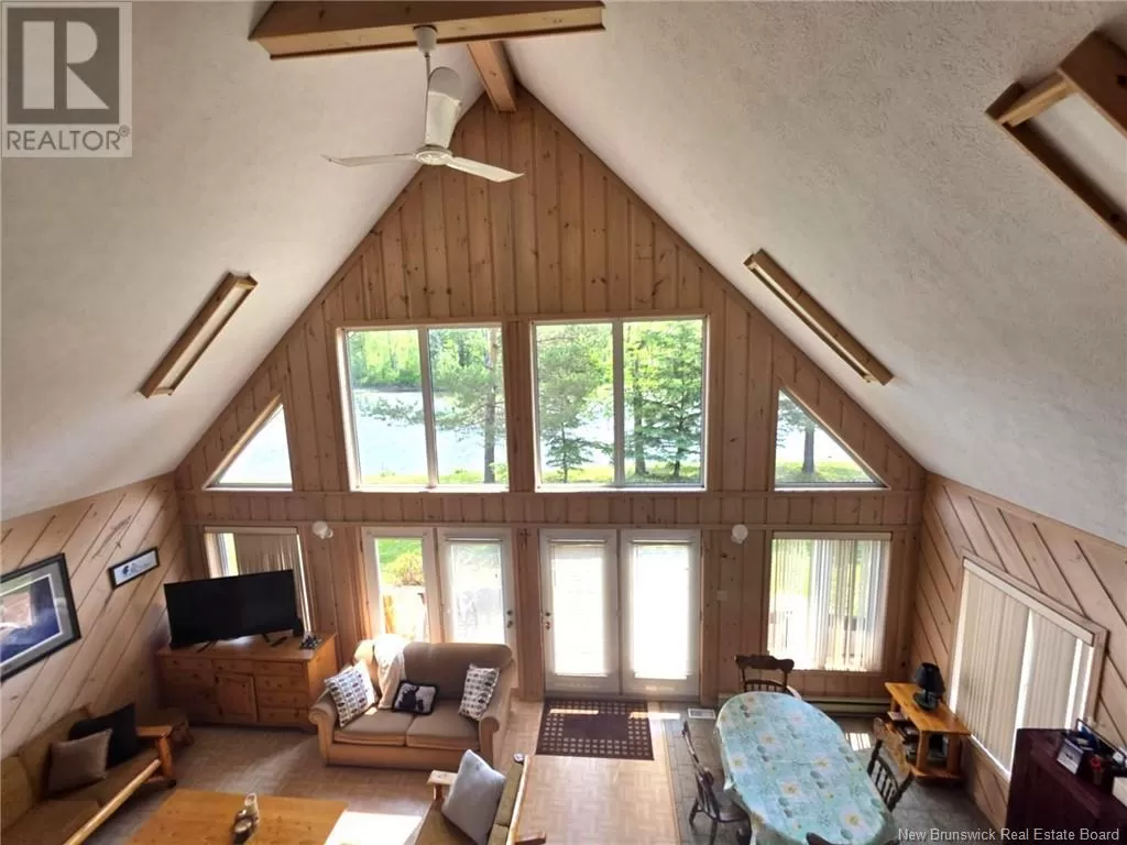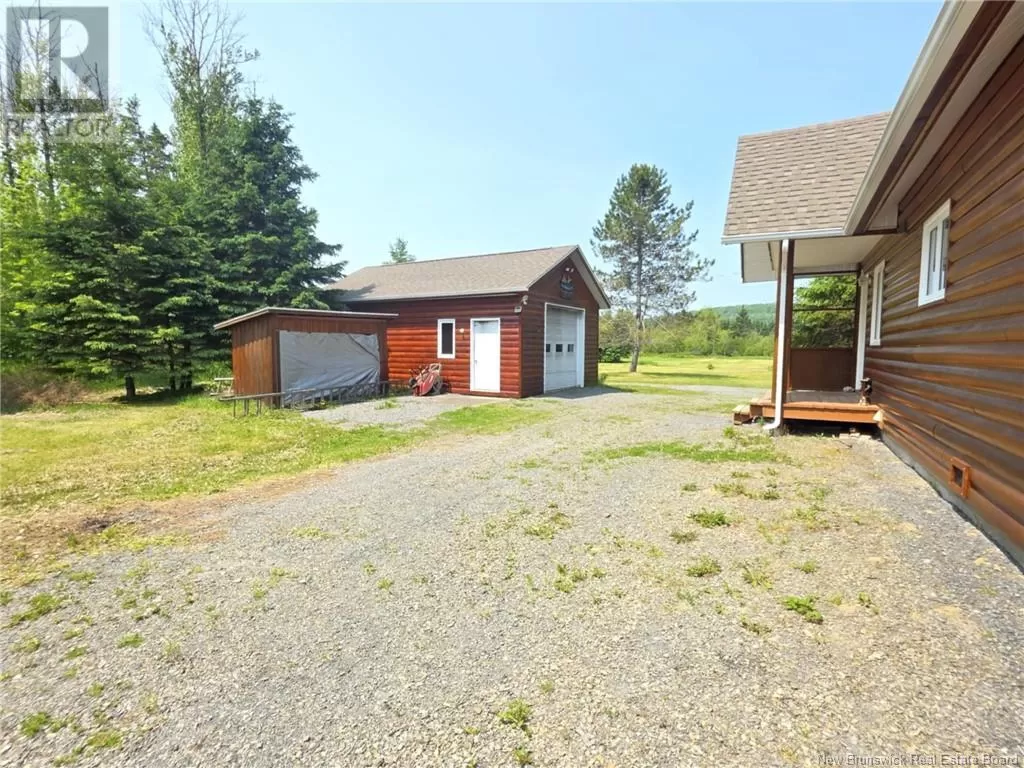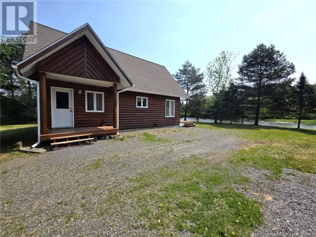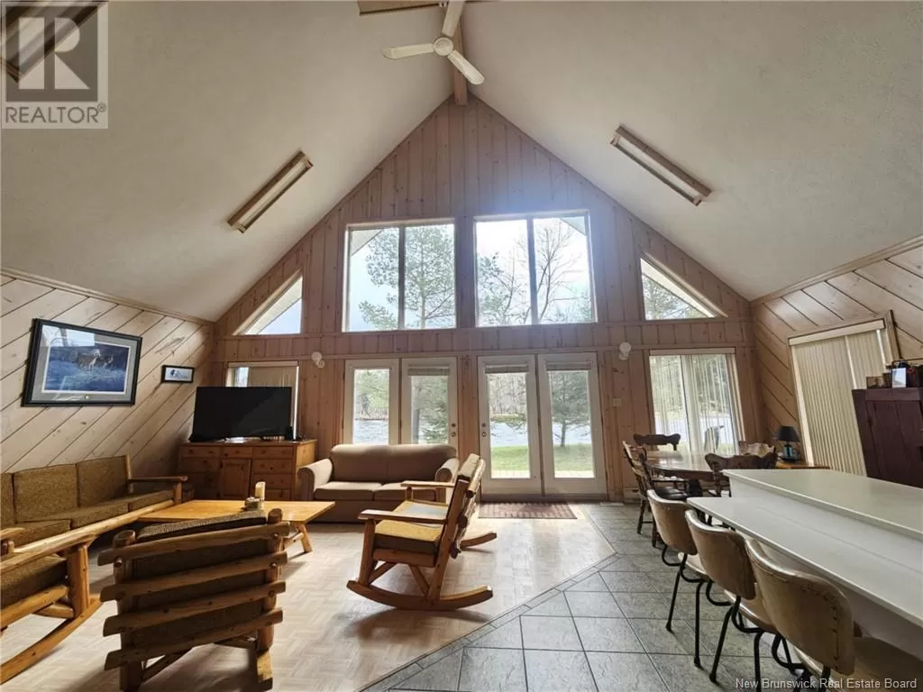 Breathtaking Waterfront Retreat on the Tobique River. Welcome to your dream escape! This gorgeous waterfront property offers cozy comfort, a peaceful woodsy feel, and picture-perfect views of the stunning Tobique River. Sitting on 2.6 acres , youll love the sense of space, privacy, and the abundance of wildlifekeep an eye out for friendly neighbouring deer! Relax on the front deck and enjoy the soothing sounds of the river flowing bynature is truly at your doorstep. Inside, you'll find a warm and inviting atmosphere featuring convenient main-level laundry and a full bathroom. The spacious primary bedroom on the main floor offers double closets and easy access to everything you need. The open-concept kitchen, dining, and living area is the heart of the home, with a full wall of windows that bathe the space in natural light and offer breathtaking river views. Upstairs, a charming loft-style layout provides two additional bedroomsperfect for family, guests, or flexible use. A detached single-car garage adds convenience and storage options. Whether you're searching for a peaceful year-round residence, a weekend retreat, a second property, or even an Airbnb or rental unit, this home has endless potential. **There was a fire in the garage caused by fourwheeler. While the fire was contained there was damage to the garage ceiling and electrical and repairs will be required which presents the new owner a chance to personalize the space to their liking.** **shared well** (id:27476)