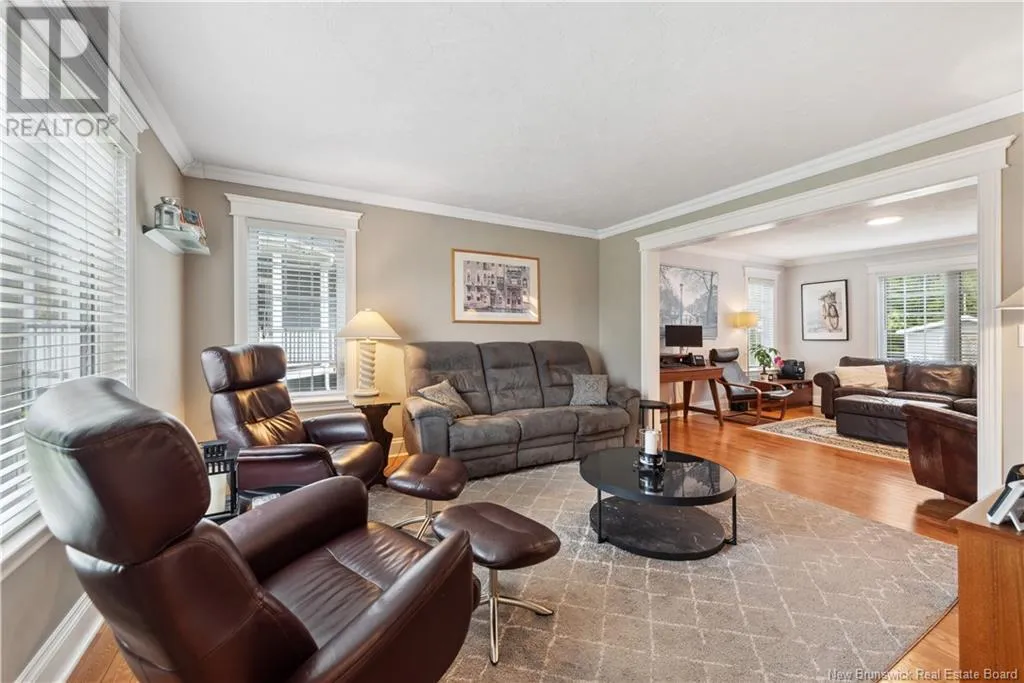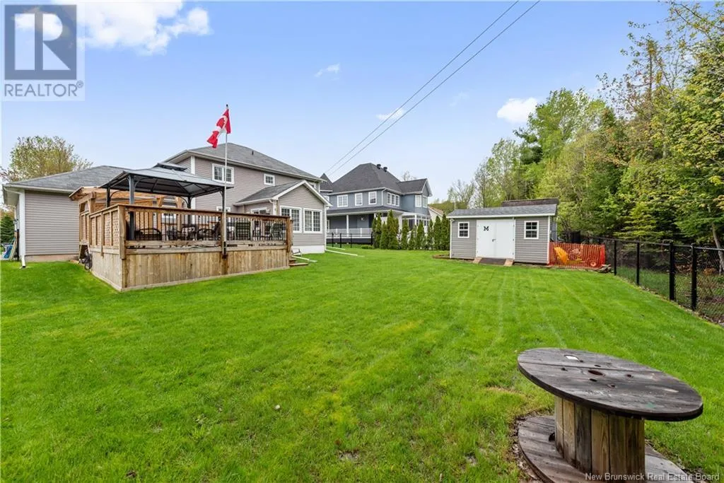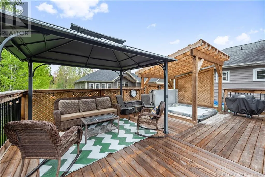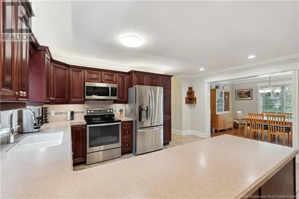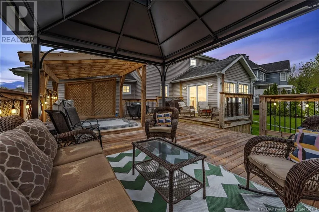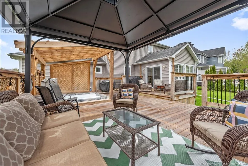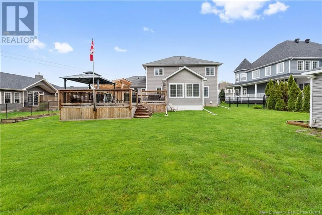 From Coverdale Rd turn onto Trites Rd, right onto Waterfall, turn left onto Canusa, right onto Glenforest, right onto Gray's Brooks and left on Highgate. Tucked away in the sought-after Grays Brook Estates, 7 Highgate offers refined living surrounded by natural beauty. This elegant two-story home combines space, comfort, and privacyperfect for families or those who love to entertain. The main level welcomes you with a grand staircase, formal dining and living rooms, a cozy family room, and a bright eat-in kitchen with refinished Corian countertops and under-cabinet lighting. The three-season sunroom, filled with natural light, opens onto a spacious new deck, hot tub, and a fully fenced backyard bordered by mature treesyour own private retreat. Gleaming oak hardwood and ceramic tile flow throughout the main levels. A convenient laundry area and half bath are located near the garage entrance. Upstairs, the primary suite features a walk-in closet and a luxurious 4-piece ensuite with a separate shower. Two additional bedrooms and a full bath complete the second floor. The finished lower level adds versatile space with a family room, office, playroom, reading nook, storage, and a 3-piece bath. Updates include: new baby barn, epoxy garage floor, microwave, dishwasher, heat pump, pot lights, carpet, hot tub (all 2023), and a new deck (2022). Steps from Claude D. Taylor (K-5) and Riverview High. A rare combination of classic design and modern upgradesthis home is a must-see! (id:27476)