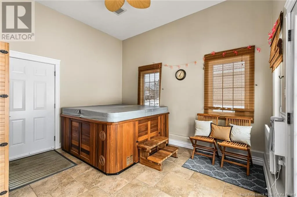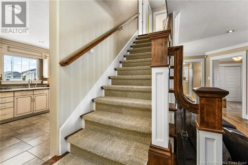 From Moncton, take the Gunningsville bridge to Riverview. Turn left on Hillsborough Rd., right on Red Leaf, left on Goldleaf. Welcome to 156 Goldleaf, a luxurious, climate-controlled home in a peaceful, family-friendly cul-de-sac. The well-maintained lot features stone walkways, a large patio, low-maintenance landscaping, a storage shed, and a covered veranda. Inside, the main floor offers a bright living room and a kitchen with custom cabinetry, a walk-in pantry, and appliances replaced in summer 2024 (fridge and dishwasher). The breakfast nook opens to the patio, and the adjacent dining room is perfect for entertaining. A half bath with laundry completes this level. An indoor SPA with JACUZZI and SAUNA also offers patio access. Upstairs, the primary bedroom features cathedral ceilings, a walk-in closet, and an ensuite with Jacuzzi tub. Two additional bedrooms and a full bathroom complete the upper level. The finished basement includes a family room with garage access, a (non-conforming) bedroom, a full bathroom, and another room that can serve as an office or bedroom. With direct access from the garage or spa area, the basement offers potential for an in-law suite or rental income if finished accordingly. The home also includes a fully automated 24kW Generac generator, two rental propane tanks, a Tesla charger (installed 2024), a central vacuum, and wiring for Rogers and Bell internet. This move-in ready property offers comfort, space, and quality in one of Riverviews most desirable neighborhoods. Click the 'Virtual Tour' tab for an online viewing, or contact us to book your visit today! (id:27476)