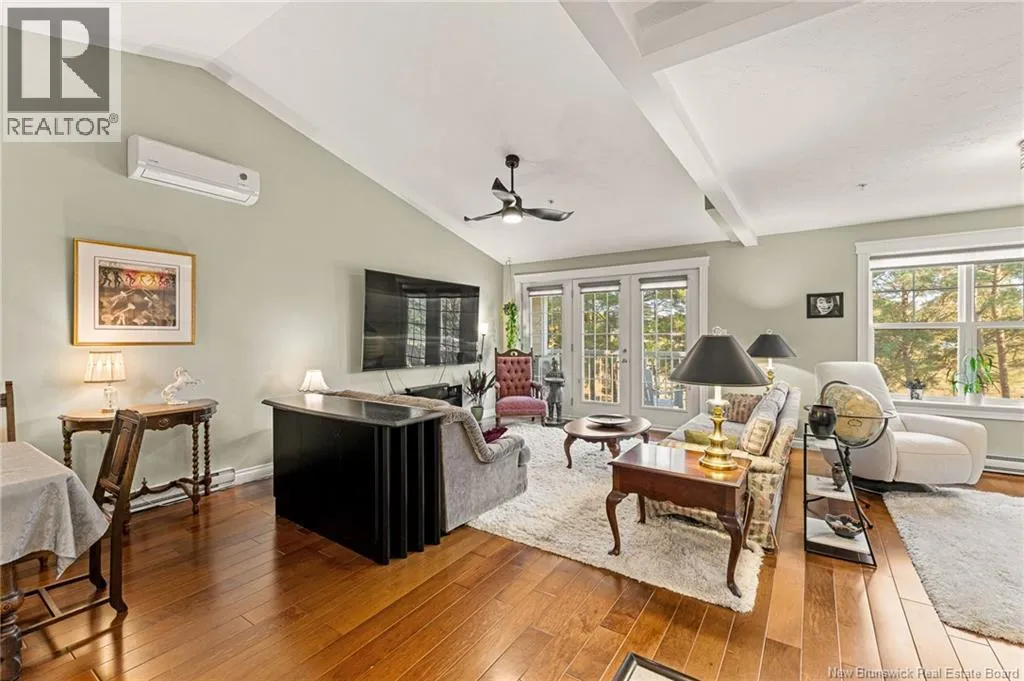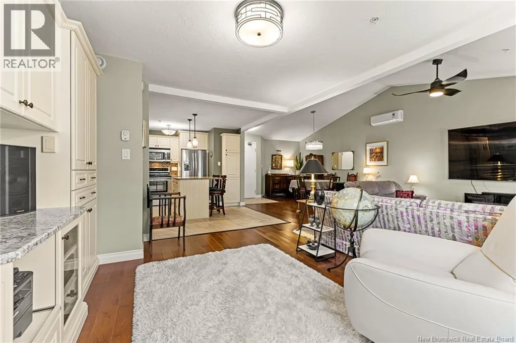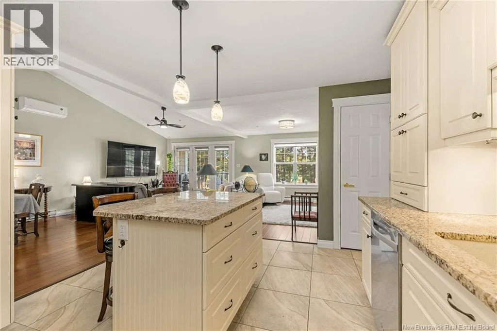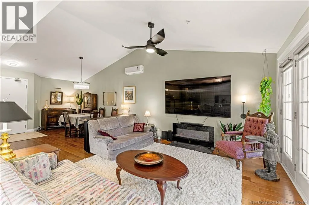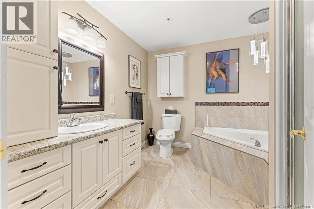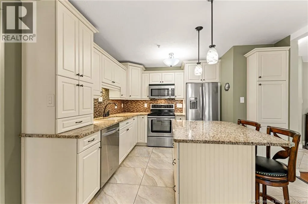 Entrance is located directly on Coverdale Rd, next to Moncton Golf Club entrance. EXECUTIVE CONDO at Bella Casa in Riverview! Boasting 1,500 sq. ft, 2 Beds, 2 Baths and UNDERGROUND PARKING. A stunning and immaculate condo offering luxury living! As you enter, a bright and spacious open floor plan features a 16 ft. vaulted ceiling, gorgeous daylight and high-end finishes. The beautiful creamy white kitchen is equipped with granite countertops and island, under-and-over cabinet lighting and backsplash, a pantry, and Whirlpool appliances. Opposite the dining room is a spacious Great Room/living room that includes a flex space with custom built-in cabinets. The oversized master bedroom features wall-to-wall windows, a deep walk-in closet and an ensuite with a whirlpool tub and step-in shower. The second bedroom is also spacious and is also located near the second bathroom. The condo is located on the top floor facing the Moncton Golf Course with trees and nature that create a quiet, peaceful setting you can enjoy from your private balcony. Condo fees include: water & sewage, garbage pick-up, snow removal & landscaping, fitness and social rooms and exterior maintenance. Bonus features include: a vaulted ceiling, custom granite kitchen, Whirlpool appliances, laundry room, underground parking & storage, elevator, mini-split heat pump, in-sink waste disposal (garburator), central vacuum and more. Located in the heart of Riverview with a short commute to downtown Moncton, overlooking greenery, with nearby trails, shopping & restaurants. Truly a must see! (id:27476)