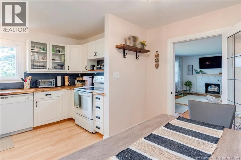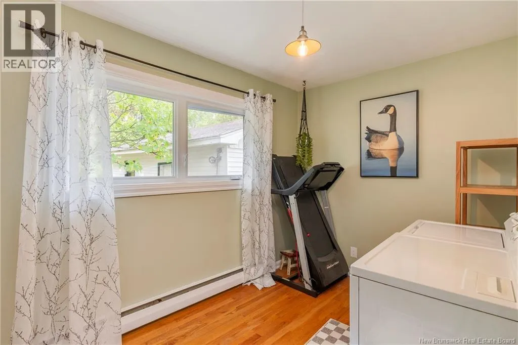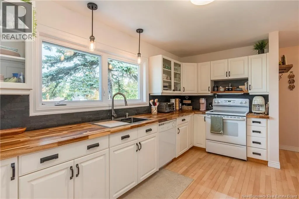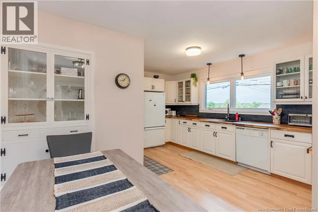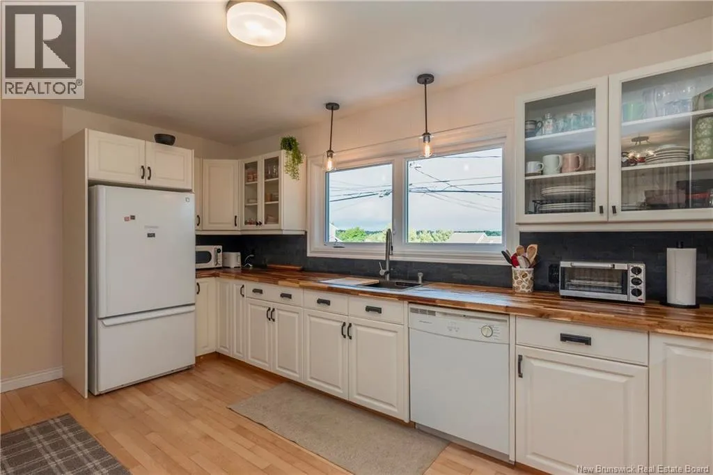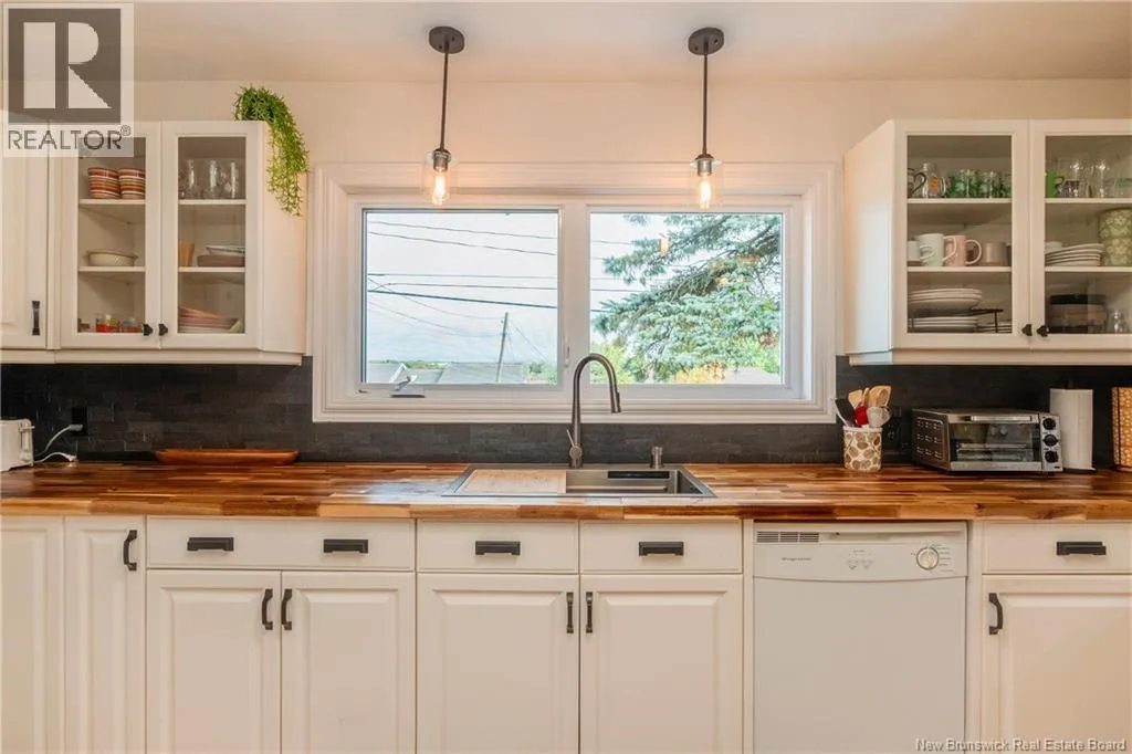 Coverdale Road to Biggs Drive, then turn left onto Lakeside Drive. Discover this bungalow nestled on a quiet street in Riverview's west end, offering a peaceful atmosphere and a view of the Petitcodiac River. The main floor features a comfortable living space with a nice size living room and kitchen, three bedrooms (one currently a laundry room, easily converted back), and a four-piece bathroom. Outside, enjoy the yard with mature trees, shrubs, flowers, and a charming gazebo, all backing onto a treed lot for privacy. The property also boasts a double garage and great neighbours! The lower level includes a one-bedroom in-law suite with a sound barrier for added privacy. It's a fantastic mortgage helper, currently rented for $\$950$ (increasing to $\$975$ in late fall, everything included). Some recent major updates provide peace of mind: * New roof, all new windows and exterior doors (2023) * New oil tank and bedroom doors (2025) * Updated plumbing and electrical in the lower level (2017) A complete list of renovations is available in the provided supplements. This home combines classic charm, modern updates, and a smart income opportunity. Don't miss out! (id:27476)