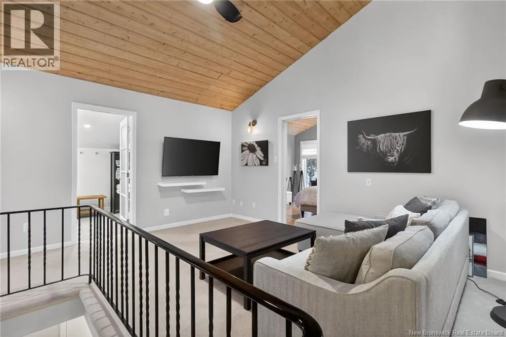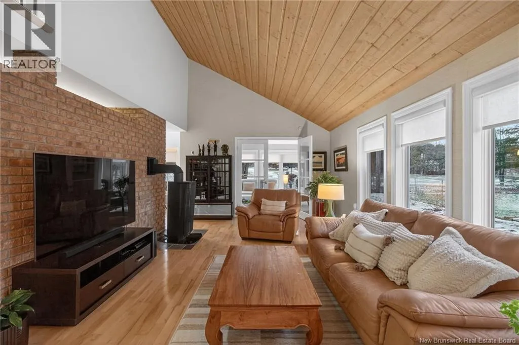 From Pine Glen, turn onto Harvey the take a right on Fairway Blvd. Home is on the left and backs onto the 4th hole of the Moncton Golf Club! Architecturally distinctive & beautifully positioned on the 4th hole of the Moncton Golf Club, this 1.5-storey home offers a rare lifestyle opportunity in Riverview! With a semi-private fenced backyard, this property delivers a setting that feels both serene and connected. The front entrance opens to a welcoming foyer & leads into a striking living room featuring soaring ceilings & a cozy Paloma natural gas fireplace. The kitchen is designed for everyday function, showcasing Glenwood cabinetry, quartz countertops, two large pantries, & new appliances. The home offers 2 bedrooms & three bathrooms, including a spacious primary suite with soaker tub, walk-in shower, & walk-in closet. A large loft overlooking the living room creates flexible space ideal for a home office, reading area or studio. The partially finished basement adds a large rec room, gym space, & ample storage, with recent updates including new flooring, lighting and baseboard heaters. Comfort is ensured with a central heat pump and natural gas heating, plus an on-demand natural gas water heater (rented) & in-floor heating in the main & 2nd-level bathrooms. The garage features an epoxy floor & doors at both ends to easy access to the backyard, & a baby barn adds extra storage. Walking distance to all Riverview amenities, this home offers a lifestyle that is truly one of a kind! Live where every day feels like a golf getaway! (id:27476)
