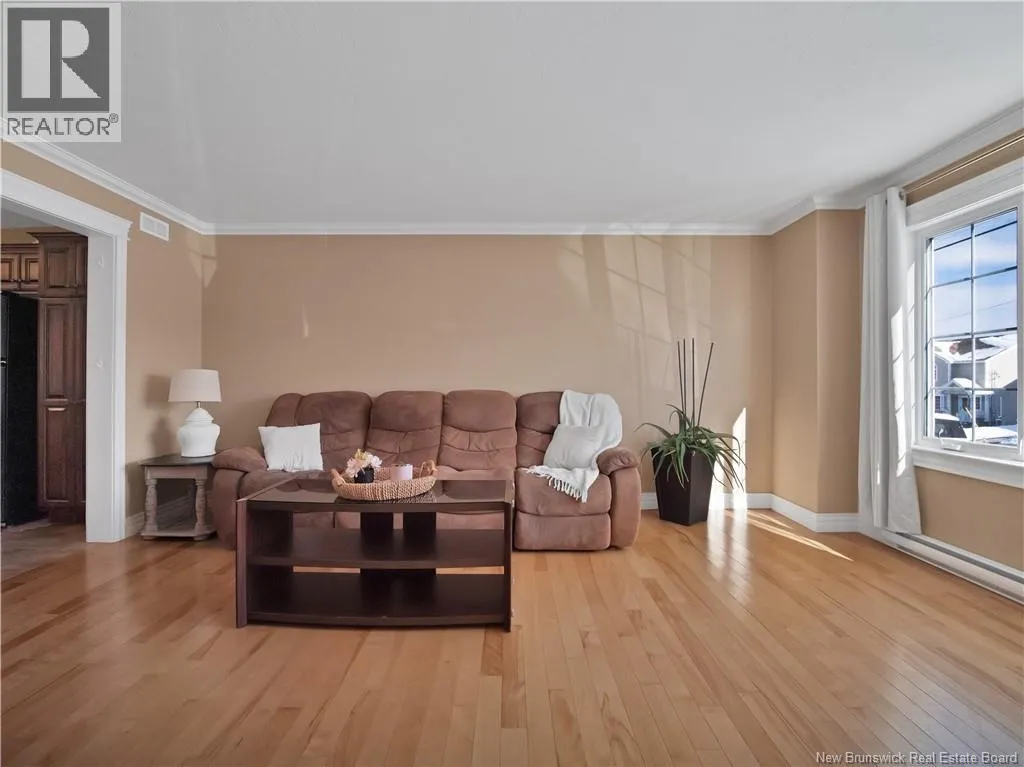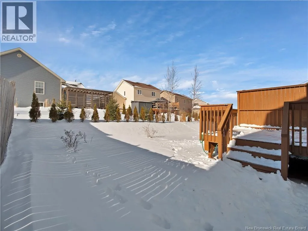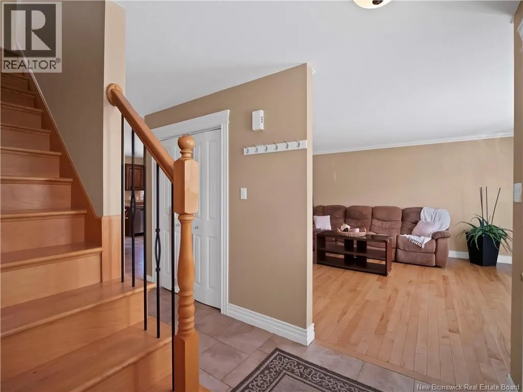 Cross the Gunningsville Bridge and turn left onto Hillsborough Rd (NB-114 S). Drive approximately 2 km, then turn right onto Harmony Drive. The property is located on the left side. Welcome to this two storey semi detached home located in a great family neighbourhood in Riverview. The main level offers a spacious living area leading into the eat-in kitchen with plenty of cabinetry, counter space, and a centre island, along with a dining area featuring patio doors to the back deck, plus a convenient half bath with laundry completing this level. The hardwood staircase leads upstairs to a large full bathroom and three bedrooms, including a generous primary bedroom with a walk in closet. The lower level features a family room, a non conforming bedroom awaiting flooring, a rough in for a three piece bathroom, and a large storage/utility room. Recent improvements include a new roof in 2024 and two ductless mini split heat pumps for year round comfort. Ideally located close to schools, Dobson Park, the Riverview Waterfront Trail, and many nearby amenities, this home offers great value in a welcoming community. (id:27476)