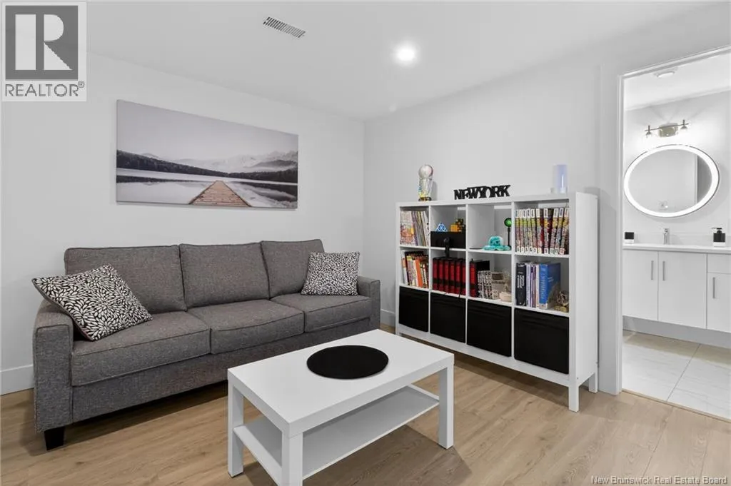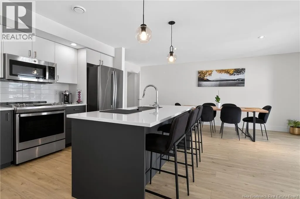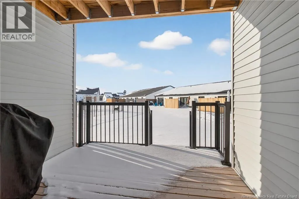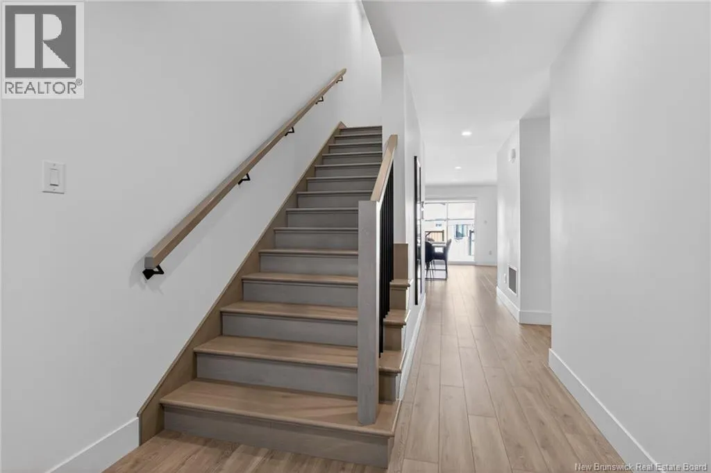 Minutes from Moncton. After the Gunningsville Bridge, head toward Dickey Blvd the townhomes are along the right. Stunning energy-efficient END UNIT, MOVE-IN READY, offering 4 bedrooms, 3.5 bathrooms and a FULLY FINISHED BASEMENT. Designed for comfort and savings with a GEOTHERMAL heat pump, R60 attic insulation and LOW ENERGY COSTS year-round. A bright, modern home built for everyday living. From the moment you step inside, a spacious hallway leads you into a sun-filled open-concept living area where the living room, dining space and kitchen flow beautifully together perfect for entertaining or family time. The stylish kitchen features quartz countertops, stainless steel appliances and direct access to the patio and LARGE BACKYARD, ideal for BBQs, kids or relaxing outdoors. Upstairs, the primary suite feels like a private retreat with its ensuite bathroom, HUGE walk-in closet and private balcony the perfect spot to enjoy your morning coffee in peace. Two additional bedrooms, including one with its own balcony, plus a full bathroom complete this level. The FULLY FINISHED BASEMENT offers a large versatile family room, an extra bedroom and a full bathroom ideal for guests, a home office or teen space. Attached garage for added convenience. A bright, modern and low-maintenance home where all you have to do is move in and enjoy. (id:27476)