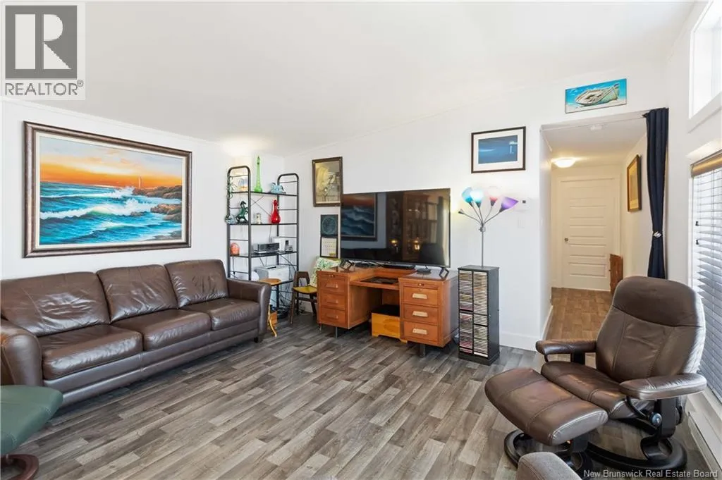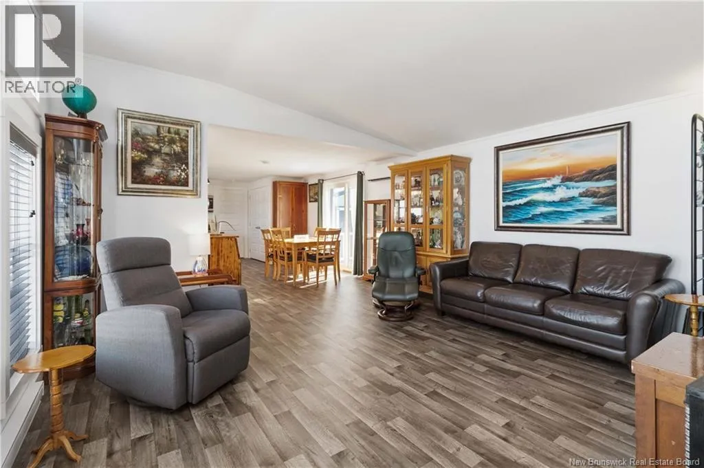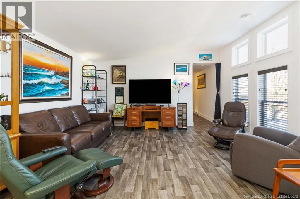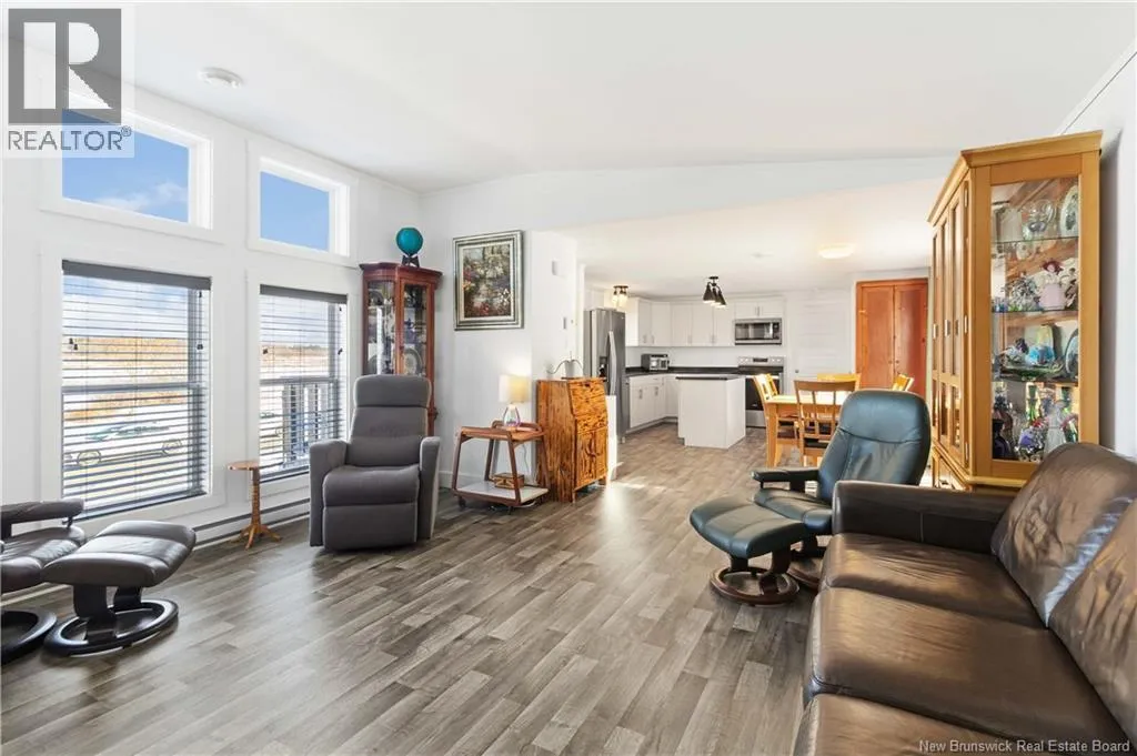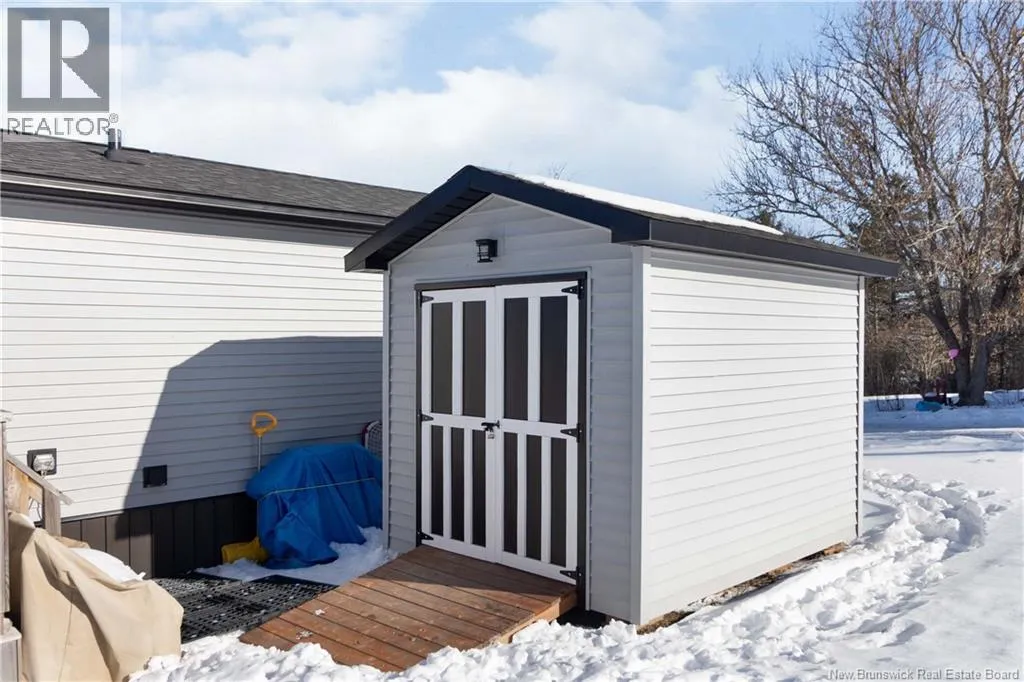 From Coverdale road, turn right onto Lupin Avenue, Lupin becomes Blossom and then turn right onto Tulip Drive. Tulip Drive turns slightly right and becomes Moss Lane. Wake up to unobstructed views of the Petitcodiac River. Built in 2020, this modern Maple Leaf home offers style, comfort, and energy-smart living in a quiet cul-de-sac with a dedicated green space. Step inside and youre greeted by abundant natural light pouring through oversized windows that frame the water. The kitchen features crisp white soft-close cabinetry, a central island, and stainless Whirlpool appliances, all included. A patio door off the dining area leads to the rear deckperfect for relaxing or entertaining. The living room impresses with its custom atrium ceiling and panoramic river views where eagles and wildlife are part of daily life. The primary bedroom continues the experience with large windows, another atrium ceiling, a walk-in closet, and a spa-inspired bath. Two additional well-proportioned bedrooms and a second full bathroom with deep soaker tub sit at the opposite end for privacy. Enjoy year-round comfort with a mini-split heat pump and equalized power costs of just $176/month. An 8' x 10' matching shed provides excellent exterior storage. Transferable LUX warranty to 2030. Flexible closing available. Contact your favourite REALTOR® to schedule your private viewing. (id:27476)