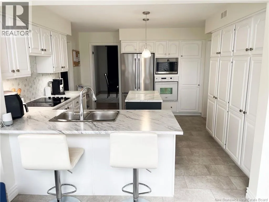 Pine Glen to Pinewood Dr to Country Club turn left and 5th house on right. Discover unparalleled pride of ownership in this sprawling, immaculately maintained residence, nestled on a professionally landscaped lot in Riverviews premier area. Brick paving highlights the driveway and walkways, adding to the homes stunning curb appeal. The interior features a grand entrance and a thoughtfully designed floor plan centered around a shared, two-sided brick fireplace in the formal living and family rooms. The culinary-sized kitchen features ample cabinetry and a sun-drenched breakfast room with cathedral ceilings overlooking the private deck. The home offers a gracious primary suite with an over-sized ensuite, alongside two generous bedrooms. The massive, unspoiled basement provides the perfect canvas for future development. A defining feature is the impressive, oversized garage offering ample storage and hobby space, maybe even a third car. This property combines comfort with exceptional quality minutes from shopping, walking trails and downtown Moncton. (id:27476)