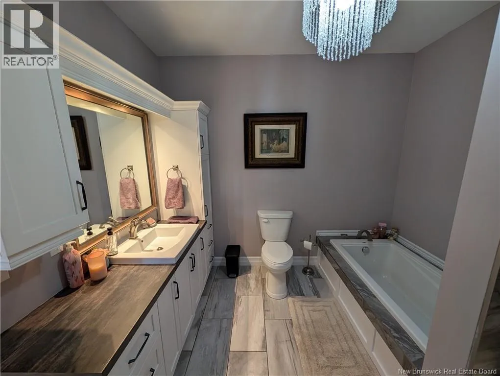 Heading north on HWY 11, take the Beresford exit. Take a left onto Rue Acadie. Head west towards Robertville. House will be on your right hand side. Welcome to 1124 Robertville Road, a spacious home located perfectly just minutes from all local amenities. This property blends comfort, functionality, and great entertaining space both inside and out. The main floor features two generous bedrooms and a bright open concept kitchen, dining, and living area ideal for everyday living. The stunning primary bedroom includes a walk in closet with laundry, and a large ensuite with custom walk-in shower and two vanities. The heated attached 20x24 garage is a true bonus with running hot and cold water plus a floor drain, making it perfect for washing your vehicle year round. There is also a convenient entrance from the garage directly into the basement. The finished basement offers excellent flexibility with an additional bedroom, a dedicated office, and space with potential for another bedroom. Plumbing is already in place for a future shower or bath, giving you endless possibilities to further develop the space. A large family room with built in bar and pool table makes entertaining easy, while the wood stove adds warmth and character. Outside, enjoy your private backyard oasis complete with a pool, patio, and hot tub. This property truly has something for everyone. If you're looking for a newer home with tons of features, give your REALTOR® a call today for your very own private visit. (id:27476)