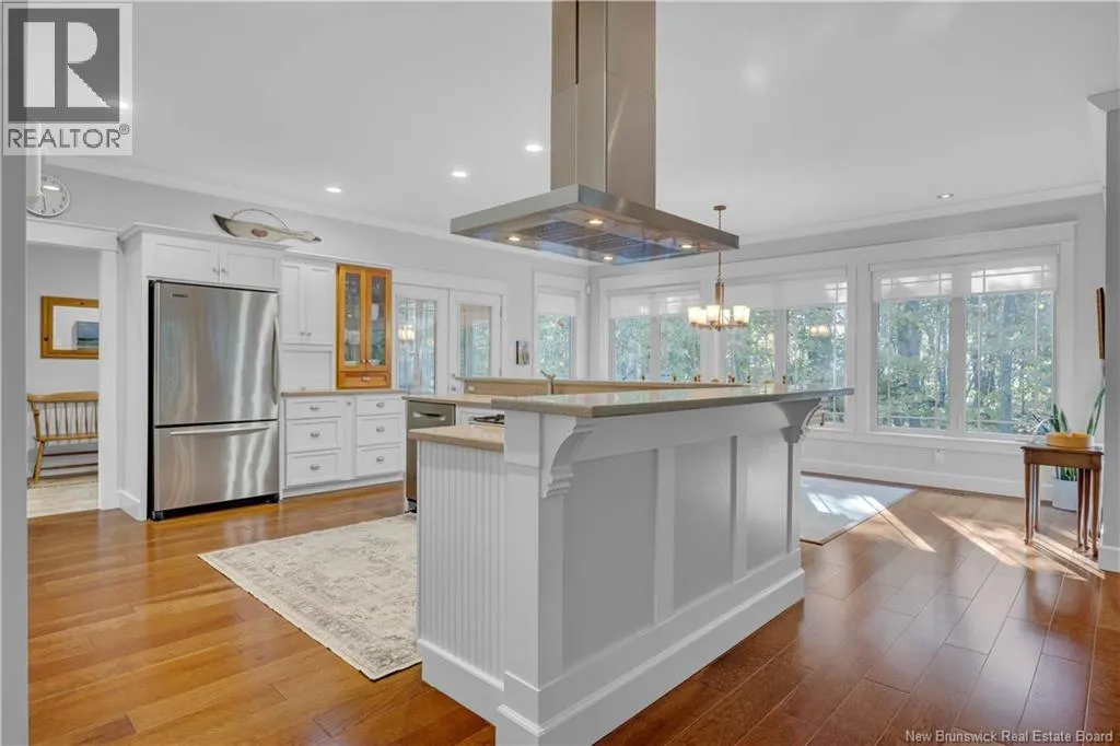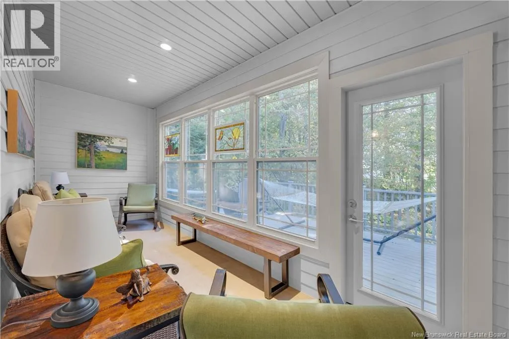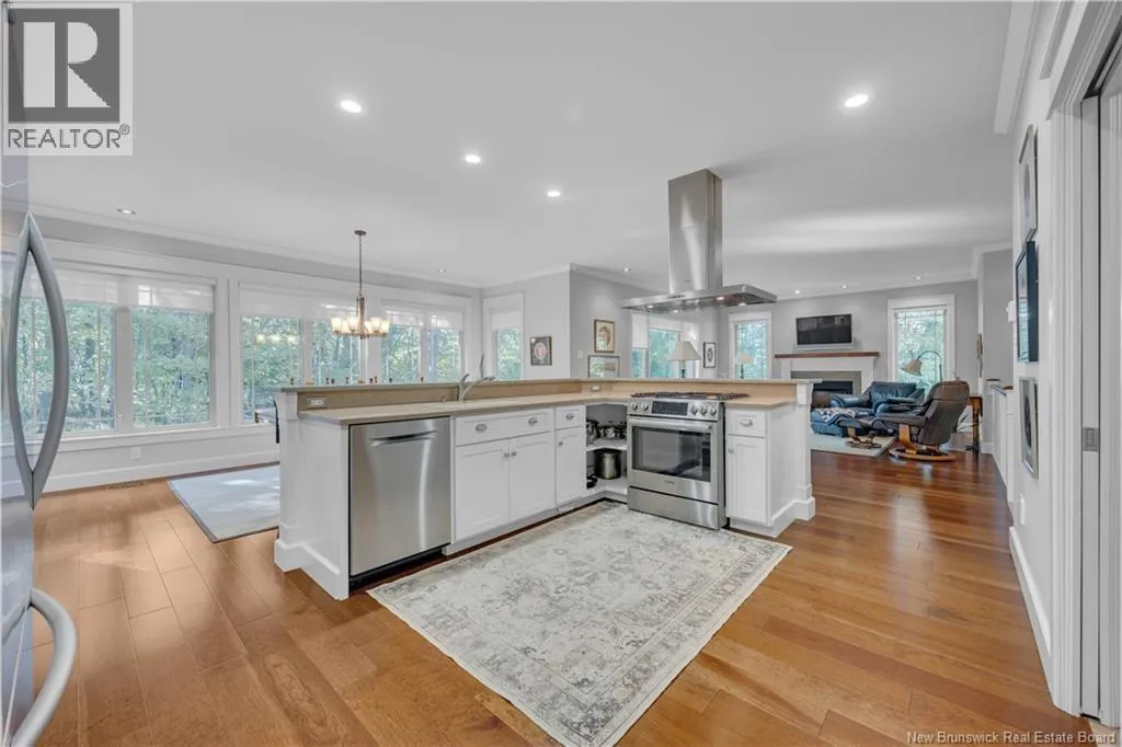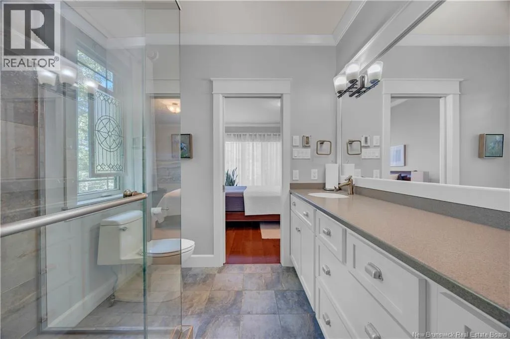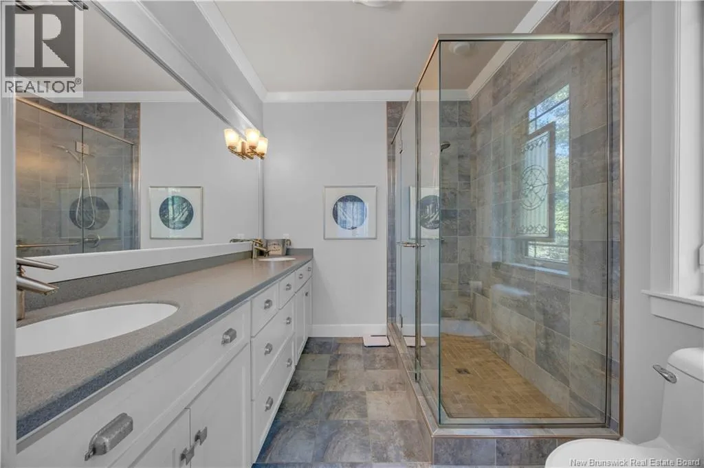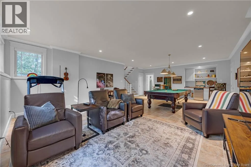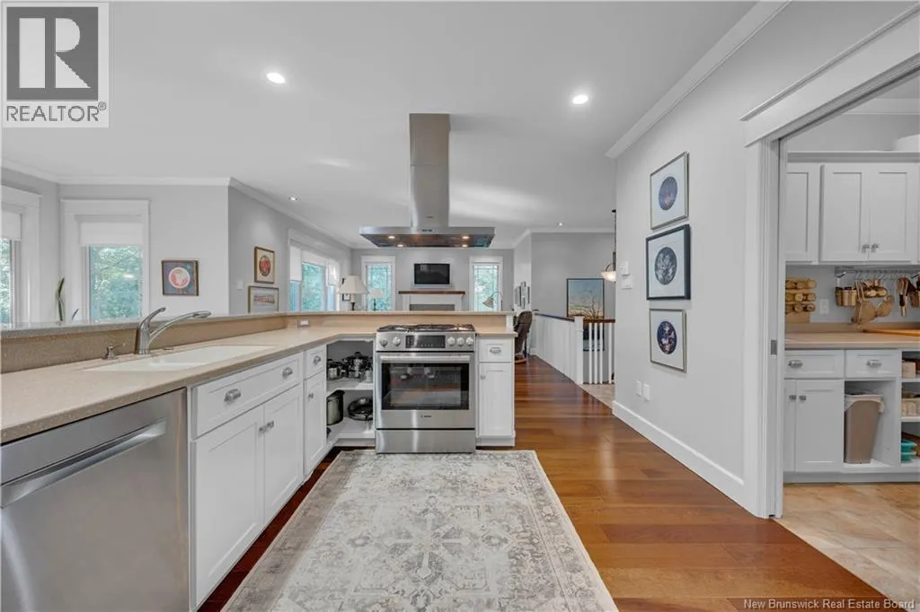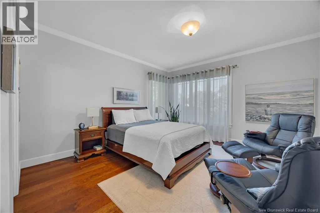 Rothesay Rd to Park Rd to Broadway then turn onto Bayley. Breathtakingly beautiful architect designed home in the heart of coveted K Park. Perfectly crafted by Glenhar Construction, premier high end builders with the best of building specifications & materials throughout. Lifestyle at its very finest in this amazing family oriented neighbourhood, so nicely located and surrounded by the Kennebecasis River with its own private beach, school, and a variety of community activities like no other. Main level boasts an impressive open concept plan, kitchen with generous pantry, large L shaped island, dining area with wall of windows overlooking an incredible backyard oasis. Large primary bedroom/ensuite and walk-in closet are luxuriously appointed, office with built ins is nicely designed amazing + delightful sunroom, and large mudroom with half bath complete the main level. Lower level is also fully finished with 2 generous bedrooms, large bath and expansive family room all boasting large bright windows along with a large laundry area also equipped with an amazing high end ceder sauna. Nothing spared in this home, from elegant crown moulding throughout, finest quality materials, 9-foot ceilings on both levels, hot water in floor heating on the lower level, fully ducted heat pump system throughout and ICF foundation, (laundry hookups in place on main level). Absolutely spectacular curb appeal as well with impressive front porch area + back deck surrounded by incredible landscaping. Rare opportunity to own this perfect home Is here. (id:27476)