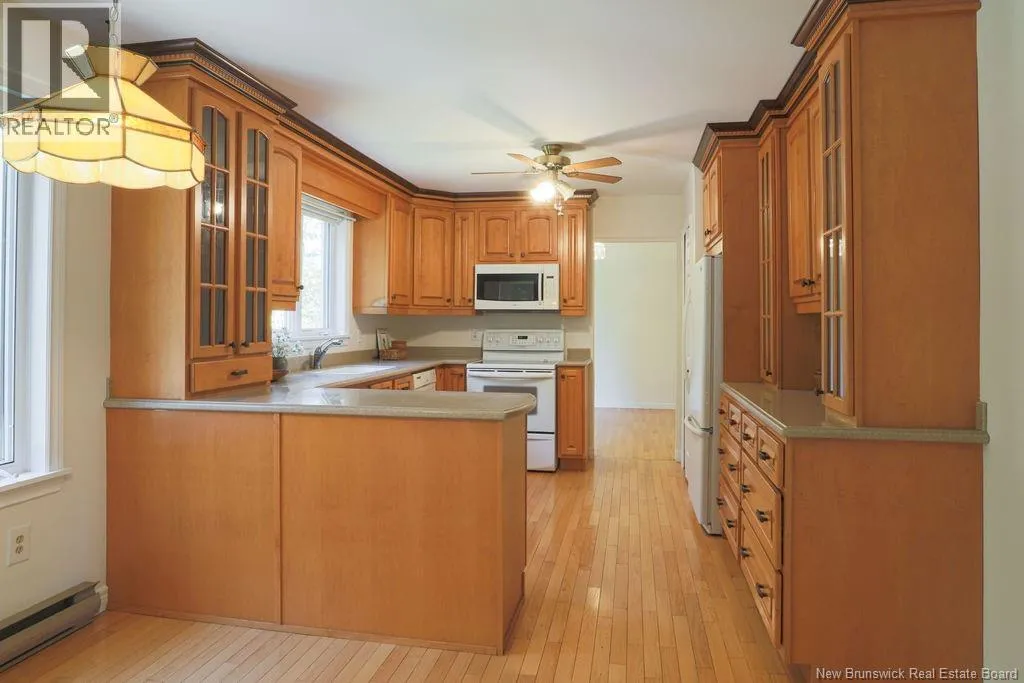Rothesay Road to Park Drive. The area of Kennebecasis Park is a commonly sought neighborhood for families of all ages, largely due to its pocket placement between Rothesay and Saint John, access to the river through a beach and a boat launch, top-rated elementary school and overall sense of community. Ideally located on Park Drive, this well-maintained 2-storey home for rent offers 4 bedrooms all on the second level, including a primary bedroom with a large closet and ensuite. The main floor flows from a bright front entry through the living room and formal dining area to an eat-in kitchen featuring Corian countertops, warm cabinetry, birch crown moldings and sliding doors to a sunny west-facing backyard, flat and green. There is a large deck area here and so much privacy you just catch a glimpse of neighbouring yards through the trees. Completing the loop from the kitchen is a well-sized den area with a wood burning fireplace and beautiful brick surround. A heat pump here keeps it cozy. There is a powder room off the main entry and a solid wood staircase taking you up to the bedroom level. Its a family-friendly layout that offers space for togetherness while still offering privacy where it counts. In this neighbourhood, lasting connections begin with a wave from the front porch and families build traditions on familiar streets. Its a thoughtfully designed community with access to the K-Park school zone and a closeness to amenities that makes everyday living both effortless and enjoyable. (id:27476)