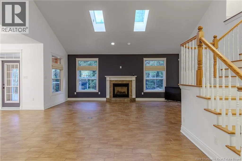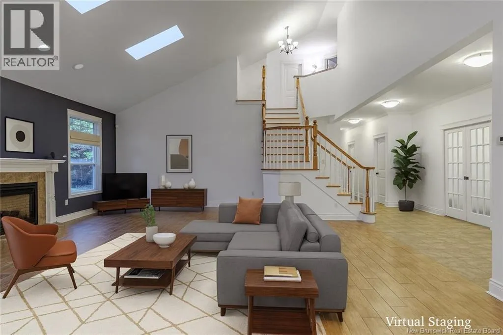 Rothesay Road, East Riverside - turn onto Appleby Drive up to Burnett Terrace to Riverside Drive to High Cliff Court East Riverside... one of Rothesays most desirable, established neighbourhoods where an active, easygoing lifestyle comes naturally. This custom designed well-maintained 1½ storey home offers the comfort of main floor living (approx 2300 sq ft) with an upper level designed for family, guests or hobbies (approx 1130 sq ft. An airy, open concept layout filled with natural light, tall ceilings & expansive walls for large artwork will welcome your contemporary or mid century style decor to surround a shared fireplace connecting the great room, kitchen & dining areas. The well-organized kitchen features a central island, full appliance package & riverviews, opening through enclosed porch to your coveted oversized deck. The main floor primary suite is a peaceful retreat with a spa-inspired ensuite, large walk-in closet & private deck for morning coffee. A bright den overlooks the river & a dedicated laundry room adds convenience. Upstairs, 2 additional bedrooms, a full bath & a large flex room (studio, gym, expansive home office, home theatre or playroom) with balcony capture beautiful sunsets & waterviews. Warm in-floor heating, an oversized garage & a generous paved driveway complete the package. Close to the Riverside Golf & Country Club, scenic walking trails & the Kennebecasis River park for kayaking, picnics or winter skating. This home blends lifestyle, comfort & low maintenance living perfectly where you can lock & leave while traveling with little worry. (id:27476)