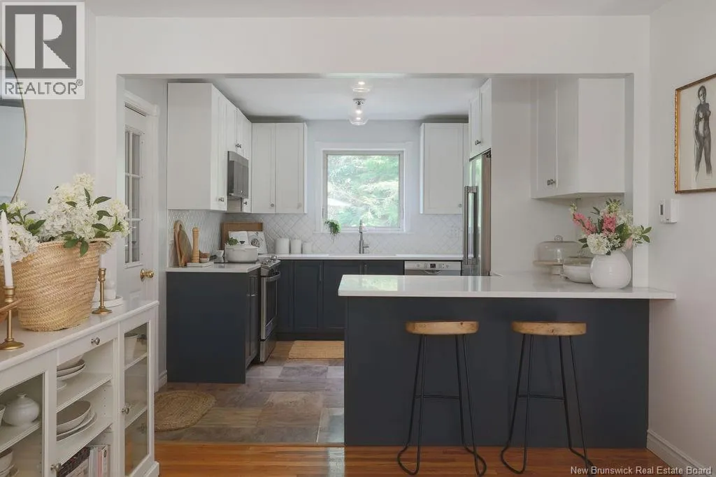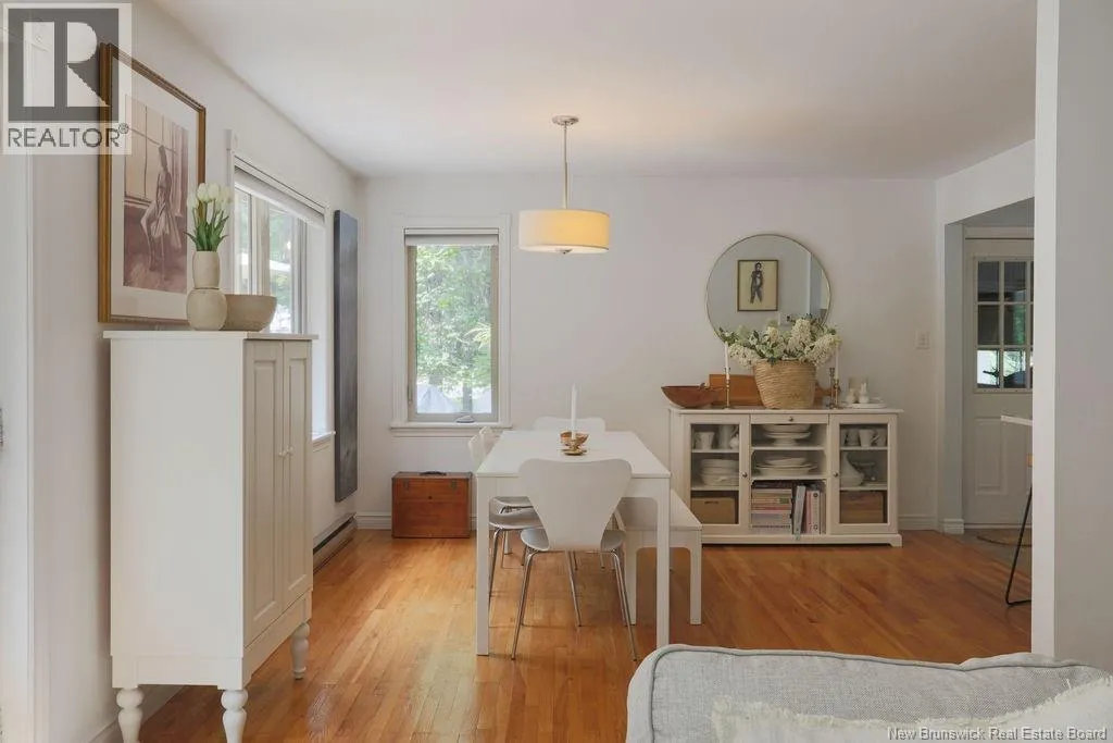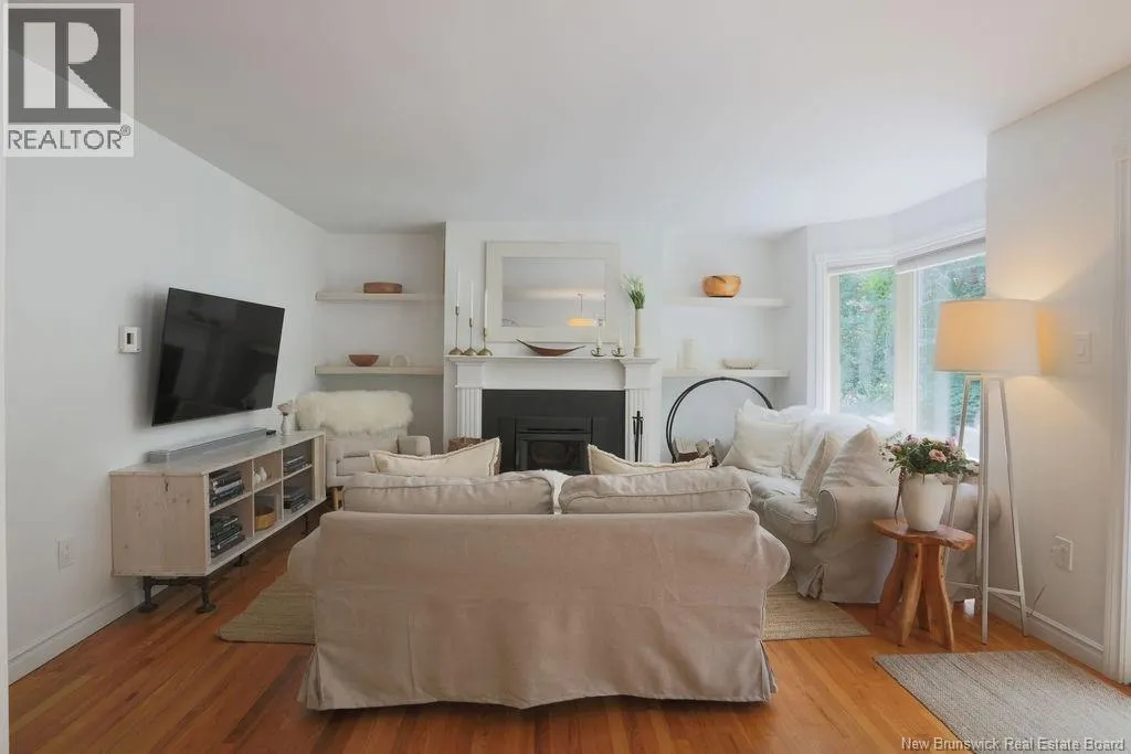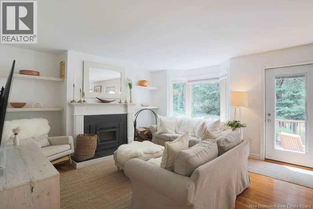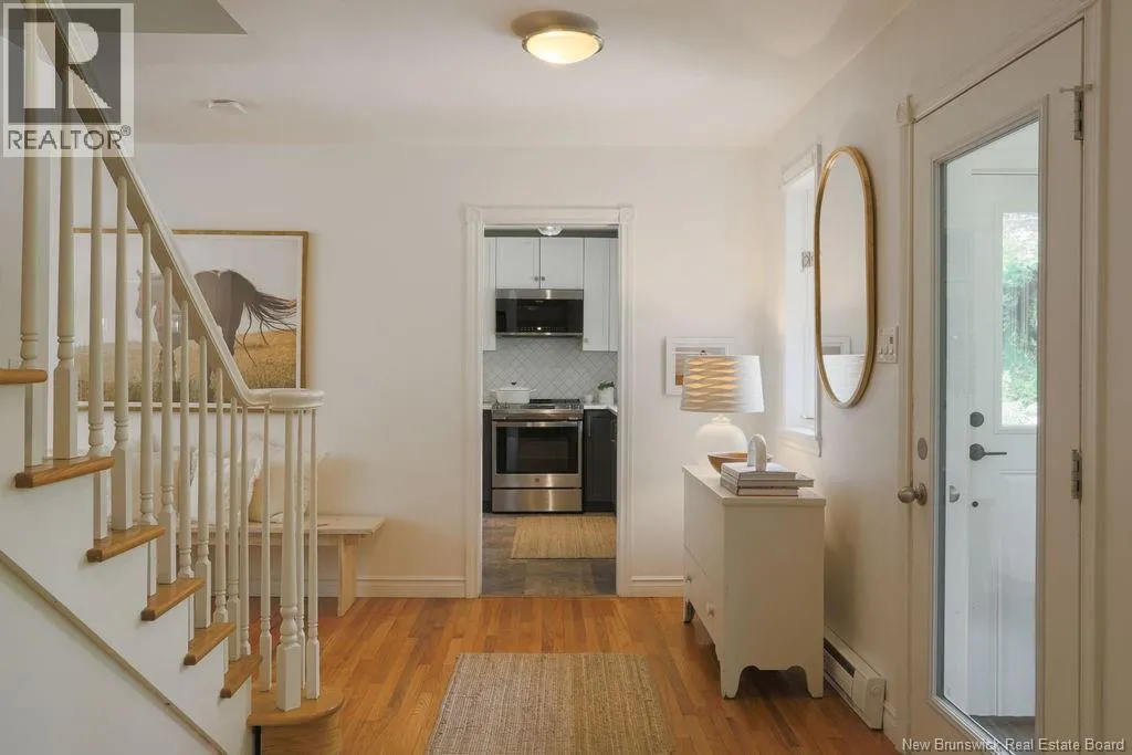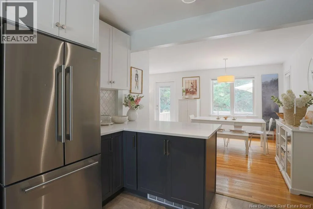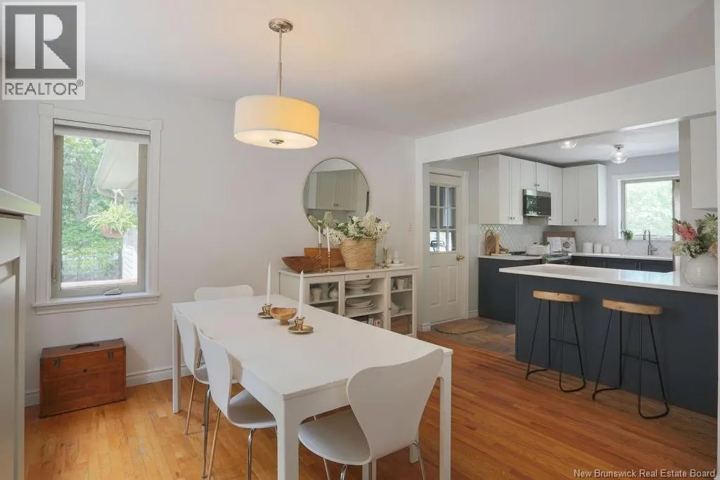 In the heart of Rothesay between Rothesay Common and Arthur Miller Fields. This thoughtfully updated home in central Rothesay feels made for family living, with its storybook gambrel roofline, century-old hardwoods lining the driveway, flowering shrubs framing the front entry, and gated green yards surrounding the property. Character wood details, warm hardwood flooring, and sunlit landings offer a charming first impression - and those touches of character continue throughout the home. The layout is both functional and inviting. The updated kitchen is tucked away from the open-concept dining and living room, which flows seamlessly to the back patio. This private and cozy outdoor space becomes an extension of your living area, ideal for family suppers, summer playtime, or quiet evenings around a fire table. A main-level bedroom and newly renovated bathroom offer flexibility - perfect for visiting grandparents, a peaceful playroom, or a quiet home office. Upstairs, three more bedrooms and a second bathroom provide comfortable living for the whole family. Every corner feels bright and welcoming, from the spacious landings perfect for curling up with a book to the fireplace built-ins bathed in afternoon light. The home also features an attached double car garage and a shaded, fully fenced backyard - ideal for kids and pets. Living here places you in a warm, connected community near top-rated schools, trusted daycares, hillside walking trails, and lush green parks. This is a turnkey home full of character, with a location made for family life. (id:27476)