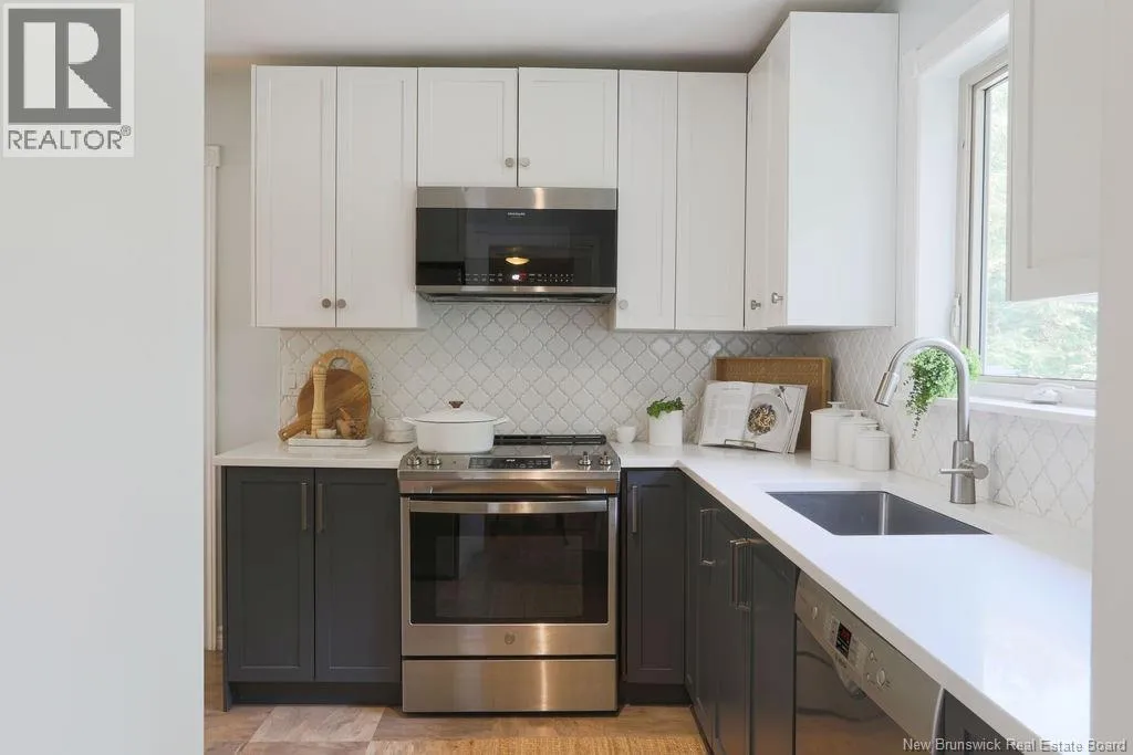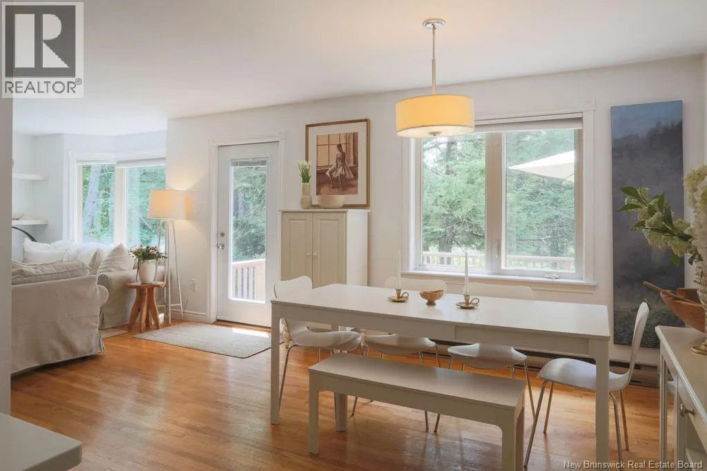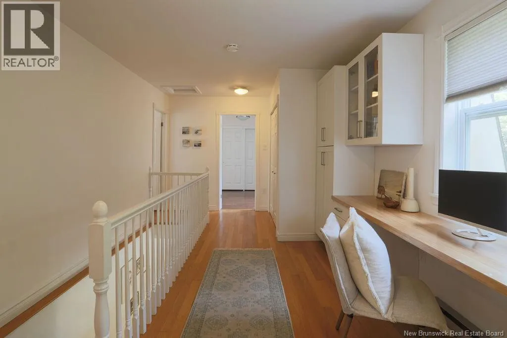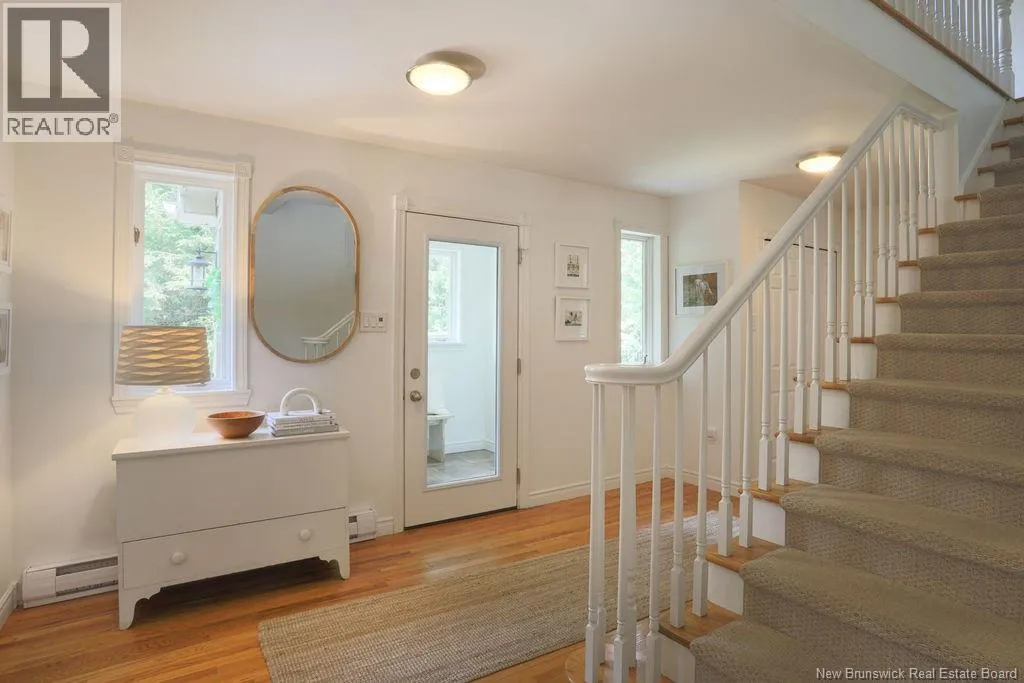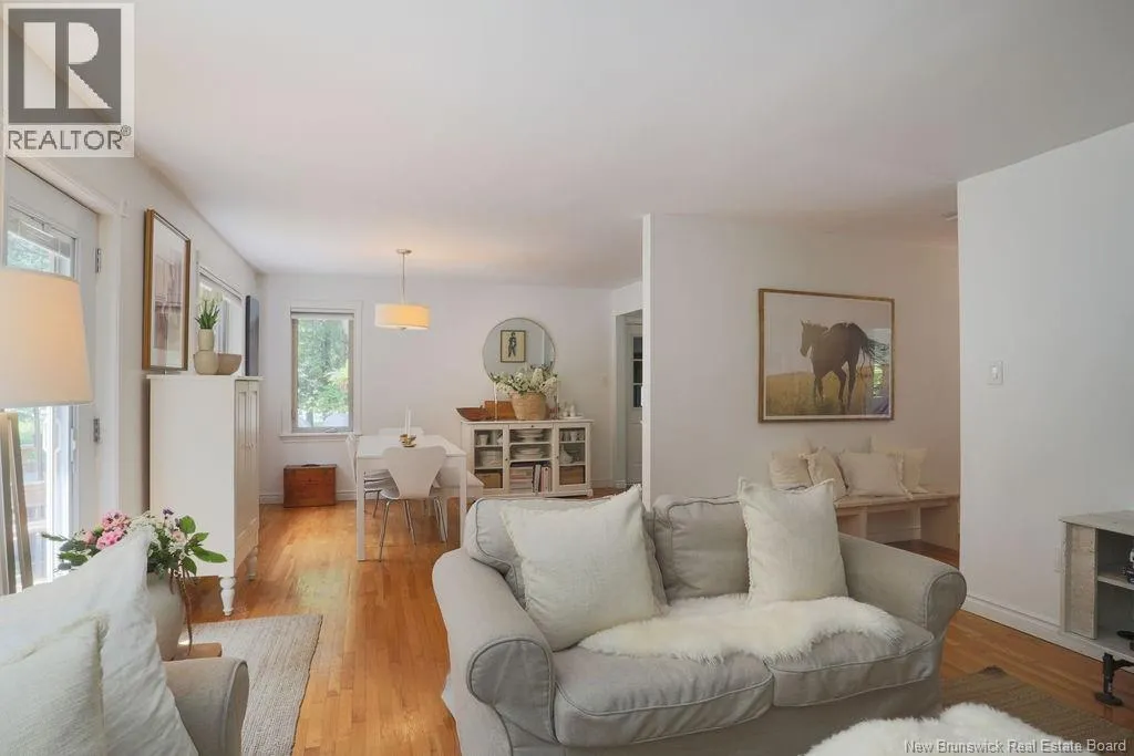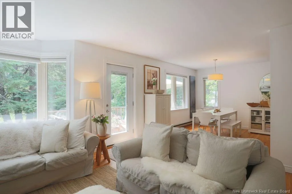 In the heart of Rothesay between Rothesay Common and Arthur Miller Fields. This thoughtfully updated home in central Rothesay feels made for family living, with its storybook gambrel roofline, century-old hardwoods lining the driveway, flowering shrubs framing the front entry, and gated green yards surrounding the property. Character wood details, warm hardwood flooring, and sunlit landings offer a charming first impression - and those touches of character continue throughout the home. The layout is both functional and inviting. The updated kitchen is tucked away from the open-concept dining and living room, which flows seamlessly to the back patio. This private and cozy outdoor space becomes an extension of your living area, ideal for family suppers, summer playtime, or quiet evenings around a fire table. A main-level bedroom and newly renovated bathroom offer flexibility - perfect for visiting grandparents, a peaceful playroom, or a quiet home office. Upstairs, three more bedrooms and a second bathroom provide comfortable living for the whole family. Every corner feels bright and welcoming, from the spacious landings perfect for curling up with a book to the fireplace built-ins bathed in afternoon light. The home also features an attached double car garage and a shaded, fully fenced backyard - ideal for kids and pets. Living here places you in a warm, connected community near top-rated schools, trusted daycares, hillside walking trails, and lush green parks. This is a turnkey home full of character, with a location made for family life. (id:27476)