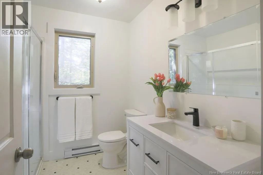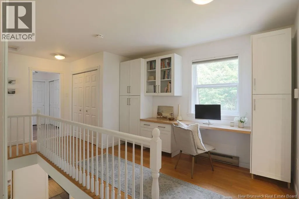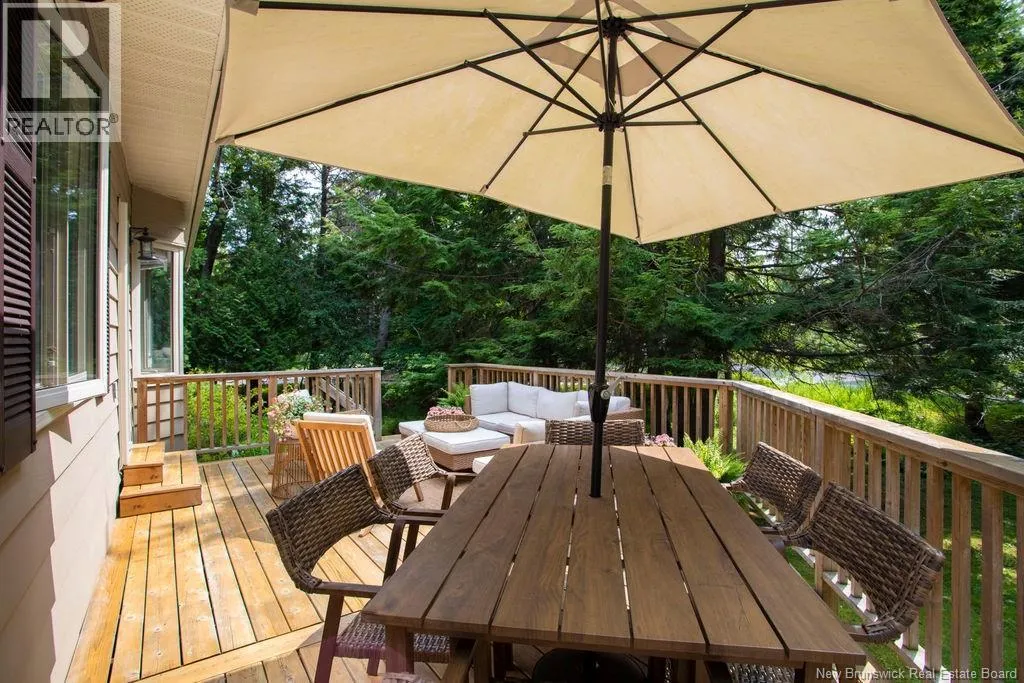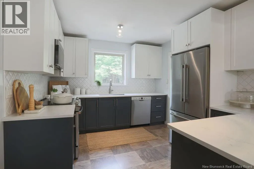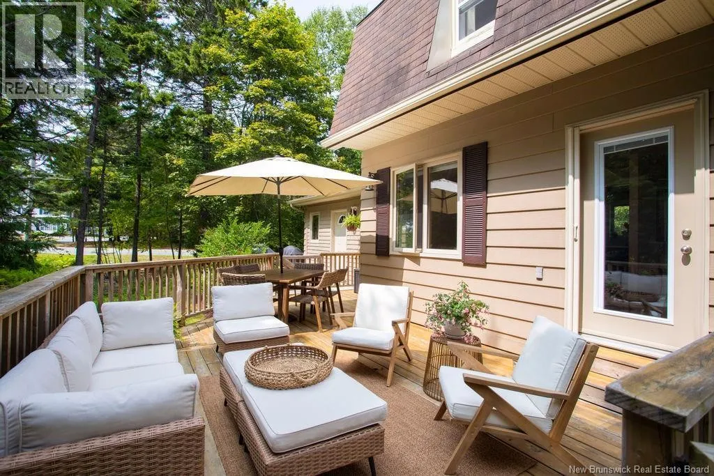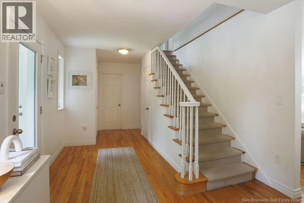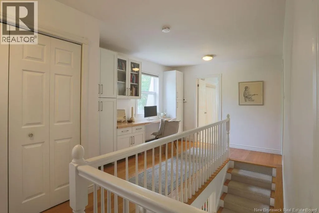 In the heart of Rothesay between Rothesay Common and Arthur Miller Fields. This thoughtfully updated home in central Rothesay feels made for family living, with its storybook gambrel roofline, century-old hardwoods lining the driveway, flowering shrubs framing the front entry, and gated green yards surrounding the property. Character wood details, warm hardwood flooring, and sunlit landings offer a charming first impression - and those touches of character continue throughout the home. The layout is both functional and inviting. The updated kitchen is tucked away from the open-concept dining and living room, which flows seamlessly to the back patio. This private and cozy outdoor space becomes an extension of your living area, ideal for family suppers, summer playtime, or quiet evenings around a fire table. A main-level bedroom and newly renovated bathroom offer flexibility - perfect for visiting grandparents, a peaceful playroom, or a quiet home office. Upstairs, three more bedrooms and a second bathroom provide comfortable living for the whole family. Every corner feels bright and welcoming, from the spacious landings perfect for curling up with a book to the fireplace built-ins bathed in afternoon light. The home also features an attached double car garage and a shaded, fully fenced backyard - ideal for kids and pets. Living here places you in a warm, connected community near top-rated schools, trusted daycares, hillside walking trails, and lush green parks. This is a turnkey home full of character, with a location made for family life. (id:27476)