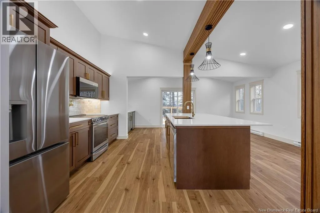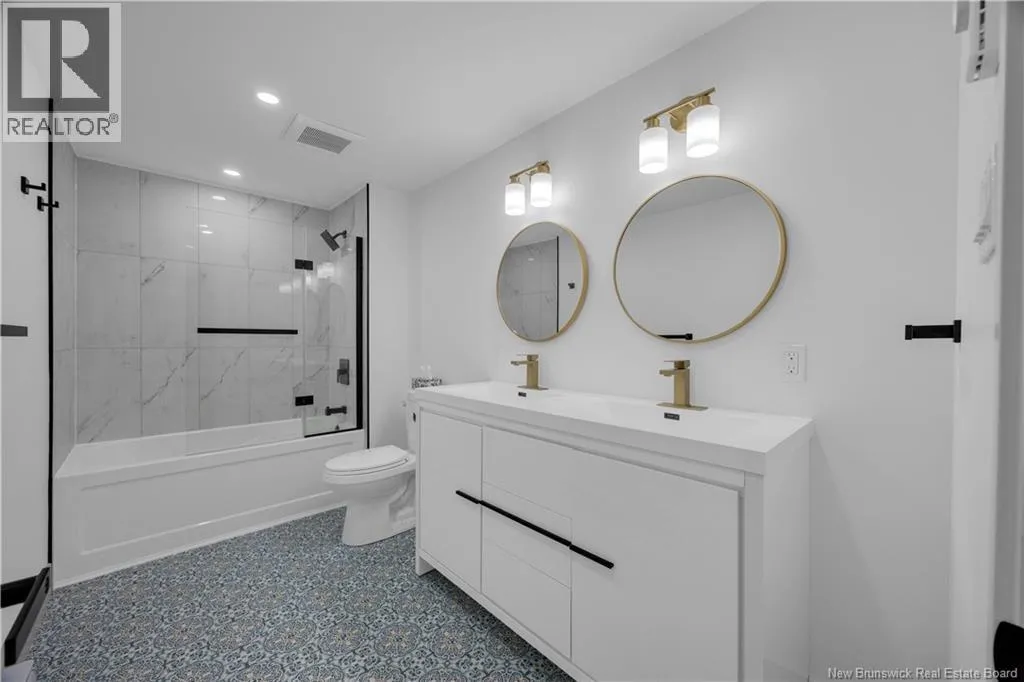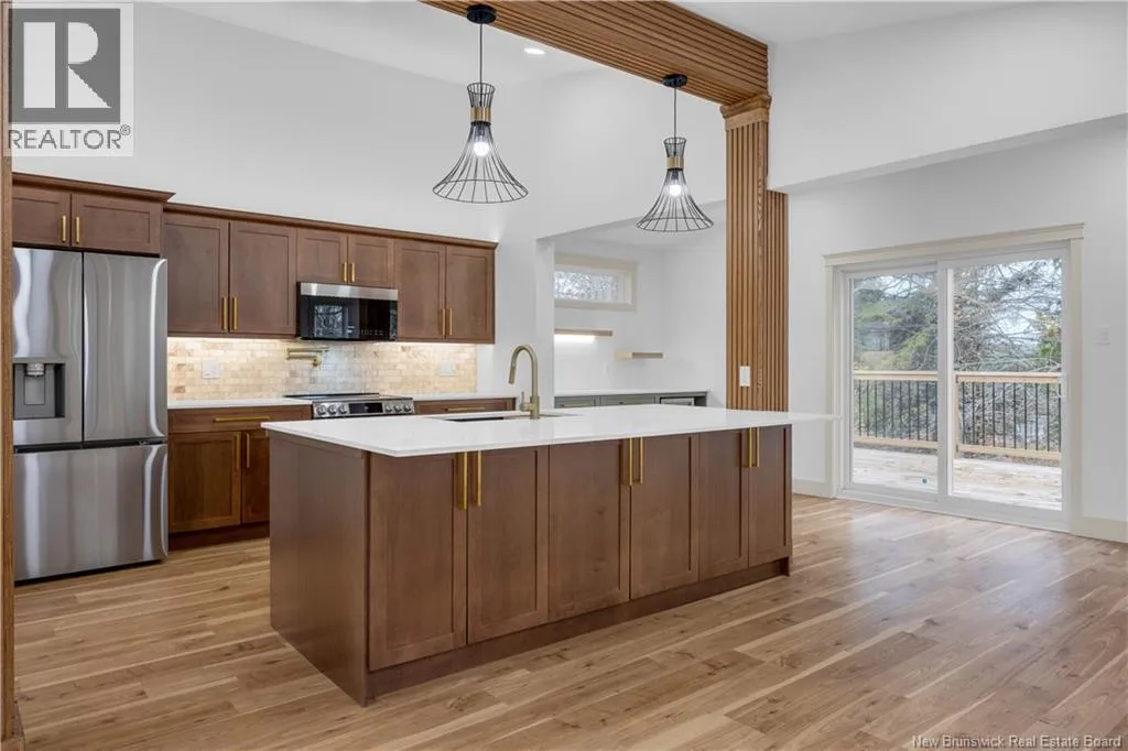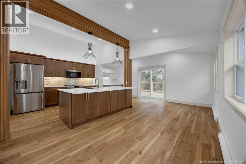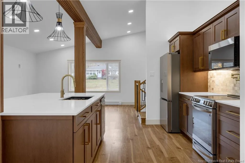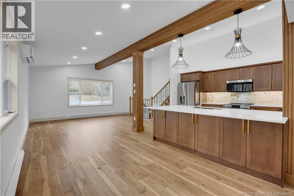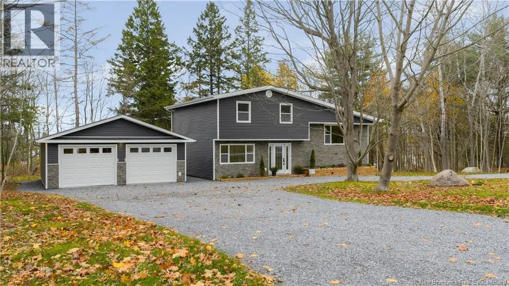From Hampton Road, turn onto Highland Ave and a left onto Ian. OFFERS TO BE REVIEWED AS RECEIVED - Welcome to 2 Ian Crescenta completely reimagined 4-bedroom, 2-bath home on a landscaped 0.79-acre lot surrounded by trees for privacy. Every detail has been redone from top to bottom, offering the comfort and quality of a brand-new home in one of Rothesays most sought-after neighbourhoods. The main level features a bright entry with heated tile floors, a mudroom with backyard access, laundry area, full bath, and a spacious office perfect for working from home. Upstairs, the open-concept living, dining, and kitchen area offers soaring ceilings and stylish finishes throughout. The custom kitchen includes quartz countertops, a large island with sink, pot filler over the stove, and a coffee bar with a second pot fillera perfect blend of function and design. The third level offers three bedrooms and a modern full bath, while the lower level features a large rec room with electric fireplace and a fourth bedroom, ideal for guests or family. Outside, enjoy the circular driveway, brand-new double garage, and extra built-in storage under the home for tools or seasonal gear. Extensive upgrades include new roof, windows, doors, insulation (R24 walls / R50 attic), electrical, plumbing, sewer line, flooring, driveway, landscaping, garage, and complete interior renovationtruly move-in ready. (id:27476)