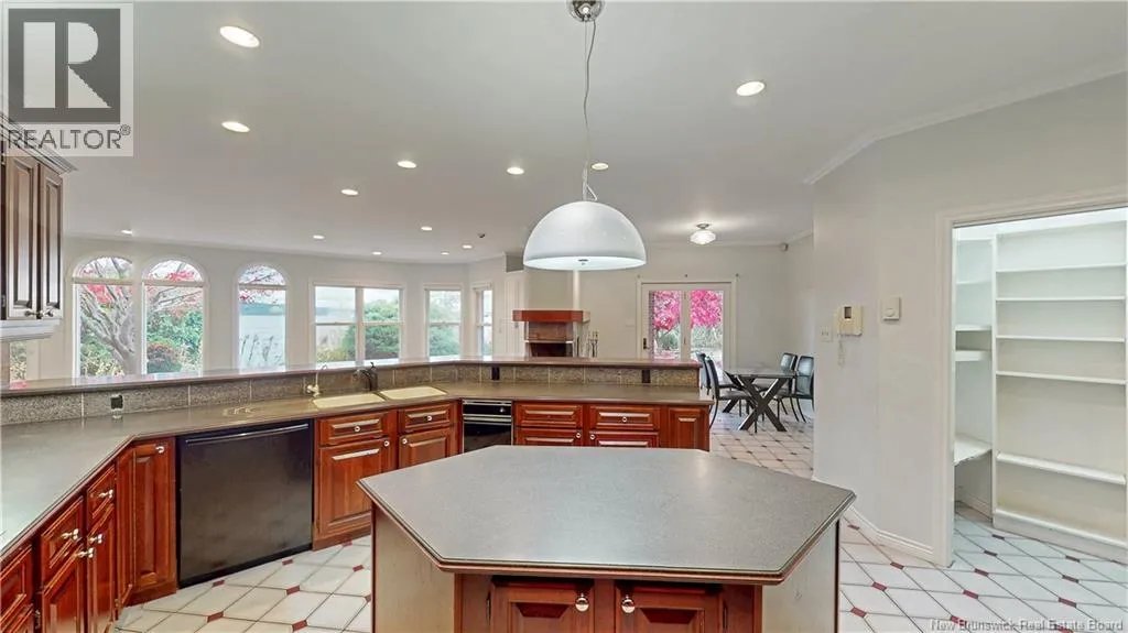KPARK- PARTRIDGE AND LEFT ONTO ELIZABETH PARKWAY Waterfront. Western Exposure. Wow. Set within the coveted Kennebecasis Park enclave, this extraordinary waterfront residence delivers the rare combination of privacy, presence, and panoramic river views. With 118 feet of prime Kennebecasis River frontage, sunsets are a nightly show. Spanning 3500 square feet on the main level plus triple car garage, this 4-bedroom, 3-bath home was designed to entertain and to impress. Inside, striking Brazilian hardwood floors, a grand dining room, and multiple fireplaces set a tone of timeless elegance, while expansive windows frame sweeping river views from nearly every room. The primary suite offers a retreat of its own river views, patio access, a luxurious ensuite bath and an oversized walk-in closet worthy of a dream home. Outside, the architecture blends brick cladding and interlocking driveway stones with mature landscaping to create a stately, secluded presence. A triple-car garage, full basement, and generous principal rooms provide both functionality and flexibility for modern living. Hidden from the street yet positioned perfectly on the river, this property captures the essence of Kennebecasis Park living boating, sunsets, and serenity all at your doorstep. A gardeners paradise awaits with flower beds galore, shrubs, and mature trees. This isnt just a houseIts a lifestyle on the water. (id:27476)