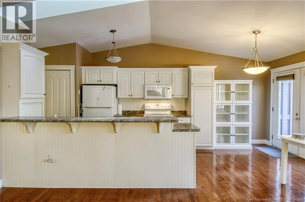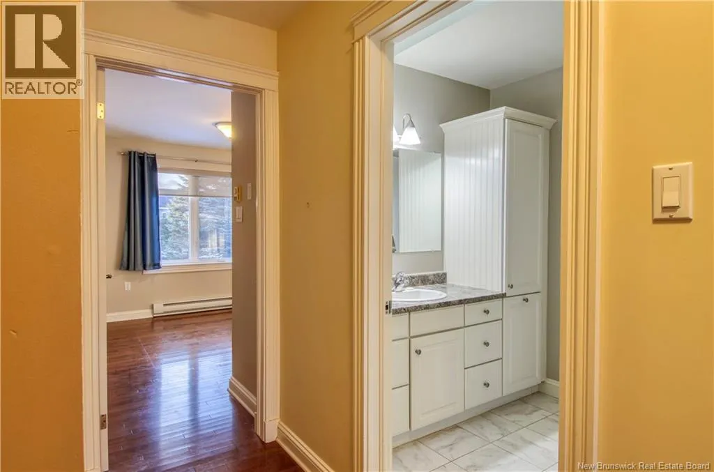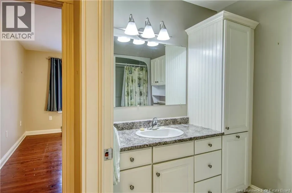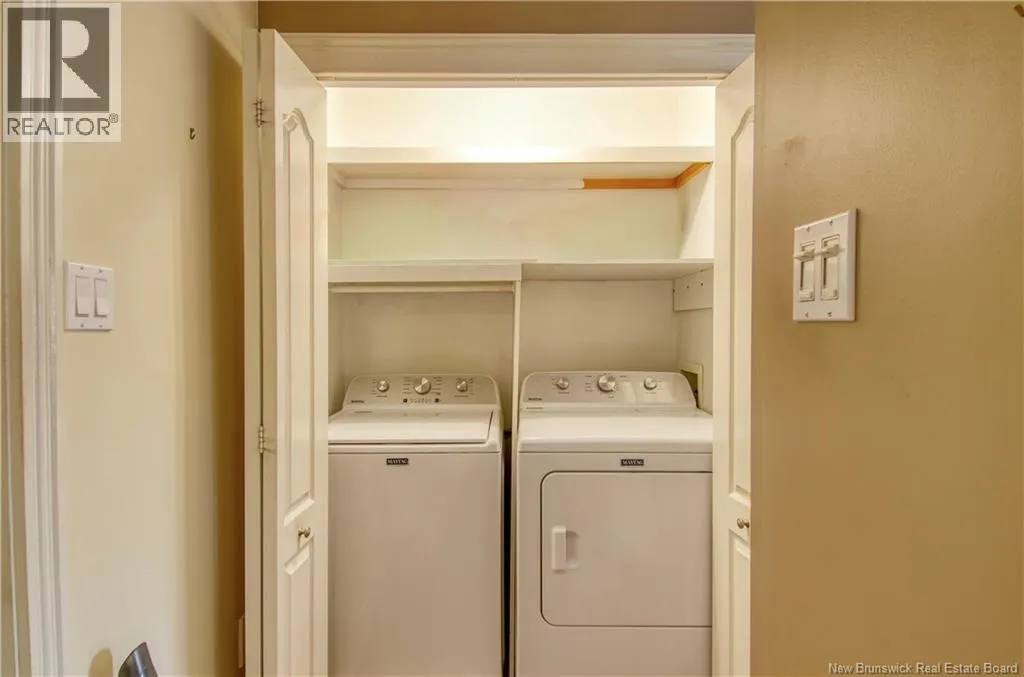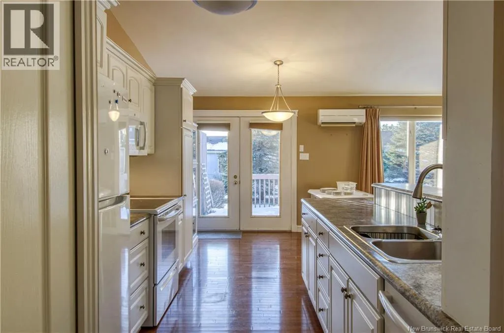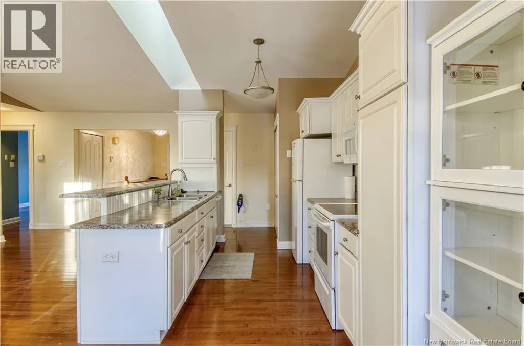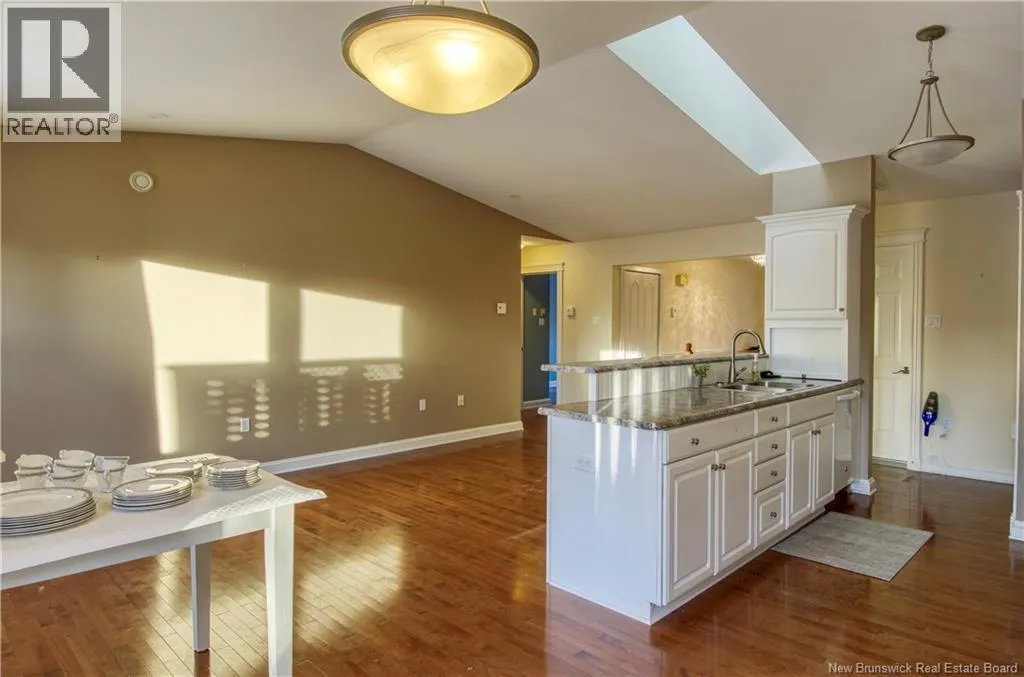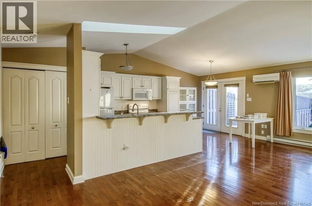 Marr Rd to Chapel Rd to Chapel Hill Blvd to Windermere Ct Welcome to 5 Windemere Crt, a maintenance-free garden home in one of the most desired neighbourhoods of Kennebecasis Valley. This bright, single-level living layout offers 2 bedrooms, 1.5 baths, two skylights and gorgeous hardwood floors throughout the main living areas. Enjoy year-round comfort with a heat pump and central vacuum. Downstairs is a finished basement with a utility room and a huge store room with shelving- perfect for hobbies or extra storage. Step outside to a very private deck with an awning for shade, plus a garage and easy-care yard. Ideal for downsizing or anyone wanting a simple, one-level lifestyle. (id:27476)