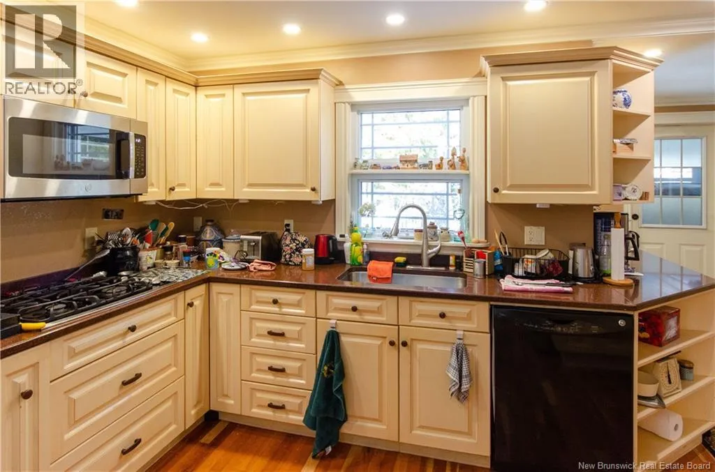 Rothesay Road, right onto Hampton Road, left onto Henderson Park Road. Or, Marr Road, left onto Hampton Road, right onto Henderson Park Road. Tucked behind the cedars along Hampton Road sits a home many have admired in passing, now ready to welcome its next chapter. Located in the storybook town of Rothesay, just around the corner from the beloved Rothesay Common, this home enjoys a setting where winter skating, summer play, and community events are part of everyday life. Even better, primary, middle, and high schools are all within walking distance, making daily routines wonderfully simple. Set back on a tree lined, corner lot just over 1/2 an acre, the home offers privacy, space, and a sense of calm. A paved driveway leads to the attached garage with interior access, opening into a practical entry filled with closet space and easy-care ceramic flooring. Inside, this classic two storey is designed for real life to unfold. Four bedrooms are located upstairs, including a primary suite with ensuite, while the main floor offers inviting living and dining spaces, a kitchen with generous workspace and storage, and a convenient half bath. Laundry has been thoughtfully added to the bedroom level, with original hookups still in place downstairs. The full, dry, unfinished basement provides endless storage. Outside, the fully fenced backyard is ideal for kids and pets alike. Updates include new siding and windows ('17) and new roof ('25), plus a double wide front door ready for any oversized furniture. Loved by the same family for 25 years, this is the kind of home you plants roots in, and grow a legacy. (id:27476)