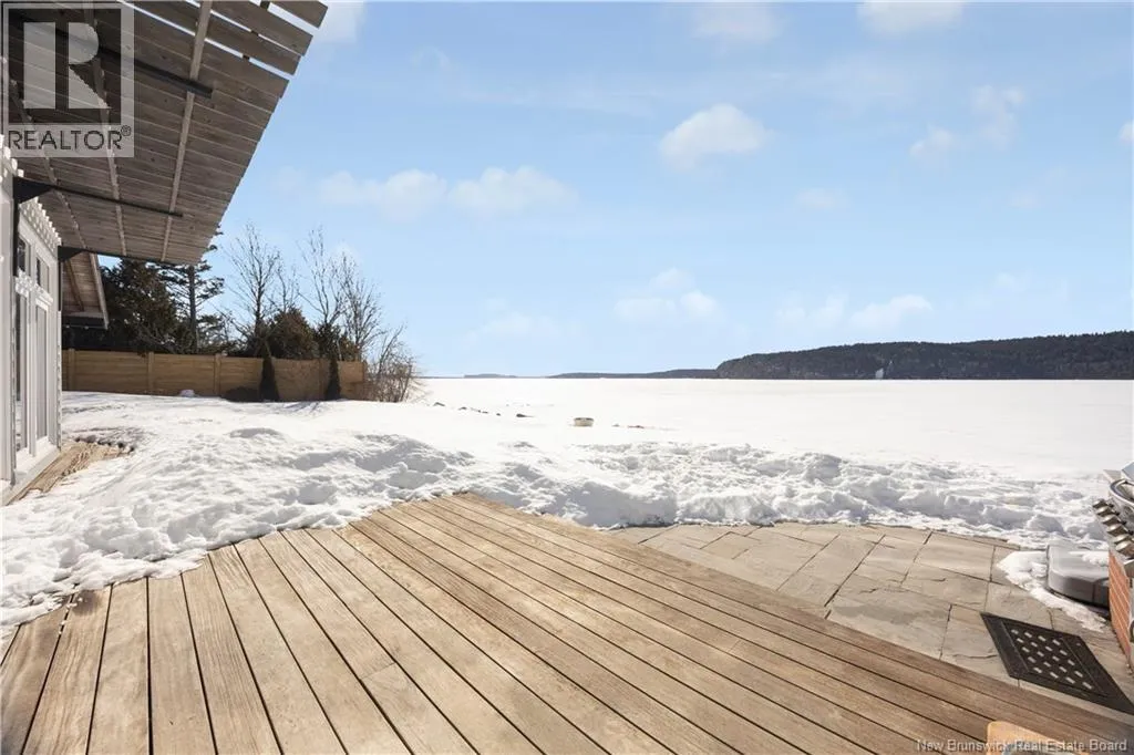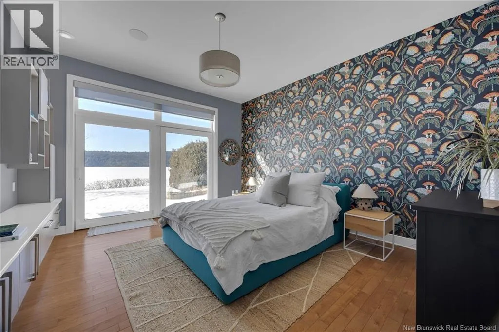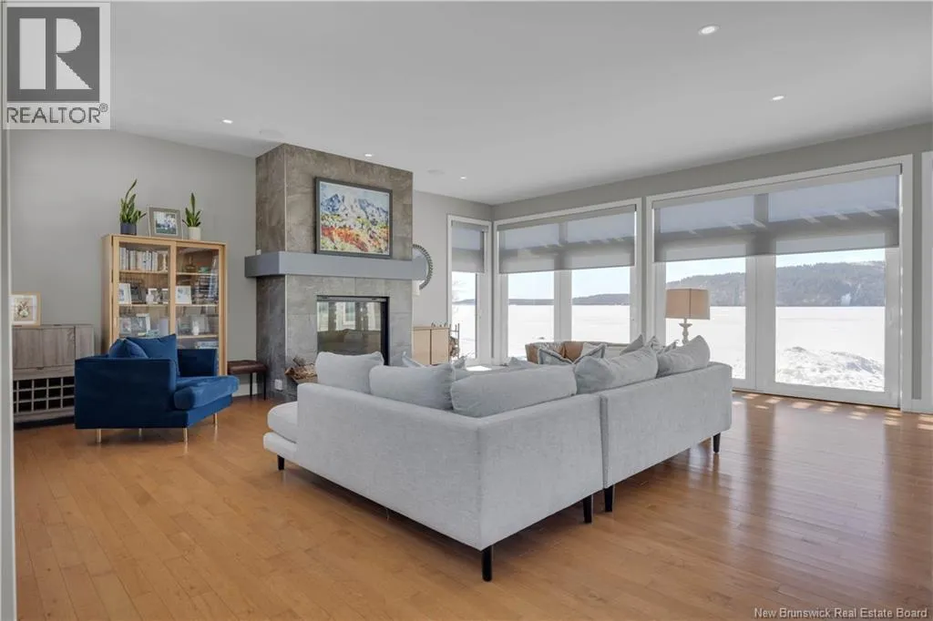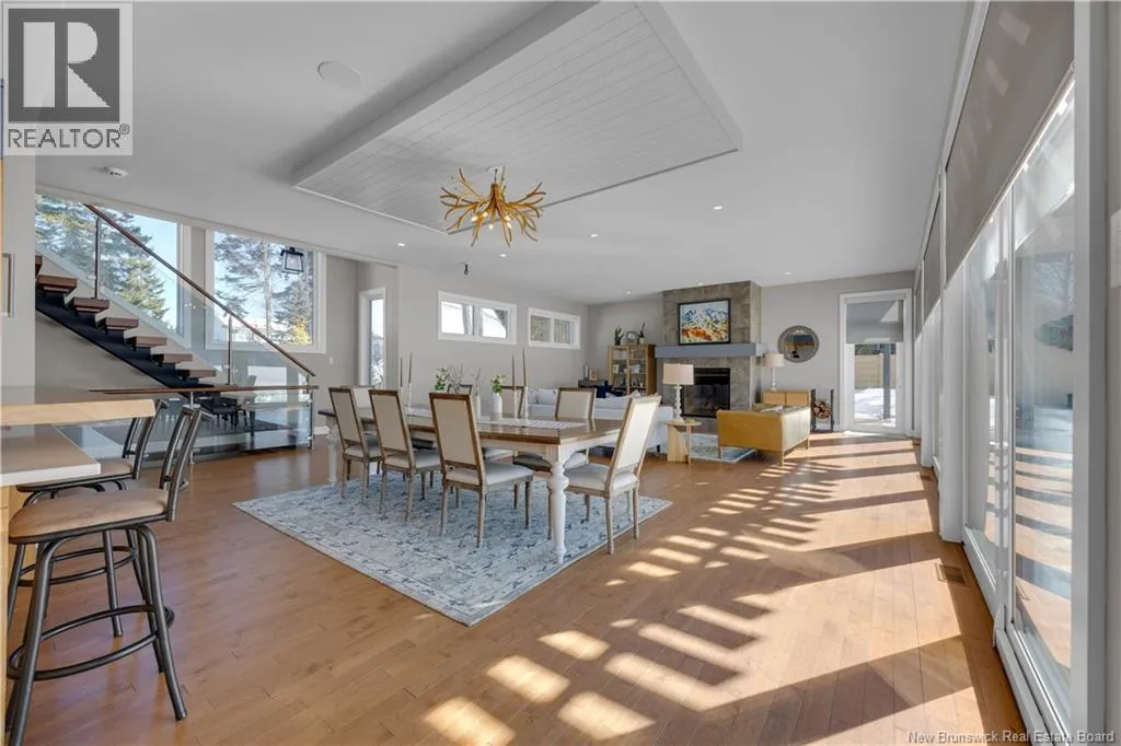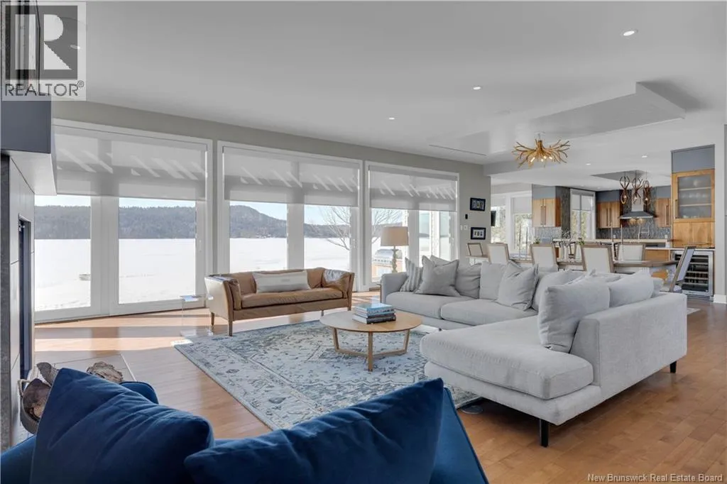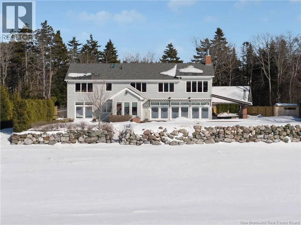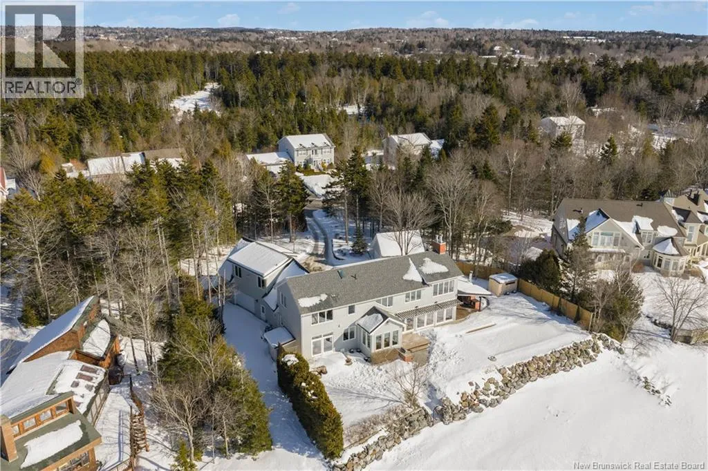 Gondola Point Road to River Road to Maliseet in Sagamore Point Prime Rothesay waterfront! Perched on 0.94 acres with approx 160 feet of frontage on the beautiful Kennebecasis River, this contemporary luxury home blends indoor elegance with stunning outdoor living. Expansive 10 ceilings, floor-to-ceiling windows, and glass walk-outs highlight the great room with wood burning fireplace, perfect for entertaining. Chef-inspired kitchen features walnut cabinetry, quartz waterfall island, Thermador appliances, espresso bar, and heated tile floors. Main floor office can double as 4th bedroom with full bath access. Upstairs, three oversized bedrooms all have ensuites, including a spa-like principal suite with propane fireplace, panoramic river views, and custom walk-in closet. Lofted family room with fireplace adds extra living space. Finished basement includes gym, rec room, and plenty of storage. Two geothermal heat pumps provide efficient heating and cooling. Outside, enjoy saltwater pool, composite decking, slate patios, sauna, outdoor pizza oven, and professionally landscaped private grounds. Oversized 3-car heated garage, paved driveway, and extra-wide walkway complete this exceptional riverfront retreat designed for casual elegance and entertaining. Make your waterfront dreams a reality in this unmatched beauty! (id:27476)