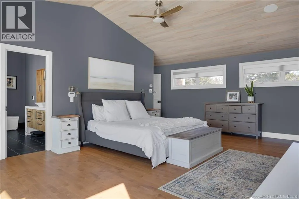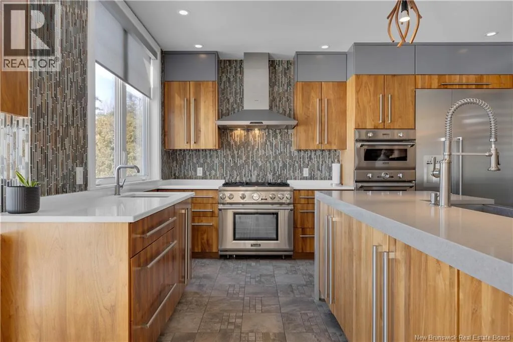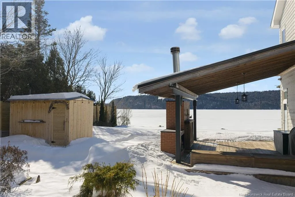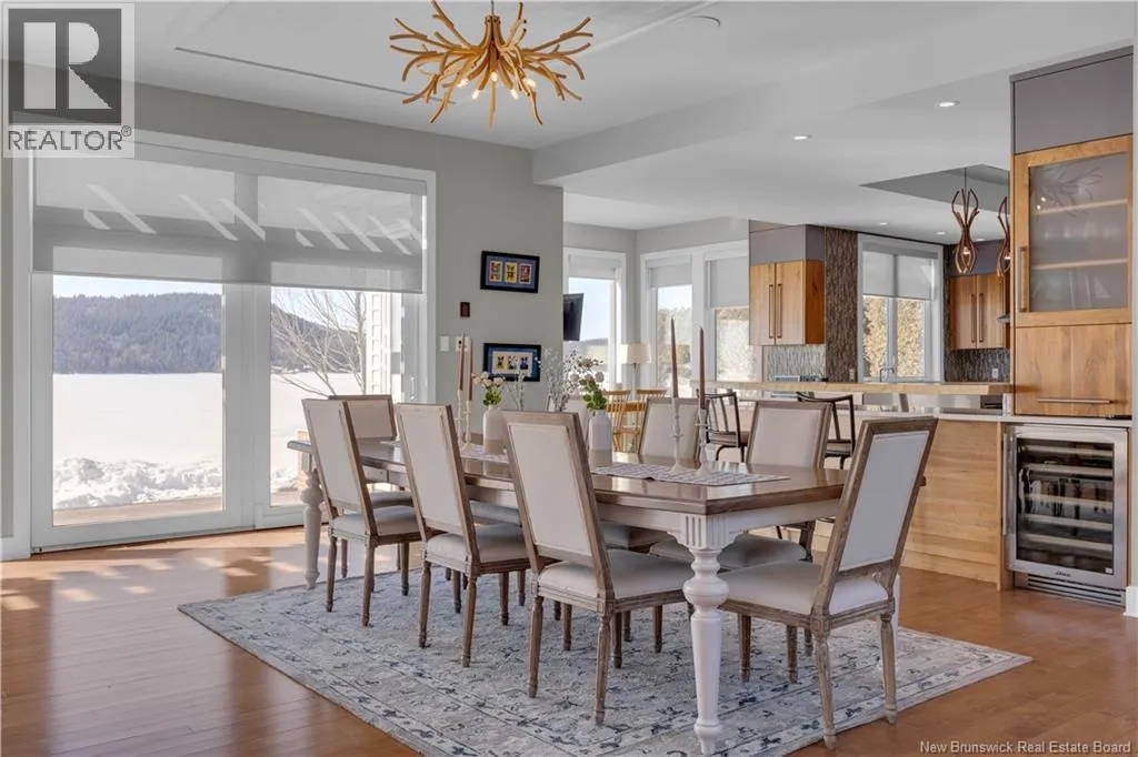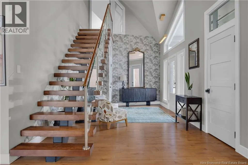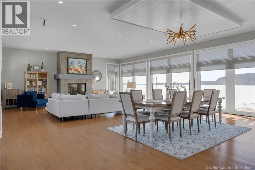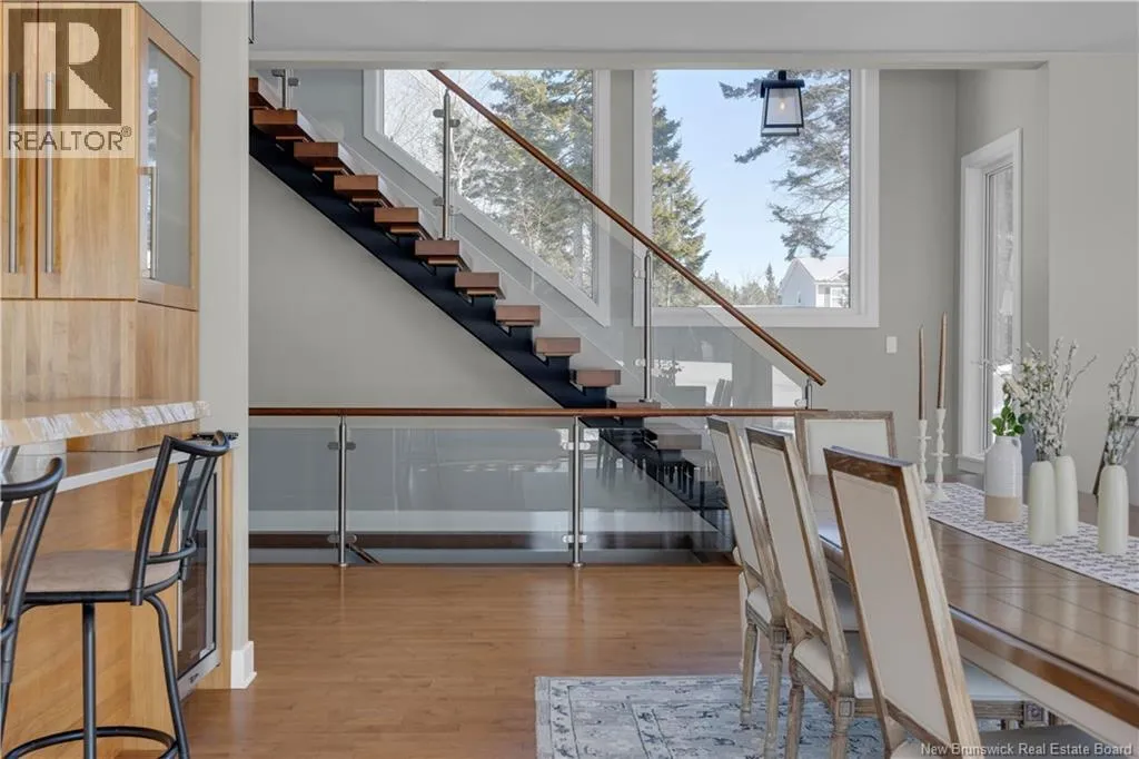Gondola Point Road to River Road to Maliseet in Sagamore Point Prime Rothesay waterfront! Perched on 0.94 acres with approx 160 feet of frontage on the beautiful Kennebecasis River, this contemporary luxury home blends indoor elegance with stunning outdoor living. Expansive 10 ceilings, floor-to-ceiling windows, and glass walk-outs highlight the great room with wood burning fireplace, perfect for entertaining. Chef-inspired kitchen features walnut cabinetry, quartz waterfall island, Thermador appliances, espresso bar, and heated tile floors. Main floor office can double as 4th bedroom with full bath access. Upstairs, three oversized bedrooms all have ensuites, including a spa-like principal suite with propane fireplace, panoramic river views, and custom walk-in closet. Lofted family room with fireplace adds extra living space. Finished basement includes gym, rec room, and plenty of storage. Two geothermal heat pumps provide efficient heating and cooling. Outside, enjoy saltwater pool, composite decking, slate patios, sauna, outdoor pizza oven, and professionally landscaped private grounds. Oversized 3-car heated garage, paved driveway, and extra-wide walkway complete this exceptional riverfront retreat designed for casual elegance and entertaining. Make your waterfront dreams a reality in this unmatched beauty! (id:27476)