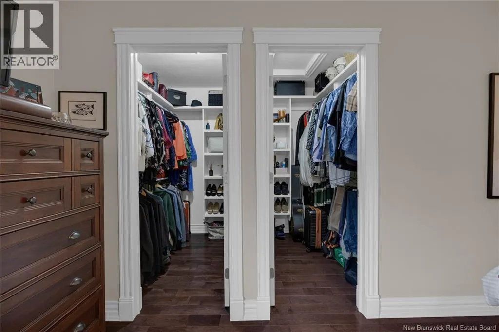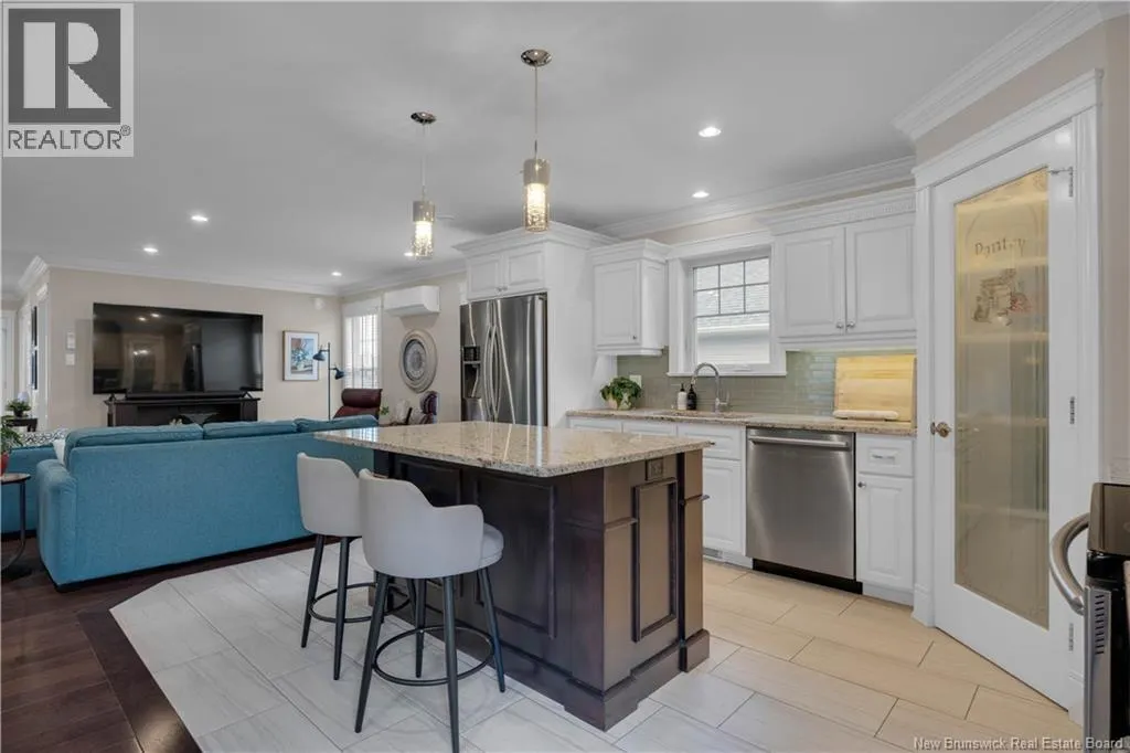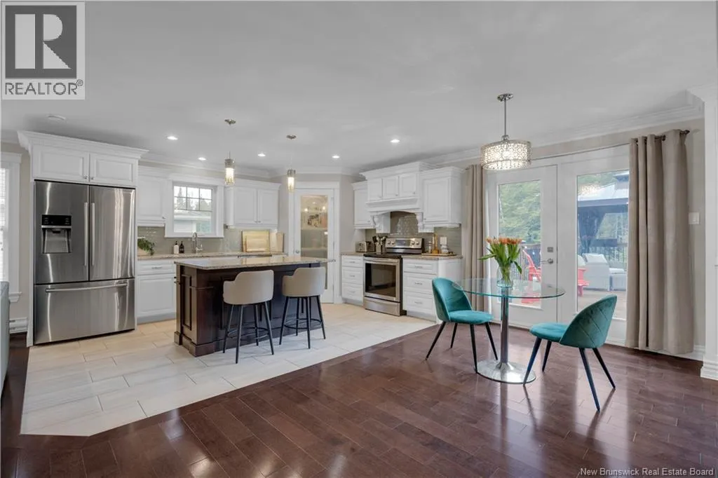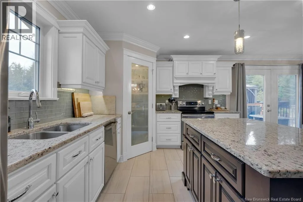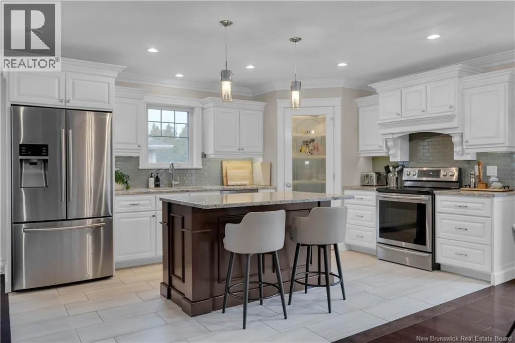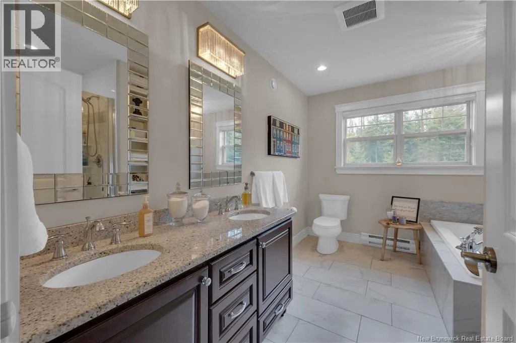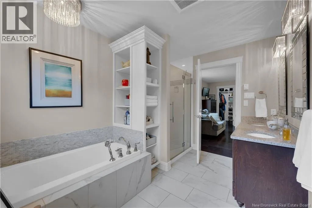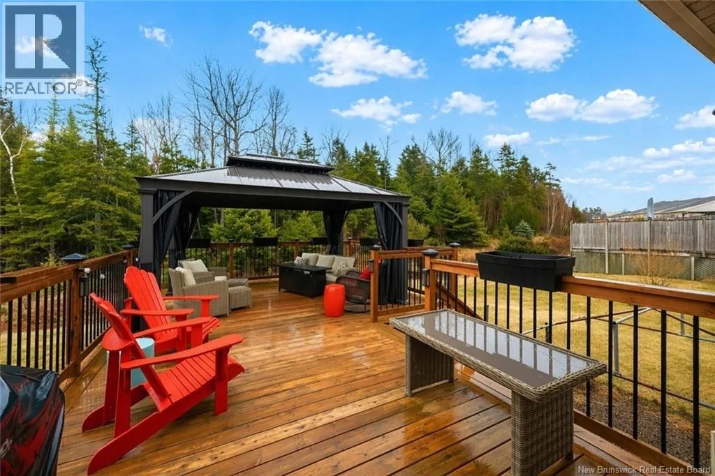 From Hampton Rd, turn onto Oakville Lane (Right across from Sobeys) Left on Bel - Air Welcome to this stunning custom-built McKay Custom Homes home, nestled in a sought-after newer development in Rothesay. Showcasing exceptional craftsmanship and high-end finishes throughout, this beautifully designed property features a total of 5 bedrooms! 2 on the main floor and 3 below. Primary bedroom boasts a beautiful ensuite with jetted tub and separate shower. There are two other full bathrooms, one up and one down. The main living space offers custom woodwork, built-ins, elegant light fixtures, and custom window treatments. The gourmet kitchen is equipped with a dual-zone oven, warming drawer, and warming centre- perfect for entertaining. A large step in pantry, gorgeous island making this a chefs kitchen for sure! Enjoy main floor laundry and a spacious primary suite with a spa-like ensuite featuring an air tub and his-and-her walk-in closets. The lower level includes a cozy electric fireplace, and separate heat pump, with an additional heat pump upstairs for optimal comfort. A separate generator panel powers approximately 90% of the home for added peace of mind. Step outside to an expanded deck with a 12x14 high-end gazebo making your outdoor living dreams come true! Plus custom stairs and garden beds by McDonough Brothers. A wide treed buffer provides added privacy, while low-maintenance living includes mowing and snow removal for $92/month. (id:27476)