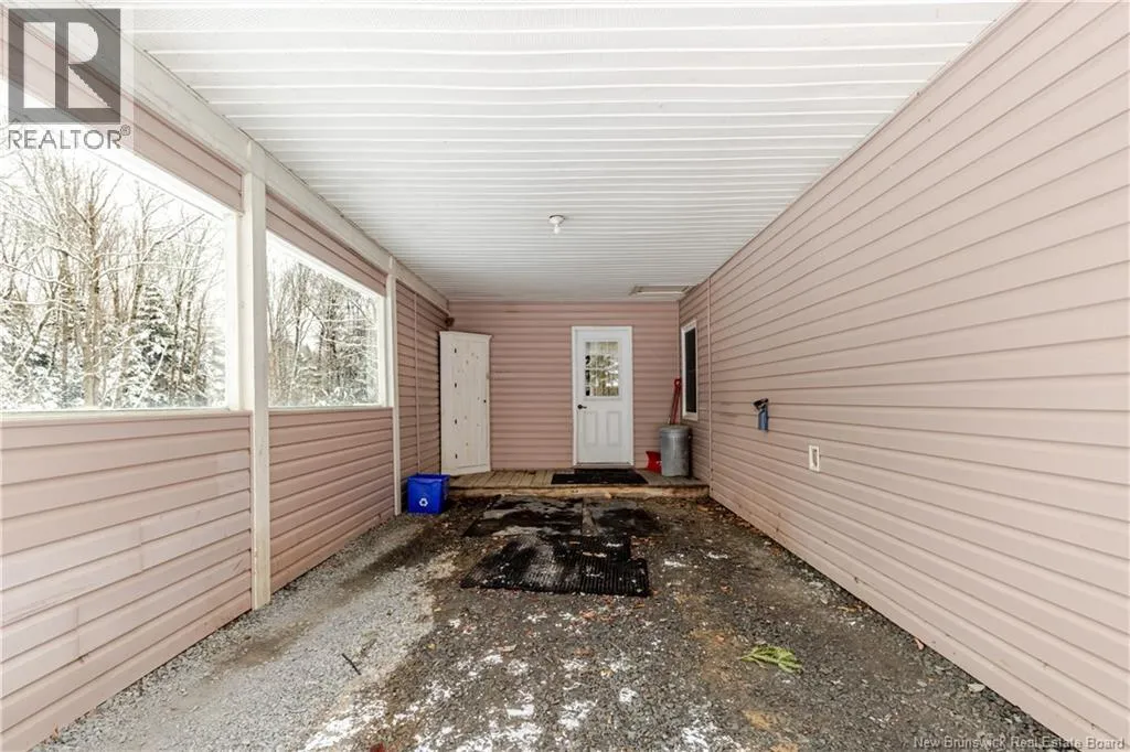 From Fredericton, take the Royal Road (Rte 620). Home is about 10 minutes out on the right hand side. Welcome to country living only 15 minutes from all Fredericton amenities. This 3 bedroom home has seen numerous upgrades over the years. In 2007 it had a large kitchen, dining room and bedroom added to the original mini home that was there with a full metal roof added across the entire home with engineered trusses and an attic. Enter through the carport into the large kitchen and dining area with a door to the private deck on the back. There is also a bedroom off the dining area. Then continue into the large foyer and living room then down the hall to 2 more bedrooms, the full bathroom and laundry room/storage. This over 1100 square foot home offers the convenience of single level living on a beautiful one acre lot with gardens, berries and more. But wait, that's not all. The home also has 2 brand new heat pumps, a new dishwasher, a new well pump, new water heater, is freshly painted, and much more. All you need to do is unpack and move in. And outside there are 2 large storage sheds plus the double car garage with a loft, that has it's own power and wood stove (""As Is, Where Is""). (id:27476)