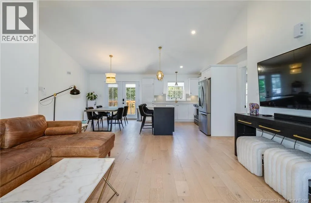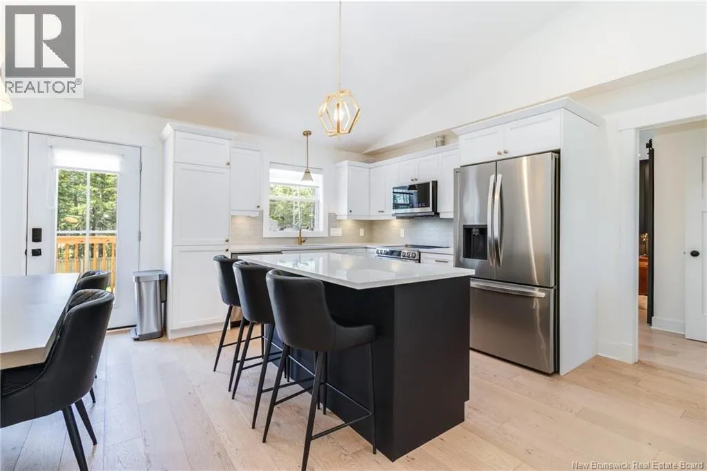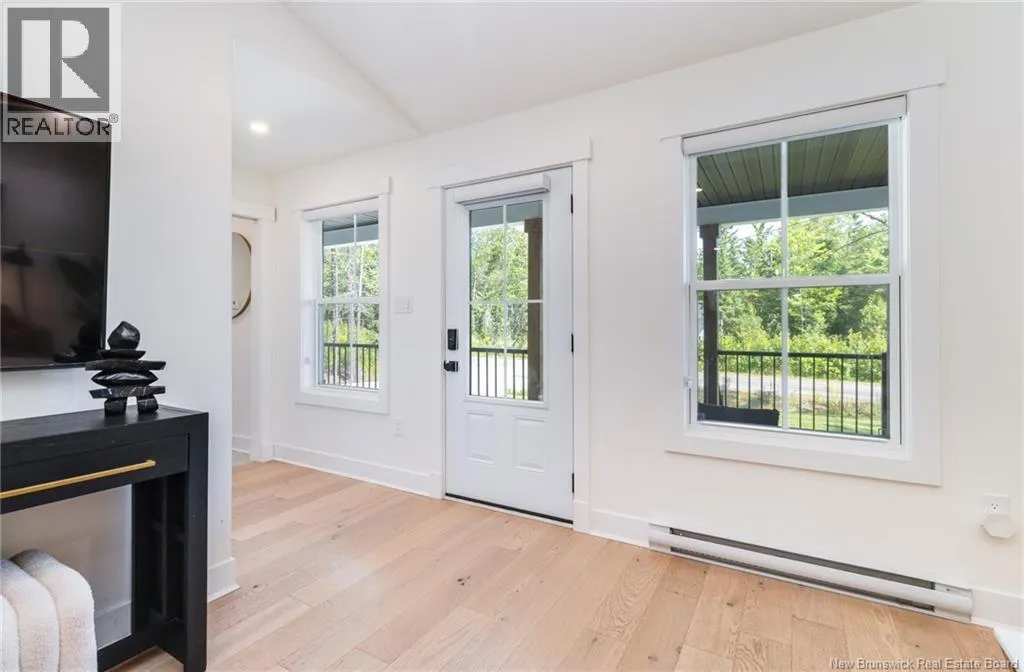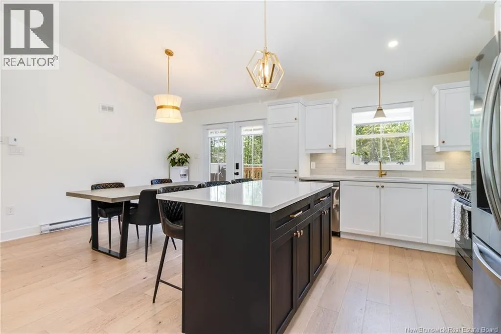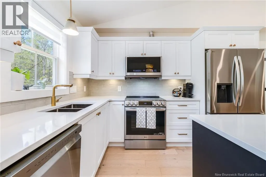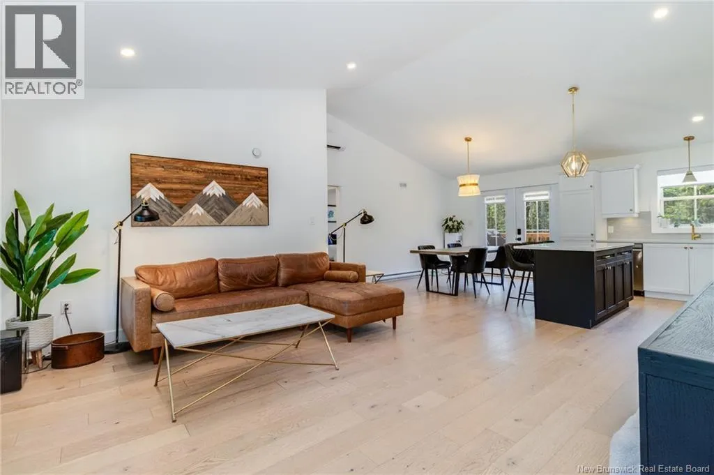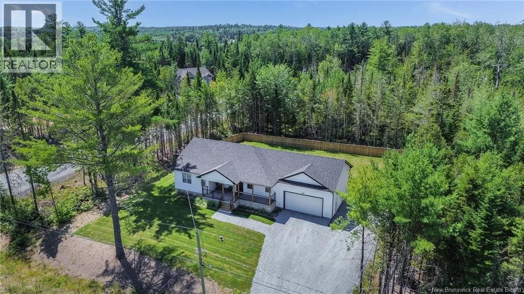 From NB-655, turn onto Peabody Road. The sign is at the beginning of the street, third house on the right. Welcome to 20 Peabody Road - a custom-built 5 bedroom, 3 bath executive bungalow on a landscaped 1 acre lot in Rusagonis. Built in 2023 by Wilde Custom Homes, this modern home is move-in ready and has had plenty of upgrades. The open concept main floor features cathedral ceilings, custom hardwood floors, and a kitchen by Kitchen Creations with quartz countertops and an oversized island. The primary suite includes a walk-in closet and a 4 piece ensuite with a freestanding tub and tiled shower. Two more bedrooms and a full bath complete the main level with a pocket door to divide them from the main living space. Downstairs offers an extra-large family room with built-in cabinets, 2 additional bedrooms (one used as a gym), a full bath, and storage. The attached 24x28 garage is heated, insulated, and includes a Tesla EV charger. Outside, the fully fenced backyard features a hot tub with a gazebo, an oversized storage shed, and trees lining the lot for privacy. Additional features include custom zebra blinds throughout, ductless heat pumps, a generator panel, and remaining new home warranty. Located between Fredericton and Oromocto with quick highway access. (id:27476)