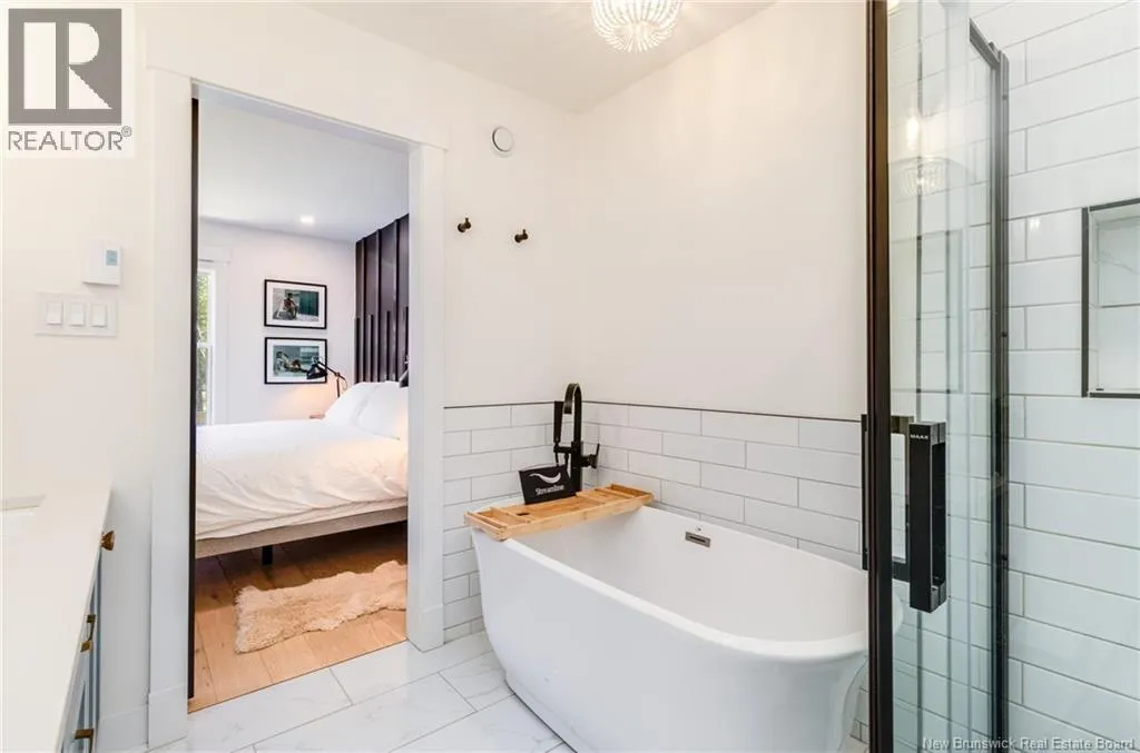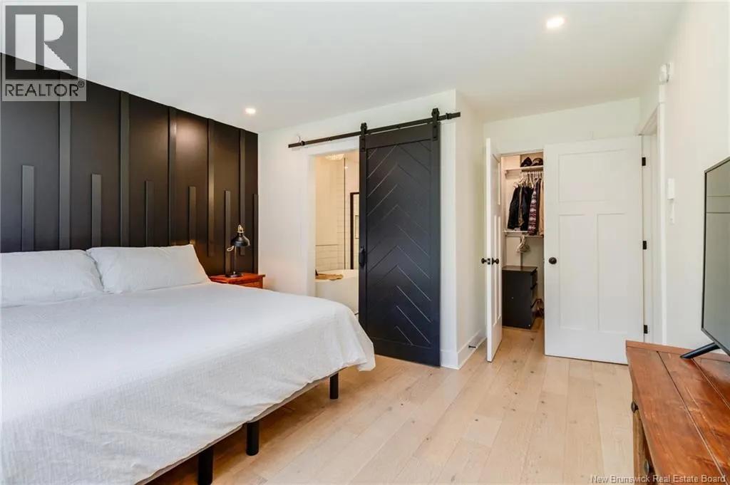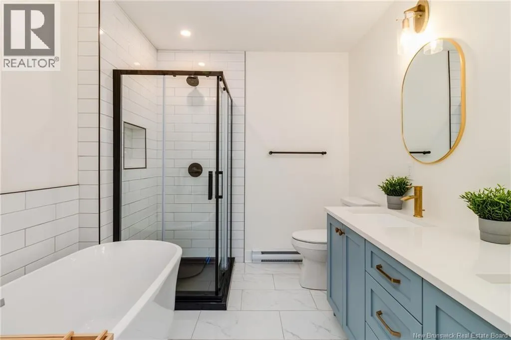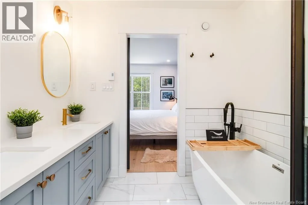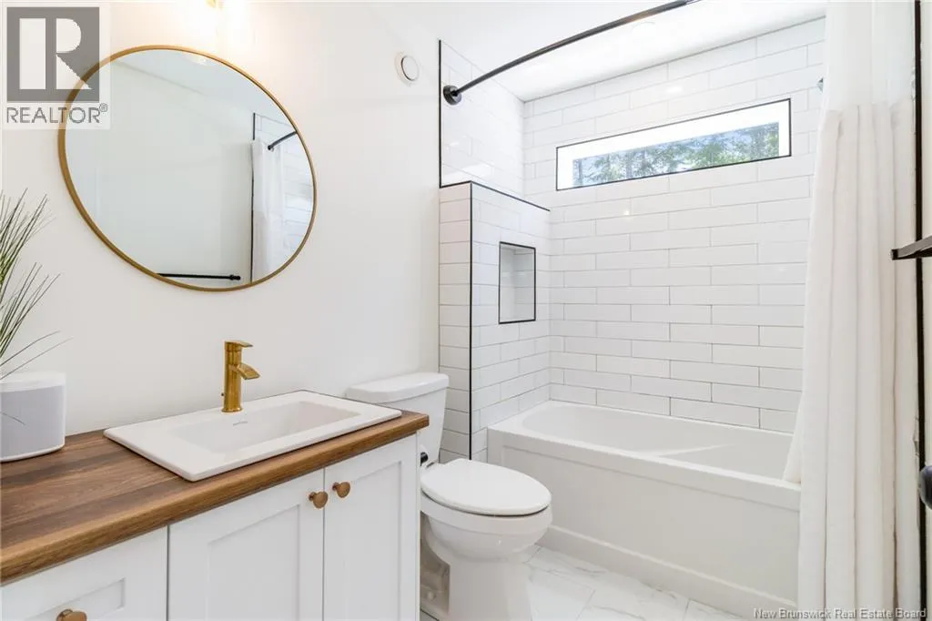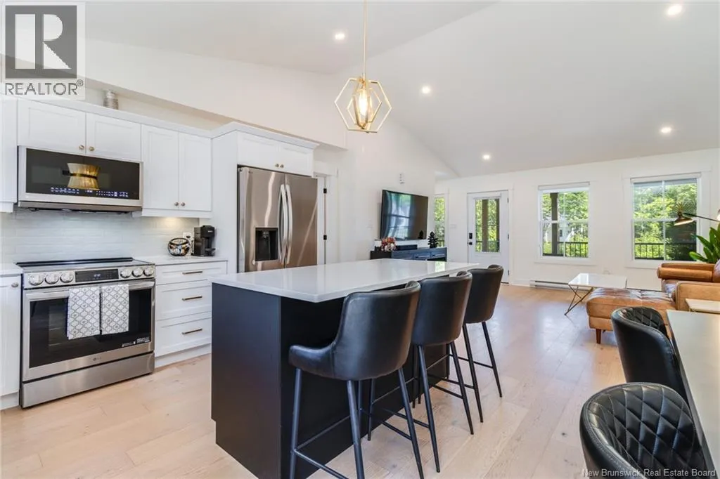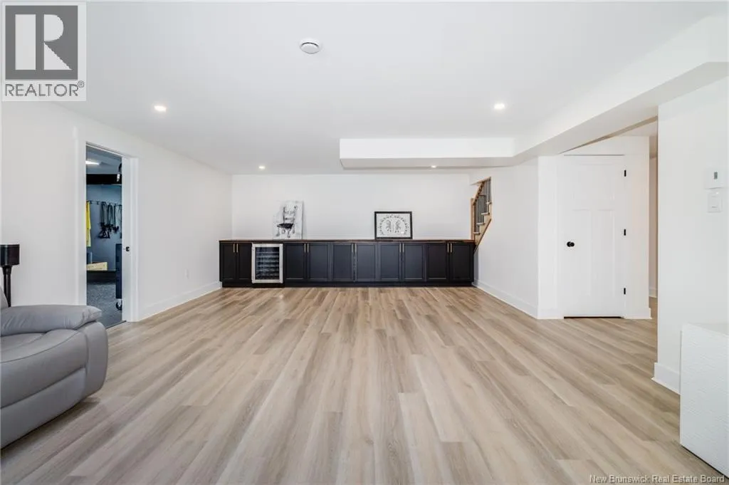 From NB-655, turn onto Peabody Road. The sign is at the beginning of the street, third house on the right. Welcome to 20 Peabody Road - a custom-built 5 bedroom, 3 bath executive bungalow on a landscaped 1 acre lot in Rusagonis. Built in 2023 by Wilde Custom Homes, this modern home is move-in ready and has had plenty of upgrades. The open concept main floor features cathedral ceilings, custom hardwood floors, and a kitchen by Kitchen Creations with quartz countertops and an oversized island. The primary suite includes a walk-in closet and a 4 piece ensuite with a freestanding tub and tiled shower. Two more bedrooms and a full bath complete the main level with a pocket door to divide them from the main living space. Downstairs offers an extra-large family room with built-in cabinets, 2 additional bedrooms (one used as a gym), a full bath, and storage. The attached 24x28 garage is heated, insulated, and includes a Tesla EV charger. Outside, the fully fenced backyard features a hot tub with a gazebo, an oversized storage shed, and trees lining the lot for privacy. Additional features include custom zebra blinds throughout, ductless heat pumps, a generator panel, and remaining new home warranty. Located between Fredericton and Oromocto with quick highway access. (id:27476)