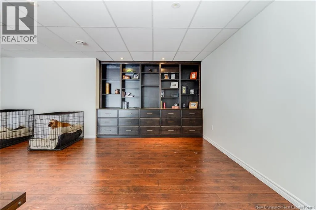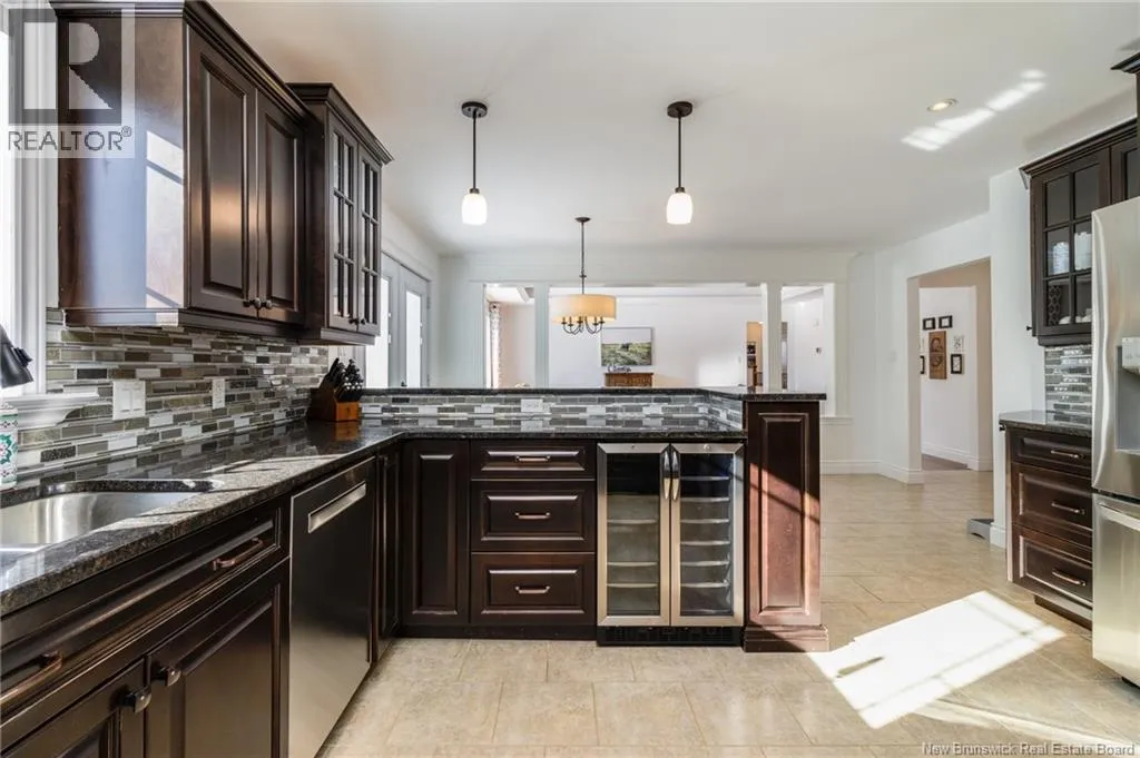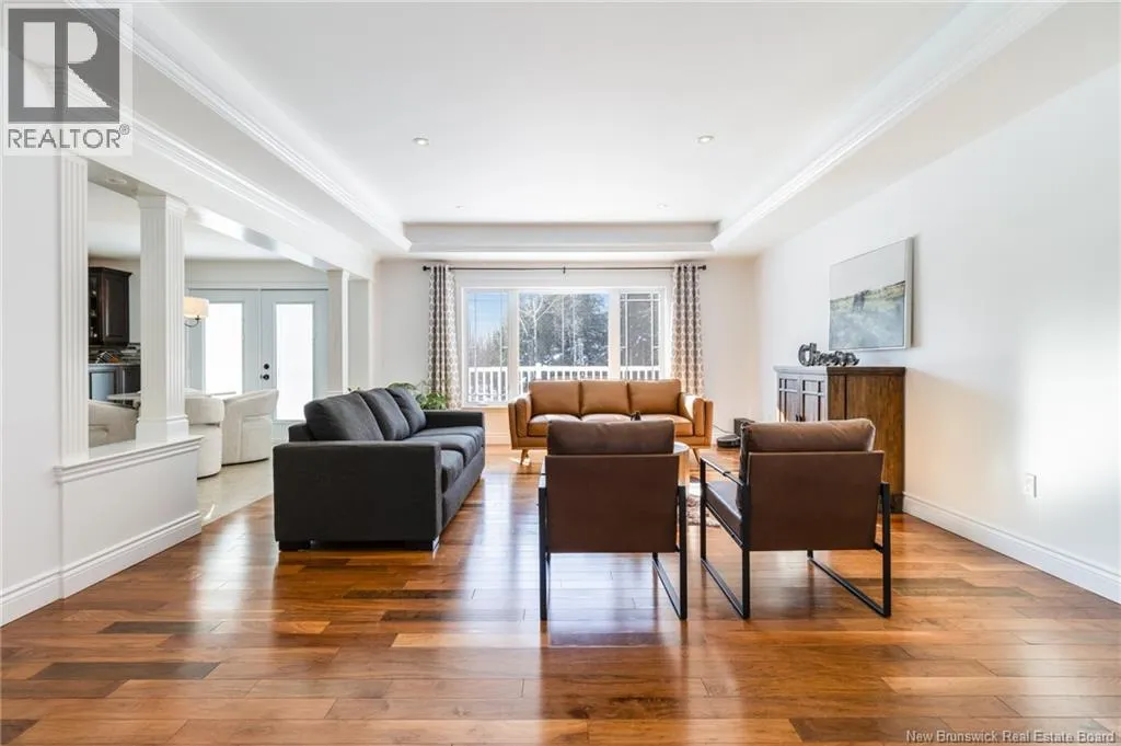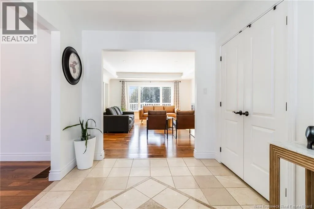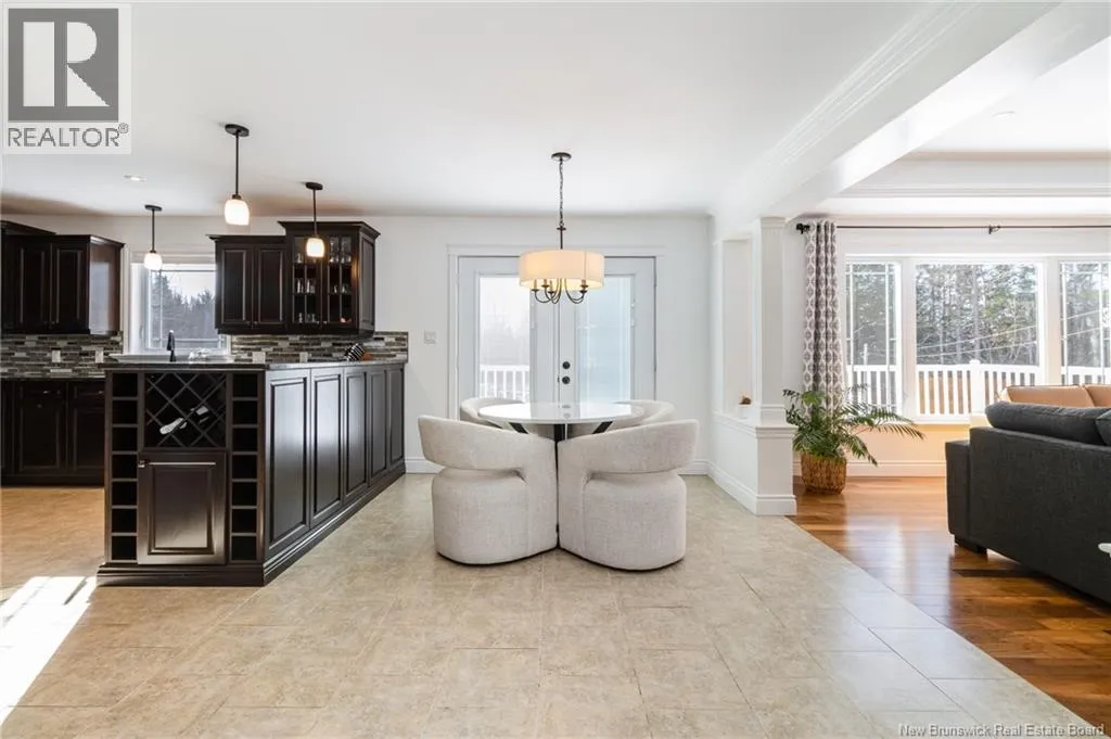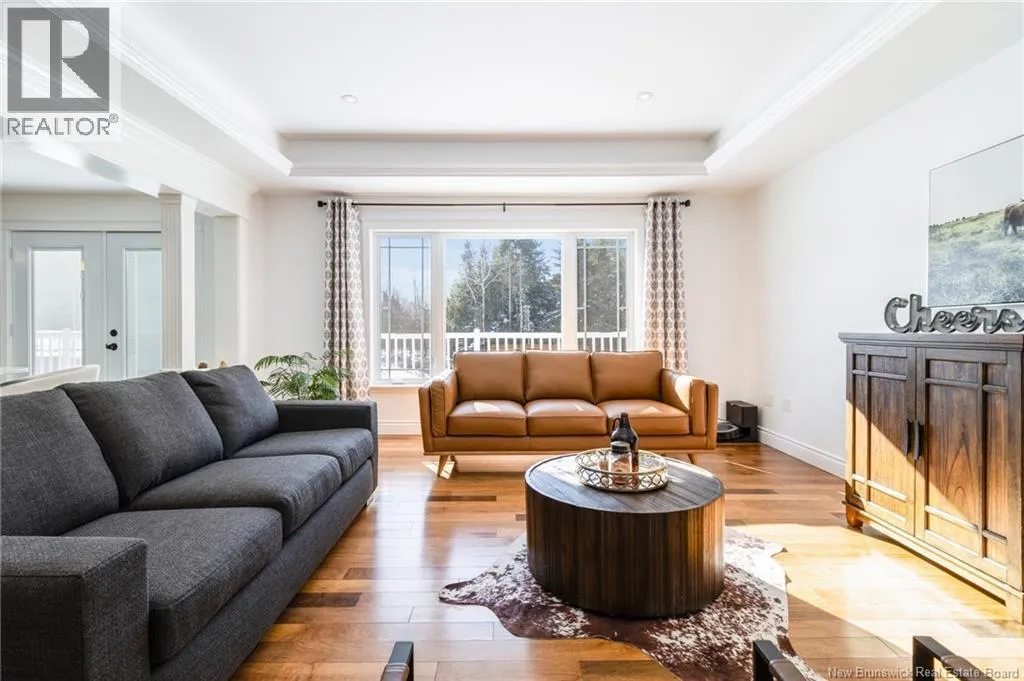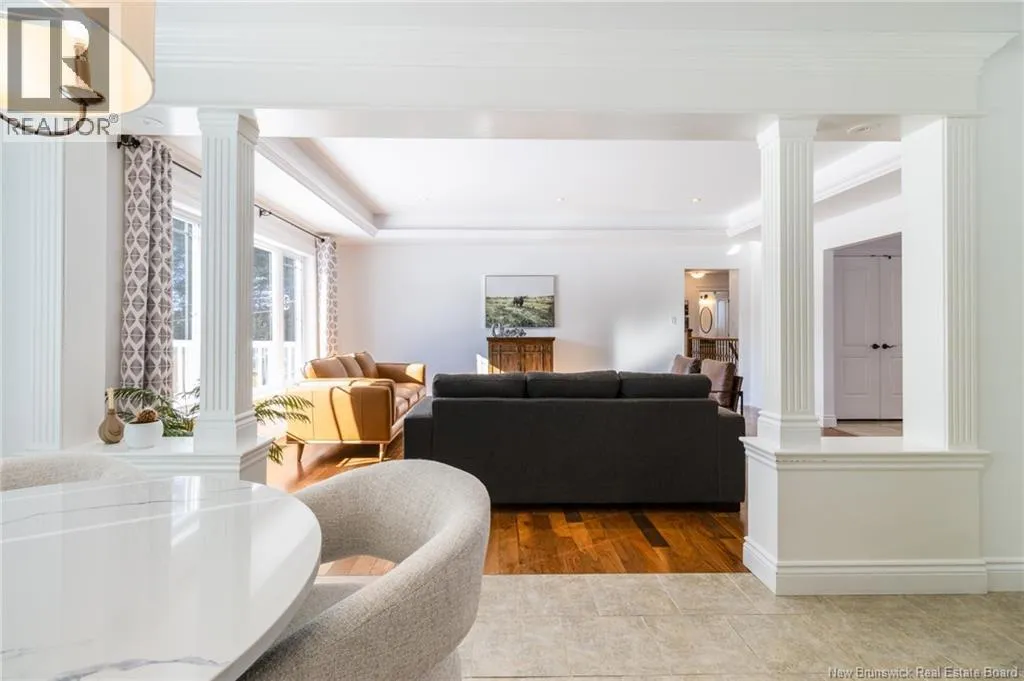 Route 655 to Olive Branch Rd, right onto Canaan Dr., left on Mt. Halak Ave, left onto Bethany Dr. Stunning 5-bedroom, 3-bath bungalow with an oversized double garage, ideally situated in Rusagonis just minutes from both Oromocto and Fredericton. Step inside to a large front foyer with marble floors. The bright living room features gleaming hardwood floors accented by elegant white columns. The chef-inspired kitchen offers granite countertops, rich dark cabinetry, double wall ovens, stainless steel appliances, and direct access to the back deckperfect for entertaining. Adjacent is a formal dining room designed for memorable family gatherings. A generous mudroom with laundry area and interior access to the garage is just off the kitchen. The main level is completed by a spacious primary bedroom with walk-in closet and ensuite featuring a tiled walk-in shower, two additional bedrooms, and a full bathroom. Downstairs, youll find an expansive rec room with walkout access, a theatre room with projector, two more bedrooms, a full bath, and a dedicated office space. Additional highlights include ample storage throughout, an efficient heat pump, and a rear garage door ideal for storing recreational equipment. Above ground pool with large deck and privacy fence. (id:27476)