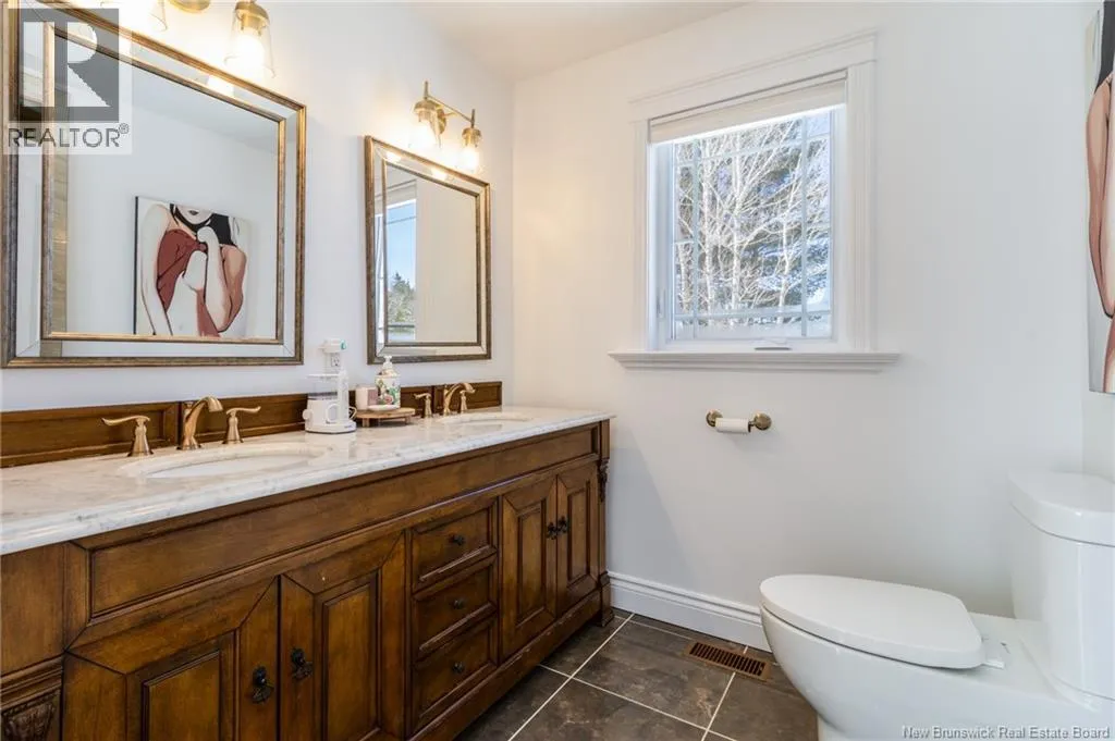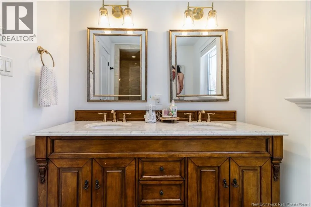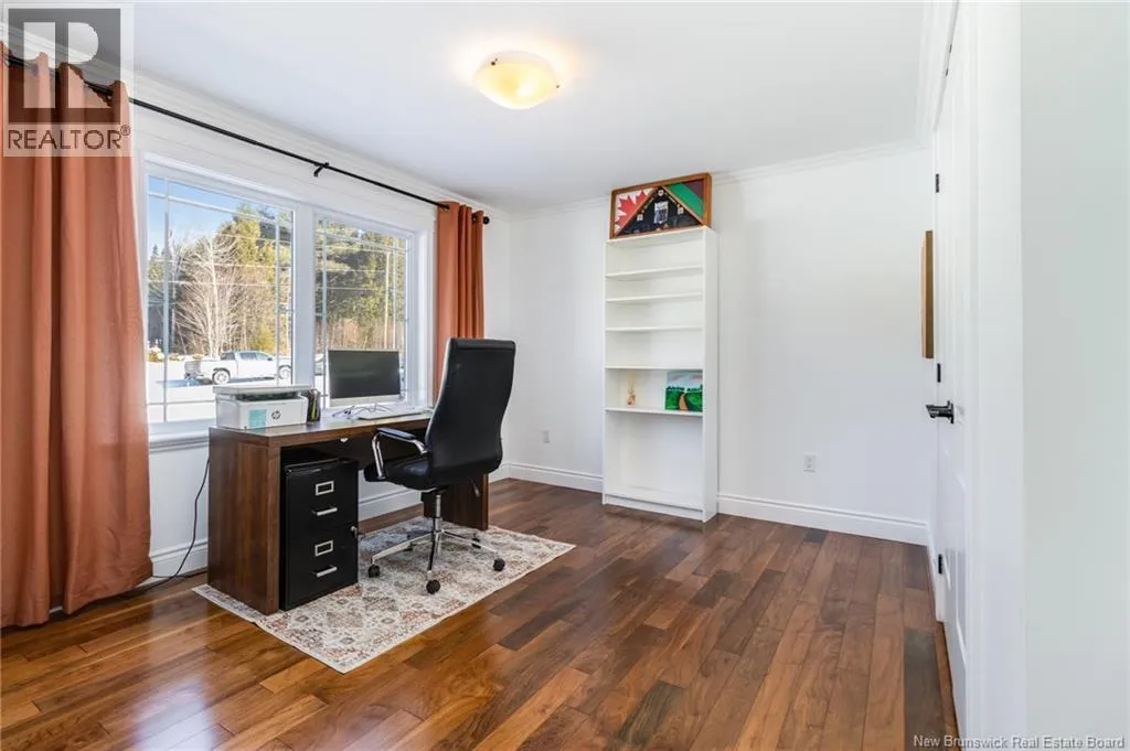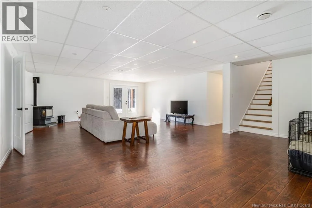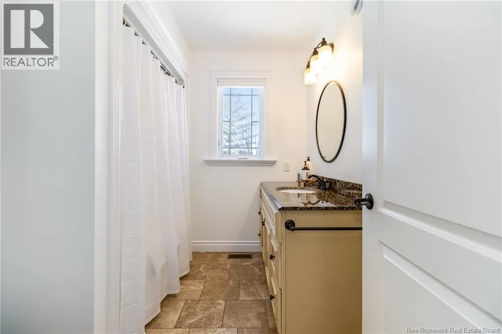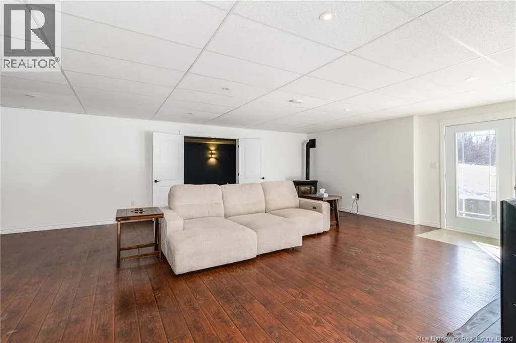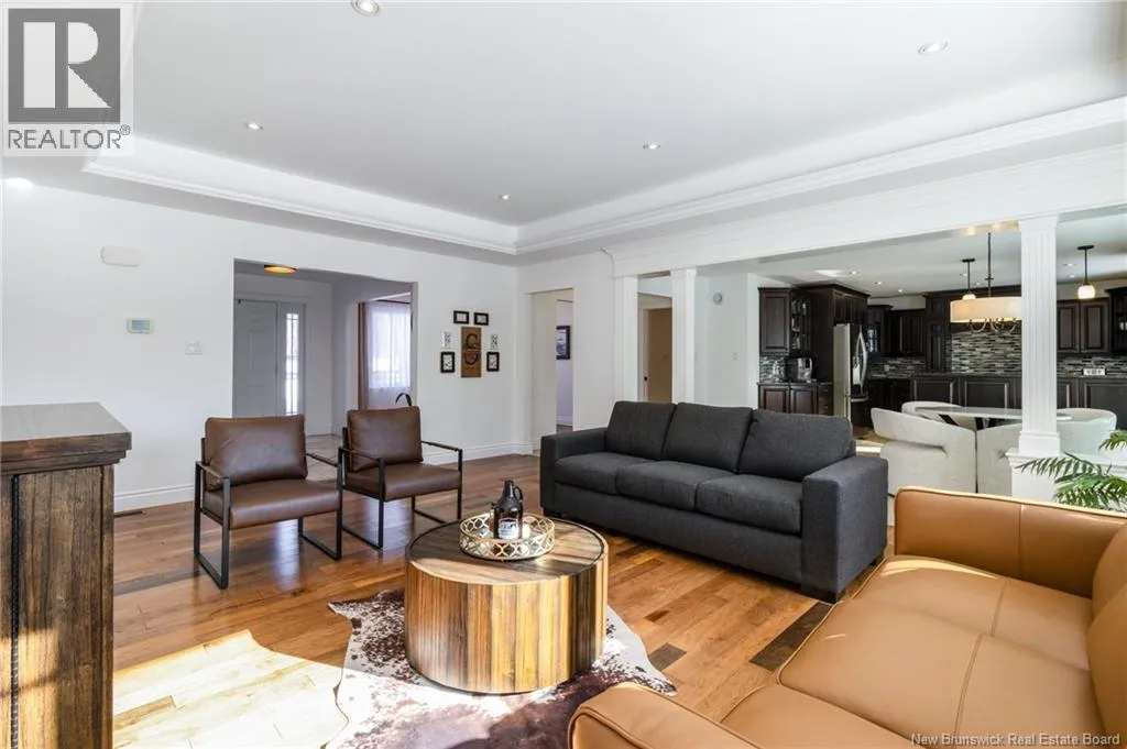 Route 655 to Olive Branch Rd, right onto Canaan Dr., left on Mt. Halak Ave, left onto Bethany Dr. Stunning 5-bedroom, 3-bath bungalow with an oversized double garage, ideally situated in Rusagonis just minutes from both Oromocto and Fredericton. Step inside to a large front foyer with marble floors. The bright living room features gleaming hardwood floors accented by elegant white columns. The chef-inspired kitchen offers granite countertops, rich dark cabinetry, double wall ovens, stainless steel appliances, and direct access to the back deckperfect for entertaining. Adjacent is a formal dining room designed for memorable family gatherings. A generous mudroom with laundry area and interior access to the garage is just off the kitchen. The main level is completed by a spacious primary bedroom with walk-in closet and ensuite featuring a tiled walk-in shower, two additional bedrooms, and a full bathroom. Downstairs, youll find an expansive rec room with walkout access, a theatre room with projector, two more bedrooms, a full bath, and a dedicated office space. Additional highlights include ample storage throughout, an efficient heat pump, and a rear garage door ideal for storing recreational equipment. Above ground pool with large deck and privacy fence. (id:27476)