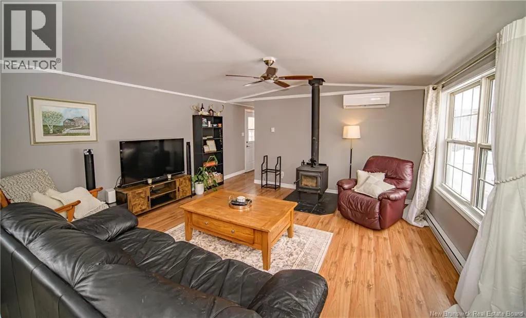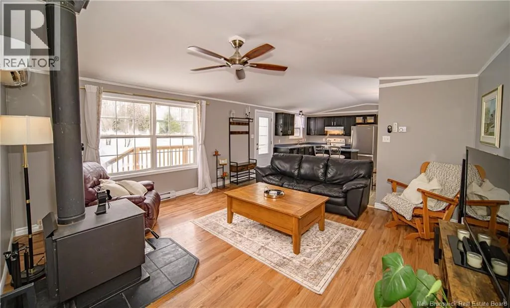 Wilsey Road and continue onto Post Road property on left Affordable rural living on 2 acres of privacy, short drive to Fredericton and Oromocto! This 3 bedroom, 1.5 bath mini home offers a smart, split-bedroom layout thats ideal for families, guests, or home office setup. Step inside to bright, welcoming main living space with ductless mini-split heat pump for efficient year-round comfort, plus added warmth of wood stove. Kitchen and living room sit centrally, featuring dark cabinetry, great counter space, and island thats perfect for casual meals or entertaining. At one end of the home, youll find spacious primary bedroom along with laundry area and full main bath. On opposite end are two additional bedrooms and convenient half bath with direct access from both bedrooms, fantastic setup for kids or guests. Outside, enjoy extra storage and workspace with small storage shed and 16x24 wired workshop, ideal for hobbies, tools, toys, or projects, plus the peace of mind of metal roof. If youve been looking for privacy, practicality, and value, this property is one to see! (id:27476)
