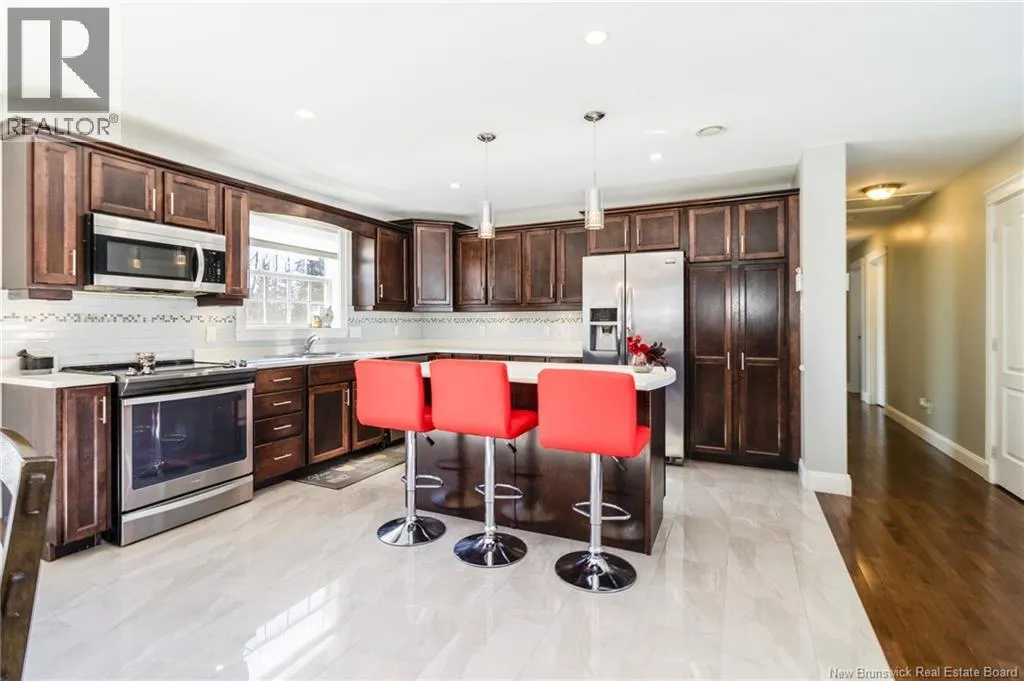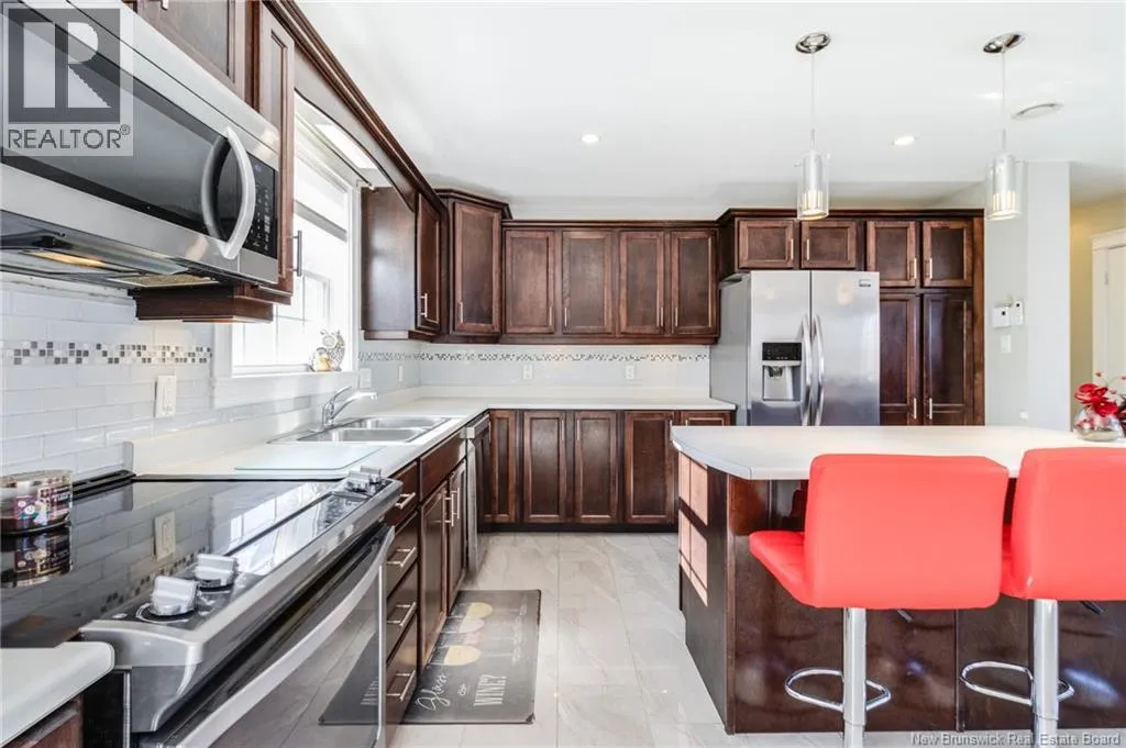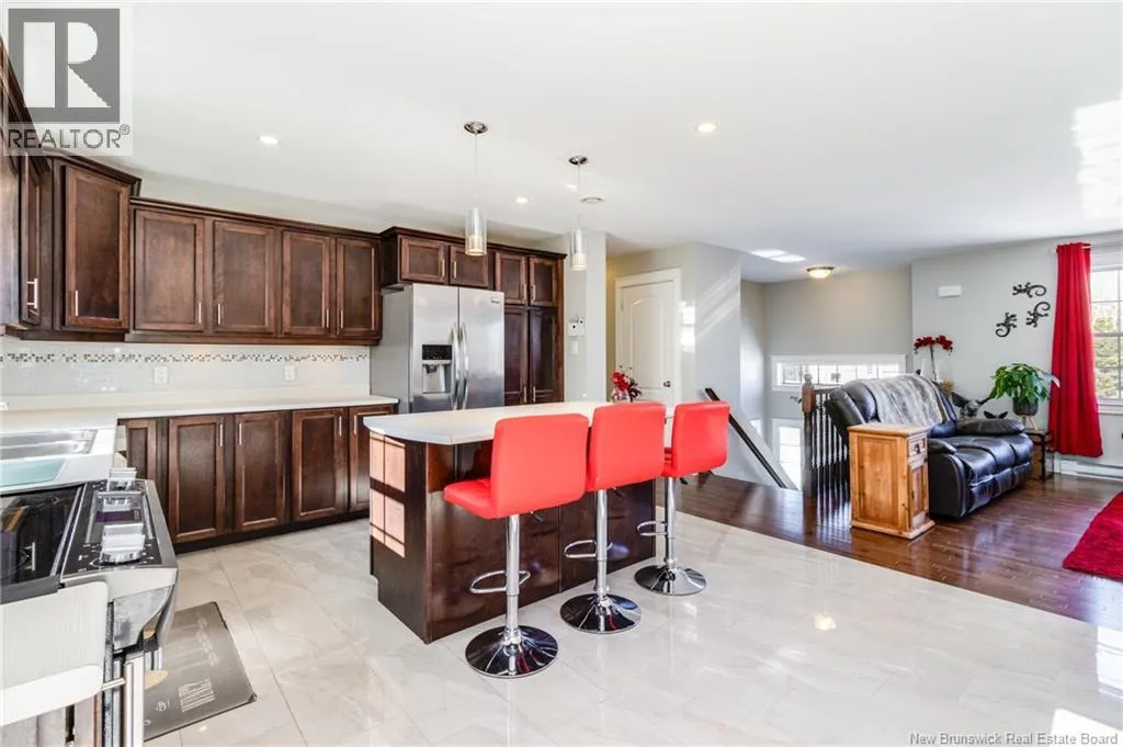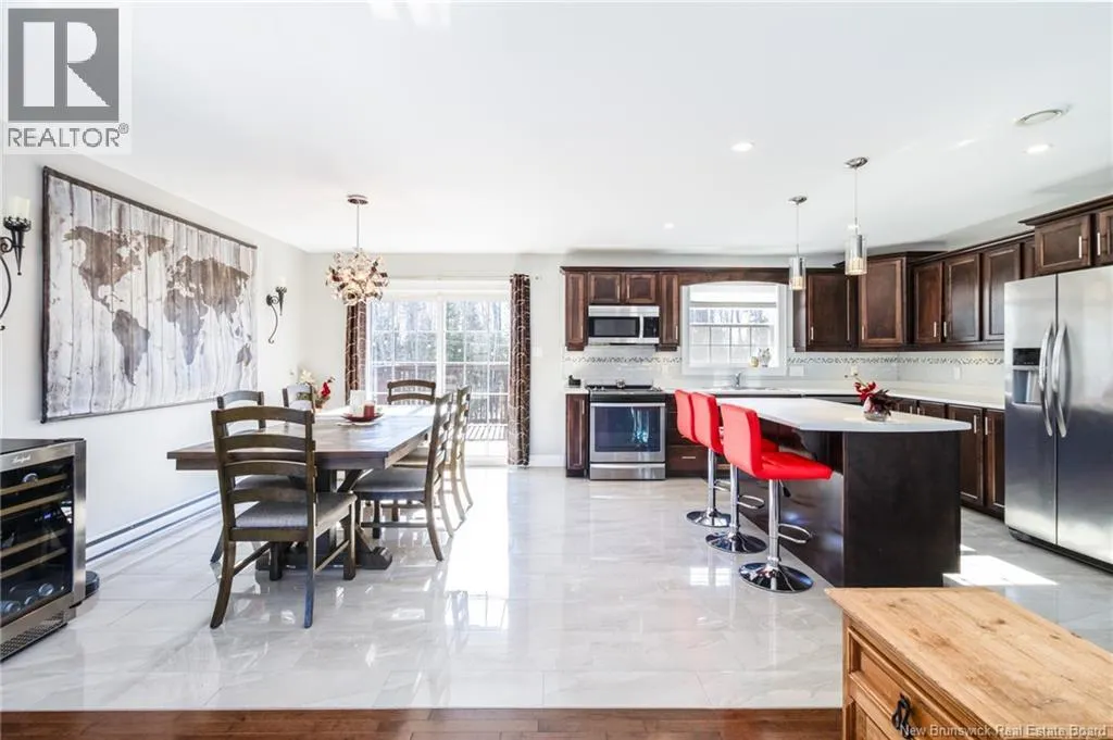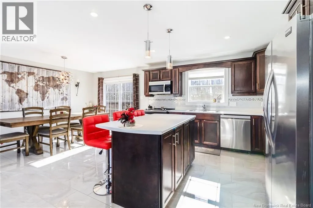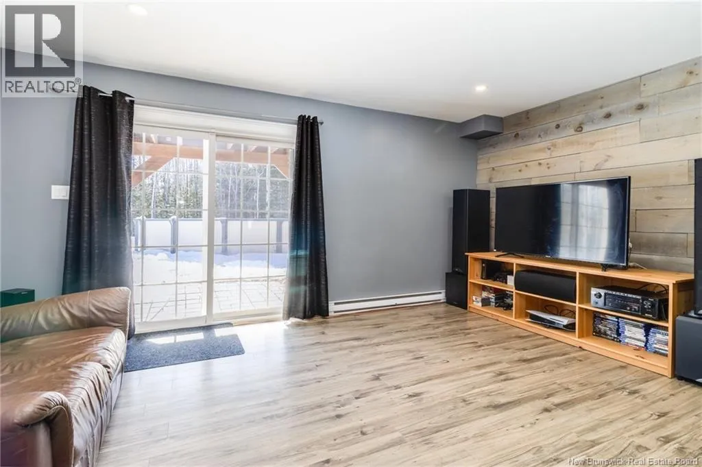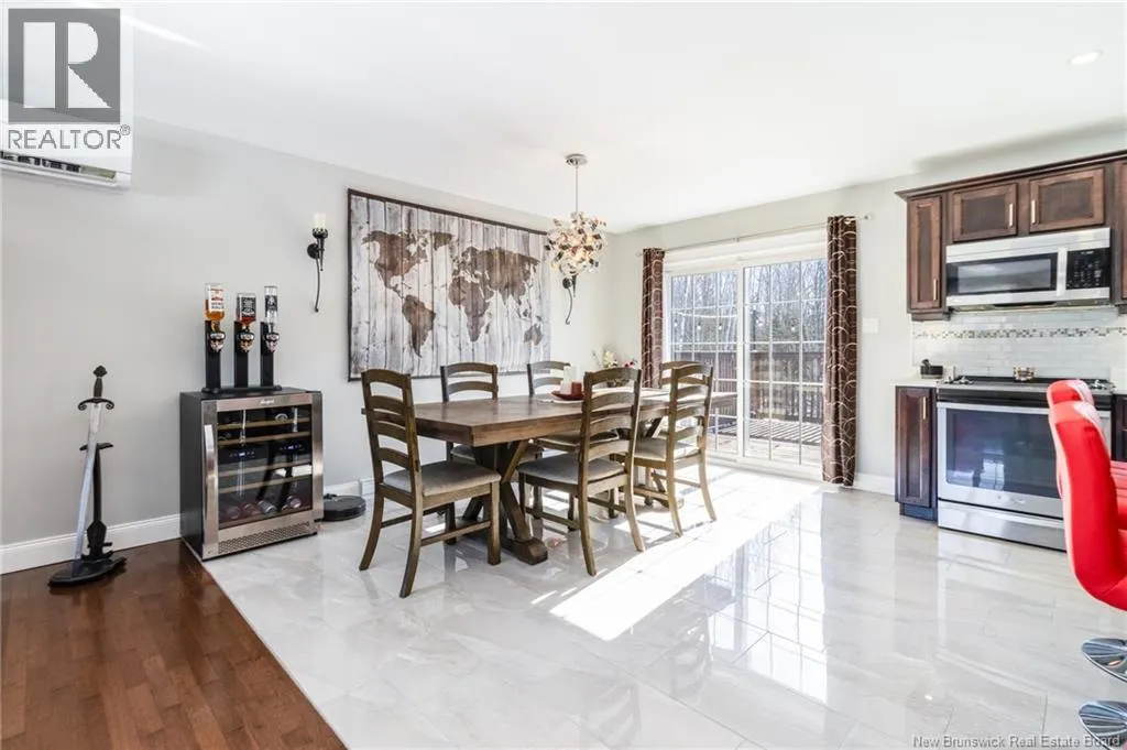 Wilsey Road to Berry Drive Welcome to 23 Berry Drive in Rusagonis. Located just 10 minutes to Fredericton and approximately 15 minutes to Oromocto, this beautiful split entry home offers the perfect balance of privacy and convenience. Custom built with thoughtful design, this bright and inviting 4-bedroom, 2-bathroom home features an abundance of windows that fill the space with natural light. The open concept main living area is ideal for both everyday living and entertaining. The spacious kitchen showcases sought-after dark wood cabinetry, plenty of counter and cupboard space, a large island with seating, pantry storage, and stunning porcelain flooring. Hardwood floors flow through the main living areas, creating a warm and cohesive feel throughout. The dining area provides direct access to the large back deck, perfect for summer BBQs and relaxing while overlooking the private backyard and above-ground pool. The main level also offers three well-sized bedrooms and a full bathroom. Downstairs youll find a spacious family room with walkout access to the backyard, an additional large bedroom, another full bathroom, and a separate utility room. The attached garage provides great storage and convenience year-round. Additional features include a heat pump for efficient heating and cooling, a paved double driveway, 2 storage shed, and over 1 acre of land offering space and privacy. (id:27476)
