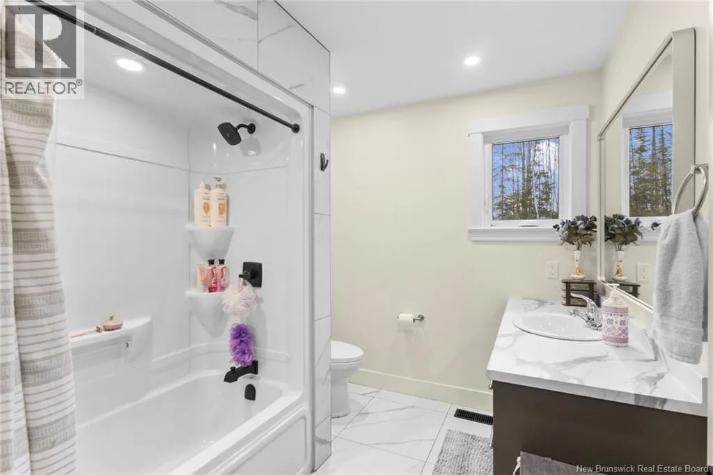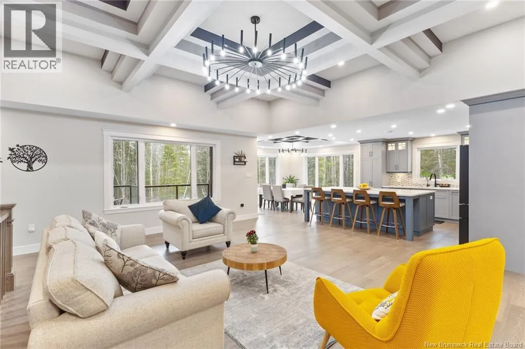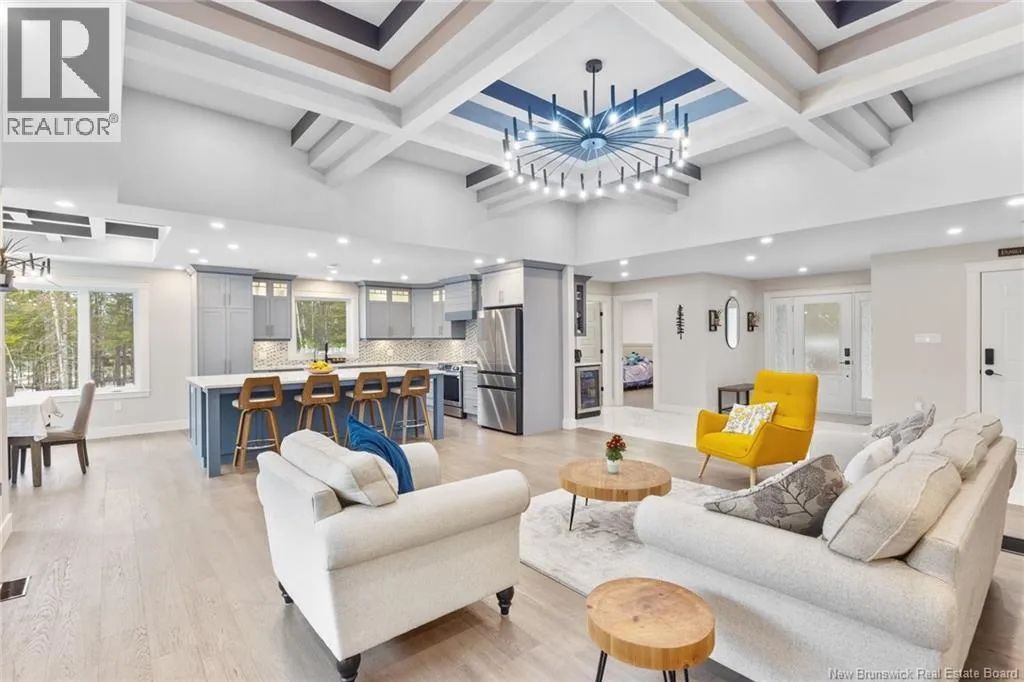From the Vanier Highway take Exit 5 towards Alison Blvd, turn right and then left onto Wilsey Road. At the 4 way stop turn left onto Route 655. Home will be on the right. Not your average new build this stunning, energy-efficient home is perfectly positioned between Oromocto & Fredericton, offering 3,200+ sq ft of finished living space w/ 6 beds & 4 full baths ideal for growing families or multi-gen living. The main level is drenched in natural light a space youll truly want to spend time in. Front foyer offers sightlines through the living area to the private backyard, while custom coffered tray ceilings immediately catch your eye. The beautifully designed kitchen features an oversized island + separate coffee bar for added function & charm. The primary bed showcases an elevated ensuite with oversized double shower, custom double vanity + spacious walk-in w/ wood-grained built-ins. This level also includes a 2nd bed, full bath & convenient main floor laundry. The fully finished lower level is packed with value offering 4 additional beds, 2 full baths & a spacious family room: perfect for guests, teens or flexible living. Outside: circular driveway + triple-car garage for standout curb appeal. Enjoy a paved basketball area, fully fenced backyard, stunning stone firepit, above-ground pool + hot tub your own private retreat! Built with upgraded 2lb closed-cell insulation + upgraded with an impressive 15.5 KW solar system delivering exceptional energy efficiency & long-term savings. A rare opportunity to own a modern home that blends space, comfort & smart living! (id:27476)