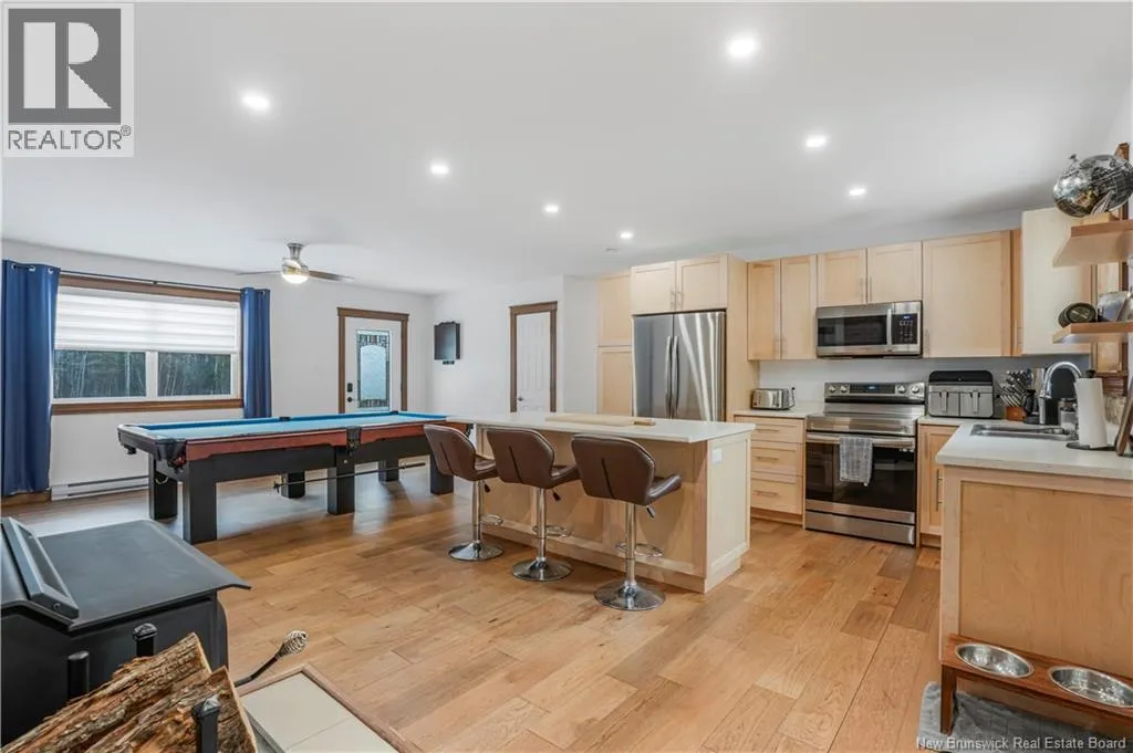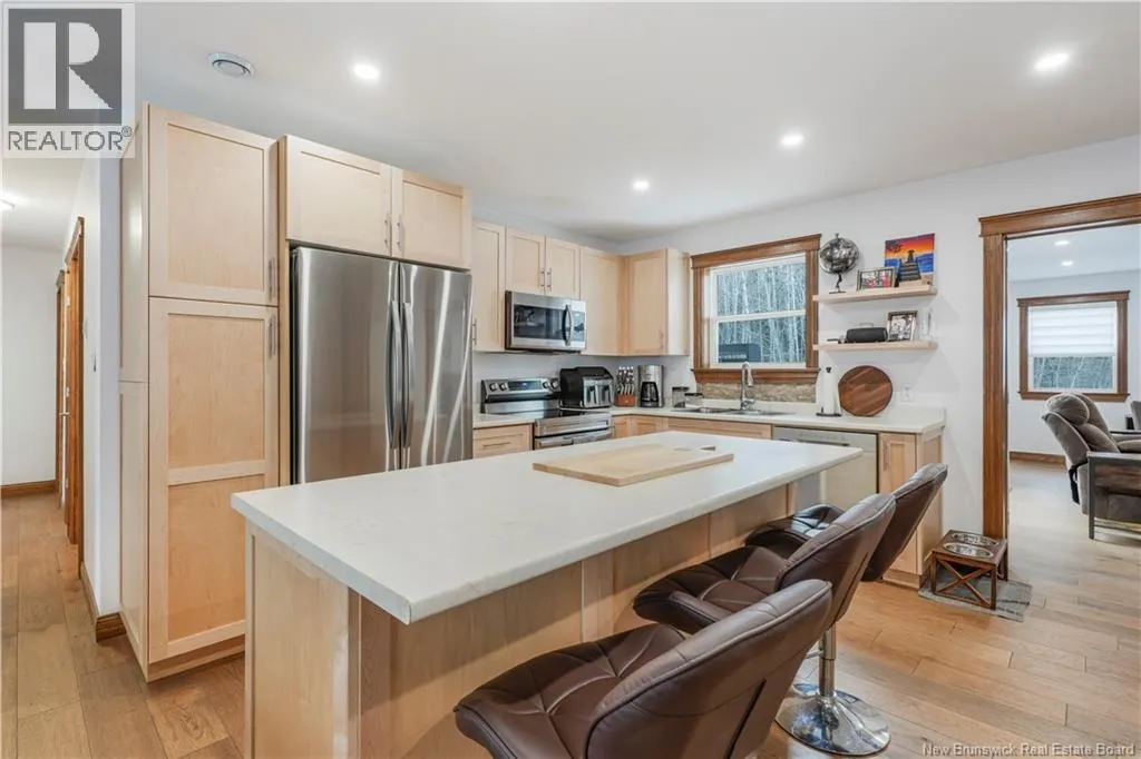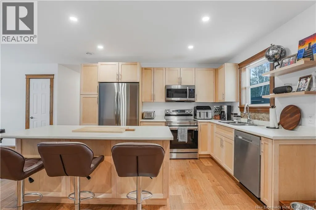 Fredericton South: Route 101 past Beaverdam, left onto Whittaker Rd right after bridge. Civic #603 Completely renovated from top to bottom! This beautifully updated 4-bedroom, 1-bathroom bungalow offers the ease and comfort of one-level living with full wheelchair accessibility. Step inside to a warm and inviting, bright open-concept layout featuring a stunning kitchen with natural wood cabinetry, a large centre island, and seamless flow into the spacious dining areaperfect for hosting family and friends. The bright living room at the back of the home provides a cozy retreat, with sliding patio doors leading to a fully fenced backyardideal for kids and pets to play safely. The thoughtful layout places three bedrooms and the main bathroom on one side of the home, while a fourth bedroom on the other side of the house offers flexibility as a home office or guest space. Enjoy year-round comfort with an efficient ductless heat pump for heating and cooling, and a cozy wood stove in the winter. The mudroom off the attached garage adds everyday convenience and storage. Located just outside the city, this meticulously cared-for home offers space, privacy, and a true move-in-ready opportunity! (id:27476)