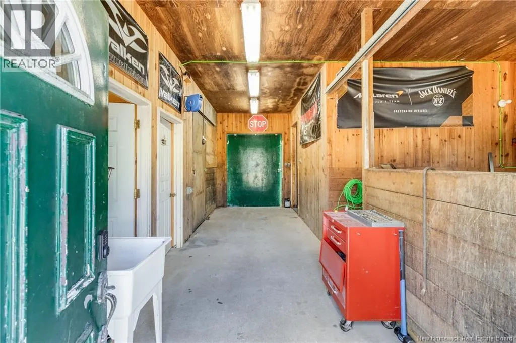 Directions: From New Maryland take Route 101. Turn left on Waasis Rd. (Route 655) Balsam is on your left, Welcome to 18 Balsam Driveyour perfect blend of comfort and country living. Nestled on a private 2-acre lot backing onto a peaceful stream, this charming bungalow is ideal for those seeking space, tranquility, and room to grow. Complete with a 3 stall horse barn with heated tack room and water heater as well as 3 paddocks with shelters and 550+ bale hayloft, its a fantastic opportunity for horse enthusiasts or hobby farm lovers. Step inside to a welcoming tiled foyer that leads into a bright living room, flowing seamlessly into the open-concept dining area and kitchen. The kitchen offers warm wood cabinetry, gleaming countertops, and a functional island with overhangperfect for casual dining or entertaining. The main level features a spacious full bathroom with a walk-in shower and relaxing jet tub, along with two comfortable bedrooms. Downstairs, youll find a generous rec room, utility space, a second full bathroom, and two additional bedroomsideal for family, guests, or home office needs. Located just 15 minutes from CFB Gagetown, this property offers the perfect balance of rural charm and convenient access. A rare find with space, versatility, and lifestyle appealdont miss your chance to call it home! (id:27476)