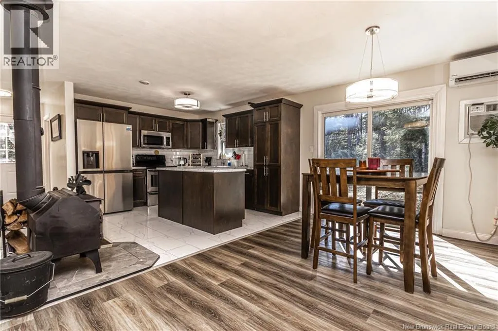 99 Whittaker Rd This 3-bedroom, 1.5-bath home offers comfortable one-level living on a slab with the added bonus of not one but two detached garages, including a double and a single, giving you plenty of room for vehicles, storage, hobbies, or workshop space. Inside, the open-concept kitchen and dining area creates a bright, welcoming central space with a wood stove for added warmth, patio door access to the private backyard, and a natural flow into the living room for easy everyday living and entertaining. Three comfortable bedrooms provide space for family, guests, or a home office, with the primary bedroom featuring a ductless split heat pump for added year-round comfort. The main bath features a soaker tub and glass-walled walk-in shower, while the half bath includes laundry for everyday convenience. A solid option for buyers looking for practical space, useful extras, and comfortable living all on one level. (id:27476)