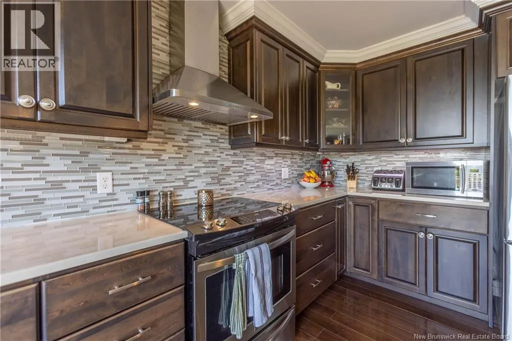 From downtown Sackville head North on Main, turn left onto Walker. CUSTOM-BUILT LAKEFRONT HOME TUCKED INTO A 2.5 ACRE PROPERTY! This is a gorgeous home offering direct lakefront access to Silver Lake perfect for kayaks, canoes, and boating. Tucked back on the lot with a winding paved driveway, this home has great curb appeal. The covered front porch leads through to the spacious foyer. The living room has a stacked stone electric fireplace and lake views, and opens onto the beautiful kitchen with dark cabinets, quartz countertops, and patio doors to the deck. There is a lovely dining room with paneled detailing. The primary suite is impressive - at 16'8x17'11, with an adjoining walk in closet and dream bathroom with custom tiled shower, double vanity, and soaker tub. On the opposite end of the main floor are two guest bedrooms and a second full bath. The main floor also has a mudroom with laundry, and access to the double-car garage. The basement is fully finished with a rec room/games room, a built-in dry bar, two additional bedrooms, a third full bath, and a storage/utility room. The property is beautiful with over 450 feet along Silver Lake, many mature trees, garden beds, and even an above-ground pool! Whether you're looking for lakefront retirement or a fantastic family home - this is the one! This home has a ducted central air heat pump, and in-floor hot water heating in the basement slab. Updates include: built in 2015, deck added (2016), driveway paved (2018), walkway (2019), generator plug (2022), 20amp spa breaker on deck (2022). (id:27476)