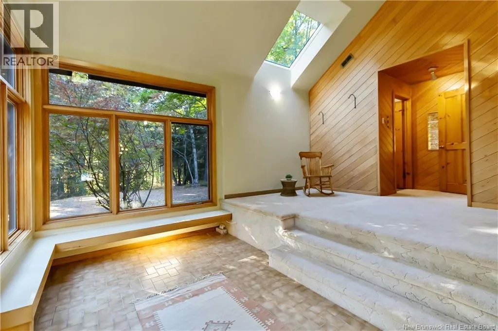 From Moncton, take the Trans Canada Hwy 2 towards Sackville. Take Route 940 exit to Walker Road. Turn left onto Walker Road and then, after 2km, turn left onto Woodlane Drive. The house is the 4th on the right. Welcome to 29 Woodlane Drive, a home unlike any other - a magical forest retreat on the shores of Silver Lake. Nestled in almost 5 private acres and graced by 253 ft of pristine lake frontage, this enchanting residence feels like something out of a storybook, where time slows, sunlight filters through the trees, and every detail whispers connection to nature. A long spruce-lined driveway, watched over by two beautifully hand-carved trees, leads to a masterpiece built entirely of spruce, inside and out. Inside, grand vaulted ceilings rise above light-filled spaces, while custom stained-glass panels, handcrafted in Nova Scotia, shimmer with hues that echo tree rings and woodland light. When built, the homes theme was called Glimpses - each level designed to frame a new view of the lake, the forest canopy, or the soft shifting sky. The walk-out lower level offers in-law suite potential, with a private entrance, two bedrooms, a full bath, and a cozy living area, ideal for guests or multi-generational living. Upstairs, the primary suite feels like a secluded hideaway, with its own deck, walk-in closet, and ensuite. With cladded double-pane windows, enhanced insulation, and a 24 Ã 24 detached garage, this home blends craftsmanship and comfort. More than a home, 29 Woodlane Drive is a lifestyle - a lakeside haven where design, serenity, and nature come together in perfect harmony. Come experience the magic for yourself! (id:27476)