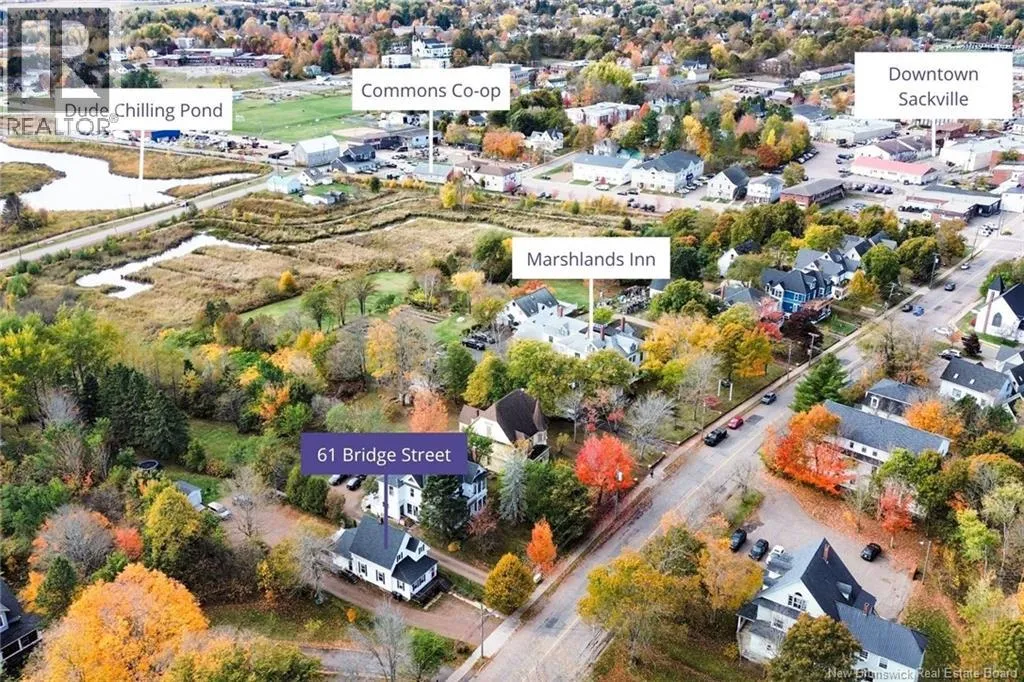 From Main st, Stop at Lights in centre of town, turn left onto Bridge n 61 Bridge just past Marshlands Inn right hand side Discover this charming home in a private setting with a large backyard and plenty of privacy. Well maintained throughout, the property currently features a small spa business at the back of the house, which could easily be converted into an additional bedroom or living space. The main floor offers a dining area, a cozy eat-in kitchen, a comfortable living room, and a front office that can also serve as a bedroom or home workspace. A convenient three-piece bath completes the main level. Upstairs, youll find three bedrooms and a full four-piece bath, with a total living area of approximately 1,600 square feet. Ideally located within walking distance to Mount Allison University, downtown shopping, and local cafés. (id:27476)