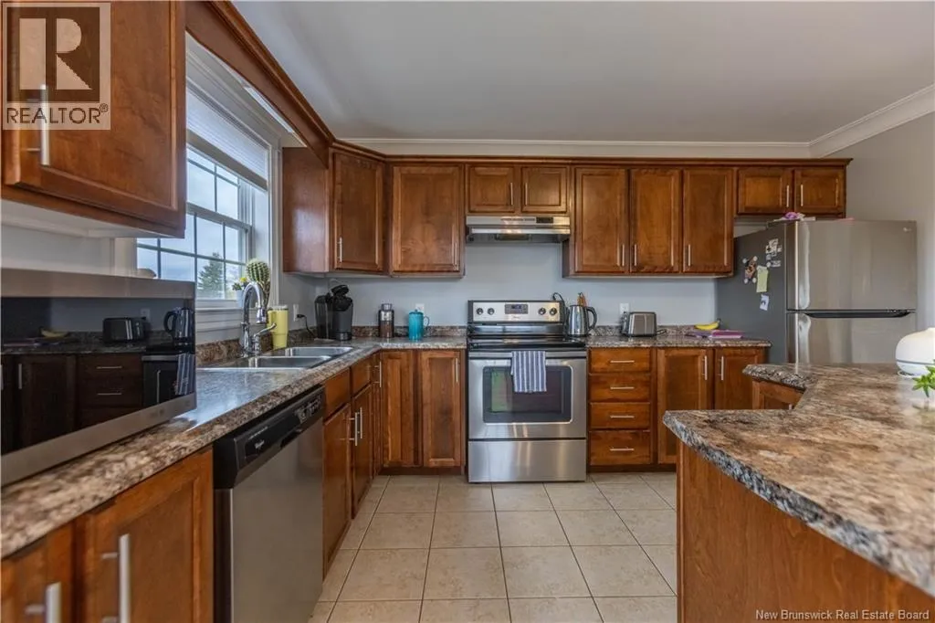 From Main St, Sackville take King St to Hesler, Ridgewood Drive is on your left Welcome to 34 Ridgewood Drive, in Sackville NB! This warm, bright, and inviting home offers 4 bedrooms, 2.5 baths an attached double car garage, paved driveway and sits on just over an acre. Located in a desirable Sackville neighbourhood, offering the perfect blend of comfort and convenience. The main level features hardwood, ceramic, and laminate flooring, a spacious living area filled with natural light, a functional kitchen with an island providing extra counter space, the dining room is bright with a patio door to the back deck, this space is ideal for family living. Down the hall you will find primary bedroom with a 4 piece ensuite, two more bedrooms and a 4 piece bath. The above grade lower level offers additional living space with a family room, the fourth bedroom a half bath/laundry area a utility room and storage. This level also offers direct access to the double attached garage. Comfort is ensured year-round with two mini splits, and a new roof adds peace of mind. Step outside and enjoy the peace and privacy of your expansive 1-acre lot, which boasts a baby barn with a patio, a private backyard, and access to your own wooded nature spot with charming trails, a perfect place for walking the dog or letting the kids explore. Conveniently located close to downtown Sackville, the highway, and recreational snowmobile and ATV trails, this home combines small-town charm with modern comfort. (id:27476)