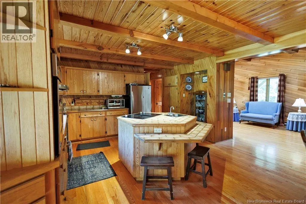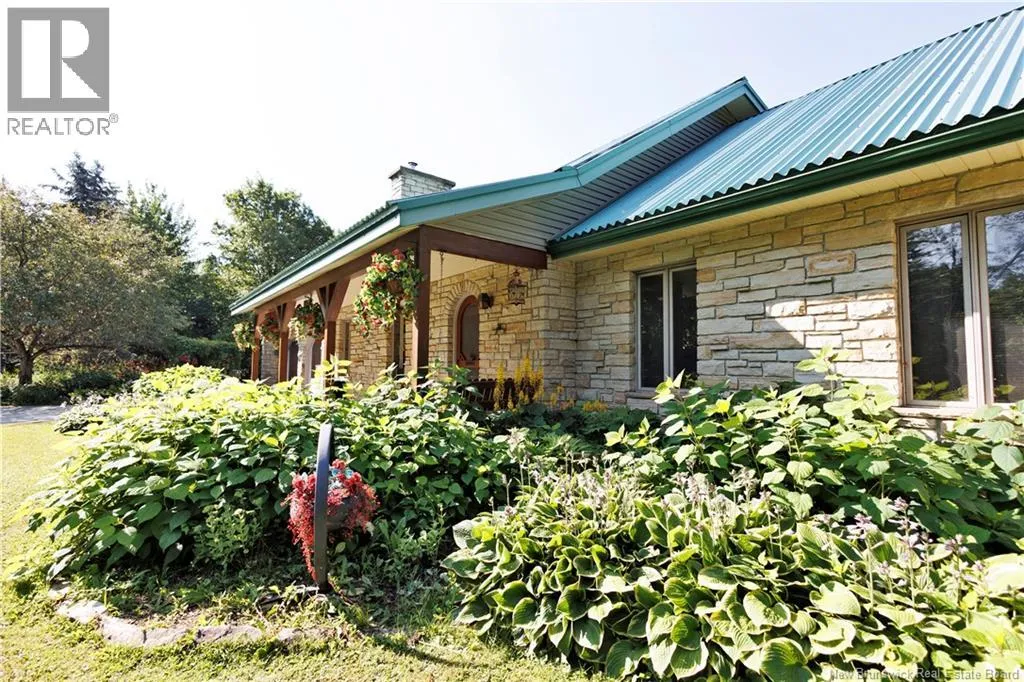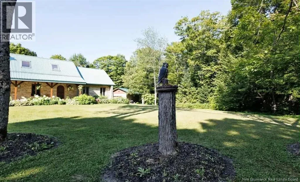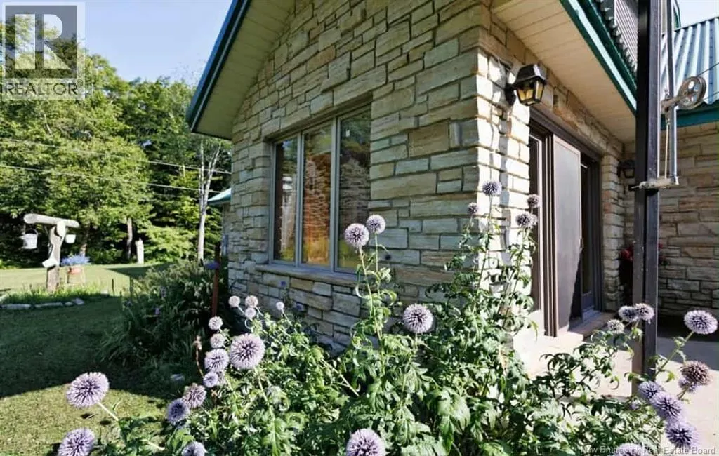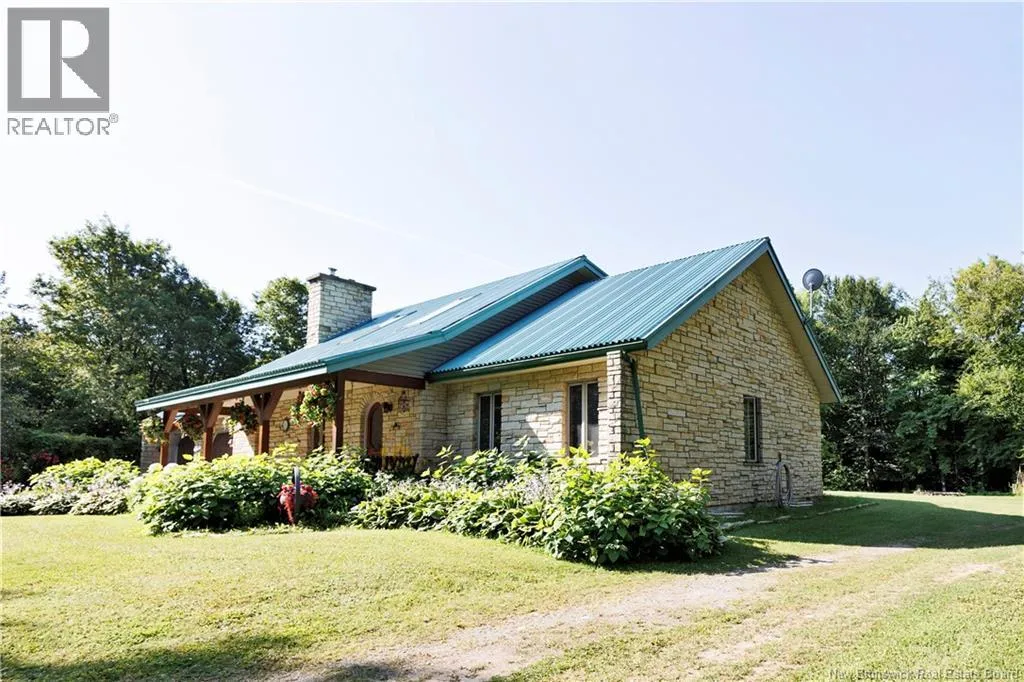 From Madwaska Rd. Turn right onto St Andre Rd. 2.1km turn left. 350m arrive at the property. Nestled in the serene woodlands of St. André, this exceptional stone residence offers timeless craftsmanship, privacy, and refined comfort. Surrounded by nature, the home provides a peaceful retreat while remaining conveniently close to Grand Falls and major routes. The spacious layout features multiple bedrooms and bathrooms with open-concept living areas ideal for family life and entertaining. A striking stone exterior showcases enduring quality, while warm architectural details enhance the homes character throughout. The gourmet kitchen includes custom cabinetry and generous counter space, flowing seamlessly into bright living and dining areas with large windows overlooking the forest. The main floor primary suite offers privacy and comfort with an ensuite bath and walk-in closet, complemented by three additional bedrooms. Outdoor living is highlighted by an expansive front porch and patio, walking trails, and ample space for gardens or recreation. Additional features include cozy fireplaces, vaulted ceilings, abundant storage, a large garage, and a wood/oil forced-air furnace with a substantial under-garage firewood storage room. The property also includes a large shop for equipment storage and a furnished guest cabin with wood stove. More than a home, this is a private woodland lifestyle retreat with space, charm, and lasting appeal. (id:27476)