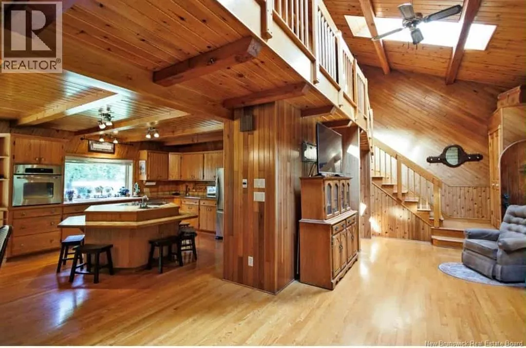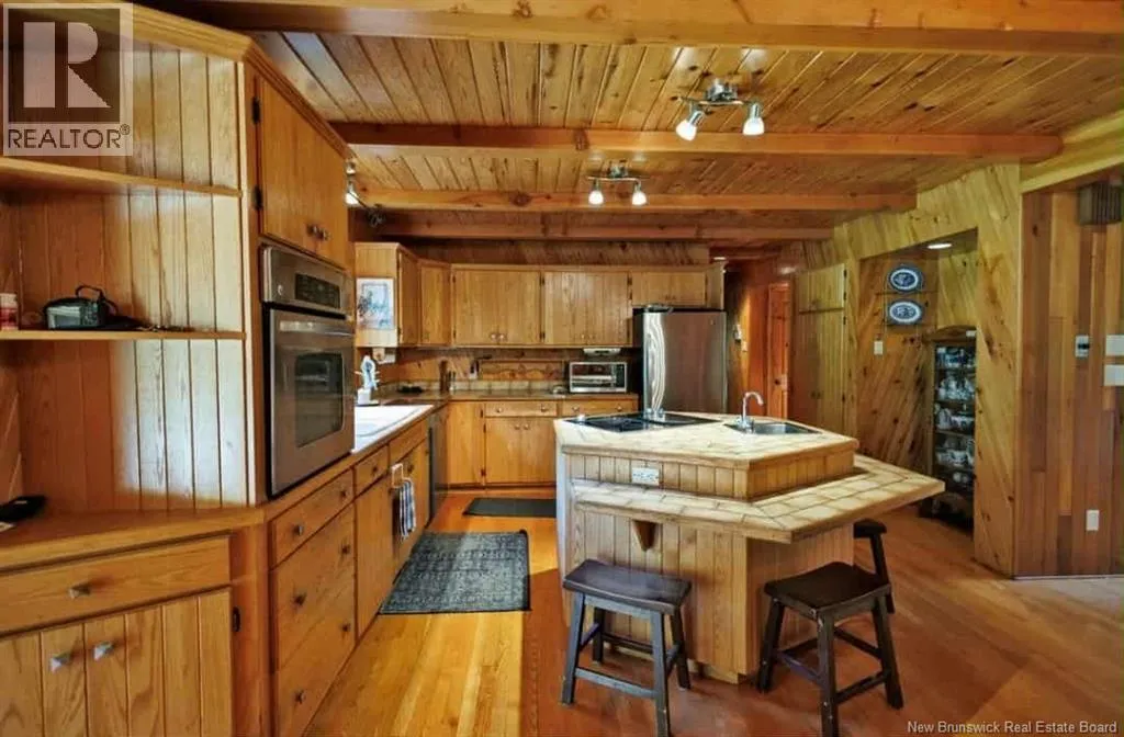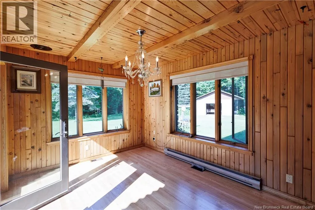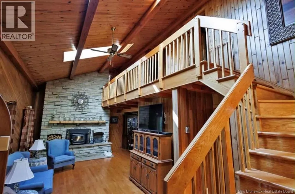From Madwaska Rd. Turn right onto St Andre Rd. 2.1km turn left. 350m arrive at the property. Nestled in the serene woodlands of St. André, this exceptional stone residence offers timeless craftsmanship, privacy, and refined comfort. Surrounded by nature, the home provides a peaceful retreat while remaining conveniently close to Grand Falls and major routes. The spacious layout features multiple bedrooms and bathrooms with open-concept living areas ideal for family life and entertaining. A striking stone exterior showcases enduring quality, while warm architectural details enhance the homes character throughout. The gourmet kitchen includes custom cabinetry and generous counter space, flowing seamlessly into bright living and dining areas with large windows overlooking the forest. The main floor primary suite offers privacy and comfort with an ensuite bath and walk-in closet, complemented by three additional bedrooms. Outdoor living is highlighted by an expansive front porch and patio, walking trails, and ample space for gardens or recreation. Additional features include cozy fireplaces, vaulted ceilings, abundant storage, a large garage, and a wood/oil forced-air furnace with a substantial under-garage firewood storage room. The property also includes a large shop for equipment storage and a furnished guest cabin with wood stove. More than a home, this is a private woodland lifestyle retreat with space, charm, and lasting appeal. (id:27476)