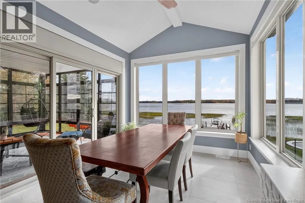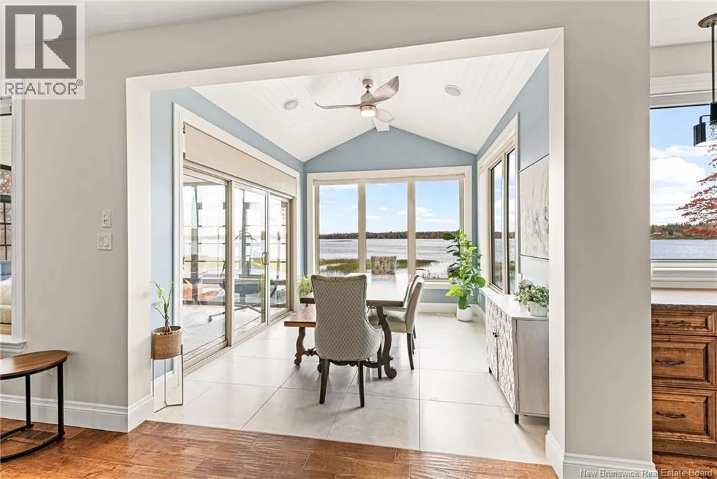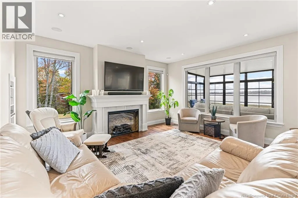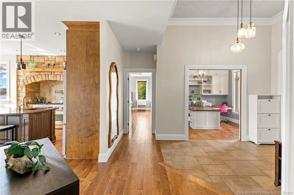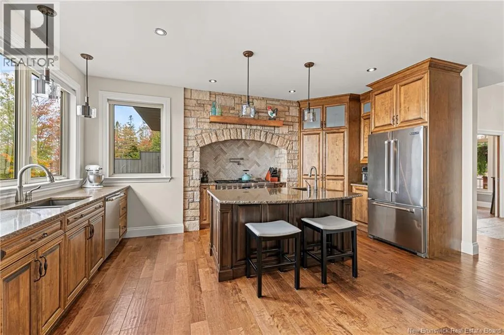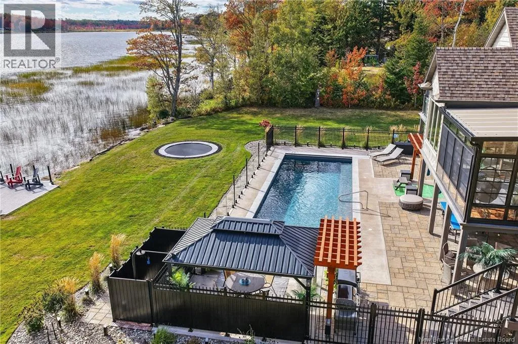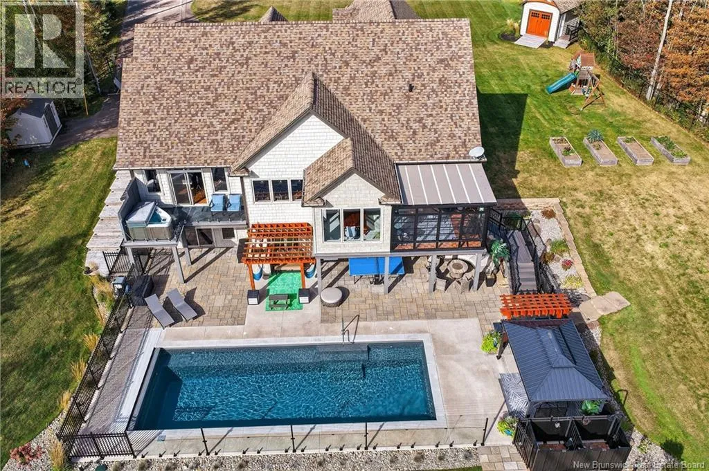 From Moncton, take Route 15 east toward Shediac / Cap-Pelé. Take the Cormier Road exit (on your right). Turn left onto Leblanc Road. Continue straight (Leblanc Road becomes Babineau Road). When you reach a gravel road directly ahead, that is Square Lake Road. Continue until you see 430. GEOTHERMAL HEATING! Welcome to 430 Square Lake in Saint-Andre, NB, where it feels like vacation every day. This exquisitely lakefront bungalow, with a walkout basement, offers 4,280 sq. ft. of refined living, where timeless craftsmanship meets modern comfort. Soaring ceilings, rich finishes, and panoramic lake views define every space. The main level features an inviting foyer, a private office, and an open-concept kitchen with granite and quartz surfaces, a large island, professional-grade appliances, and a walk-in pantry. A sun-filled dining area flows seamlessly into a 3-season gazebo with a Sunspace window system. The living room is anchored by a fireplace and complemented by a wet bar, creating the perfect space for entertaining. The primary suite offers a walk-in closet, a spa-inspired ensuite with a tiled shower, and a private balcony with a hot tub overlooking the water. A versatile bonus room sits above the heated double garage. The walkout level features a family room with a fireplace, two bedrooms, a full bath, a show-stopping wine cellar, a second living space currently used as a gym area, and a second kitchen. Outdoor living shines with a 16Ã40 heated saltwater pool with a retractable cover, a cedar pergola, a fire pit, a dock system, and an outdoor kitchen. Geothermal heating (3 zones), heated floors, generator panel, camera system, and soft landscape lighting complete this exceptional lakeside retreatOnly 30 minutes from the Greater Moncton airport. (id:27476)