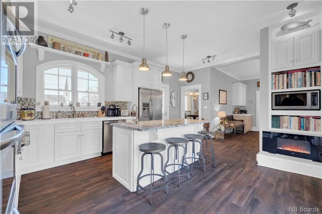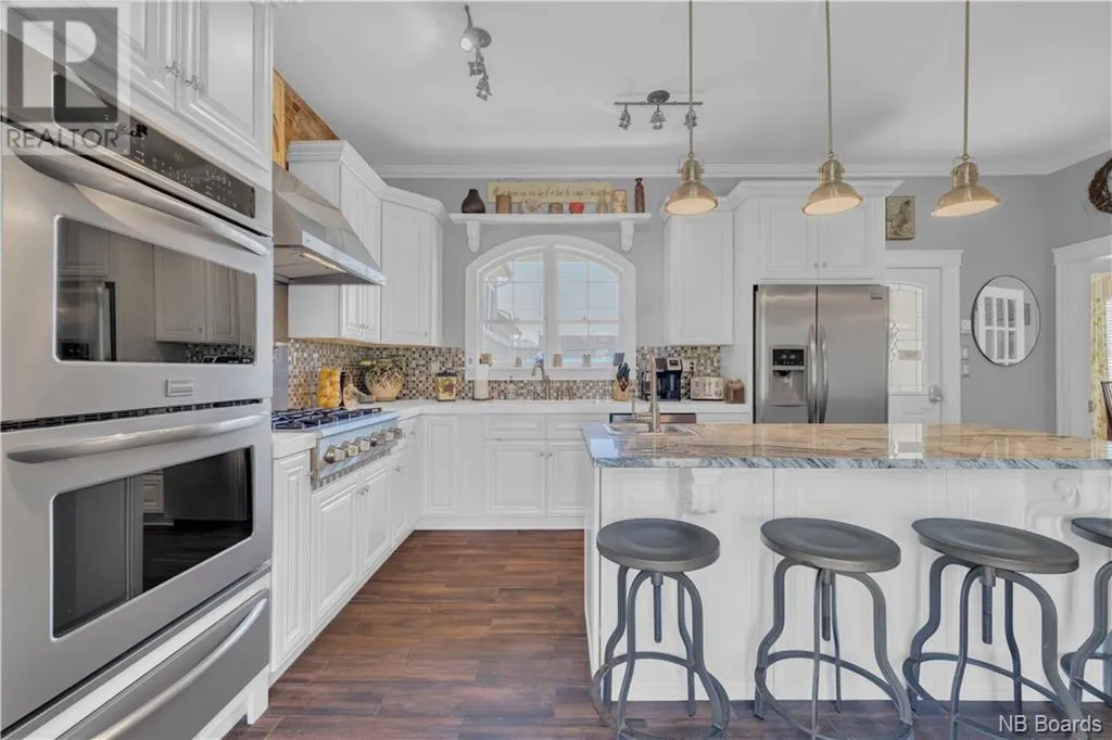 The epitome of luxury and class! This stunning 3+ bedroom home will have you falling in love from the first glance. Located in iconic St. Andrews by-the-Sea, you are steps away from downtown on a double corner lot. This home has seen extensive renovations with attention to detail and top-tier craftsmanship using only premier, modern finishes. The gourmet kitchen is a showstopper, featuring a large prep island, 6-burner gas stove with pot-filler, wine cooler, fireplace, and double wall oven. It flows directly into the multi-level rear deck, sitting room/bar, and powder roomideal for entertaining. Dual dining areas offer flexibility, with a formal dining room flowing into the parlour, and a casual dining space adjacent to the kitchen. A second powder room is ideally placed for guests. Upstairs are 2 well-appointed bedrooms, a full bath/laundry, and the elegant primary suite with curved bay windows, walk-in closet, and a luxurious ensuite with multi-jet rain shower, jetted tub, fireplace, and double vanity. Above the 3-bay garage is a 4th bedroom suite, currently used as a gym and games room, easily converted for rental or guest use. Many furnishings are included in the salelist provided upon request. Book your private viewing today! (id:27476)