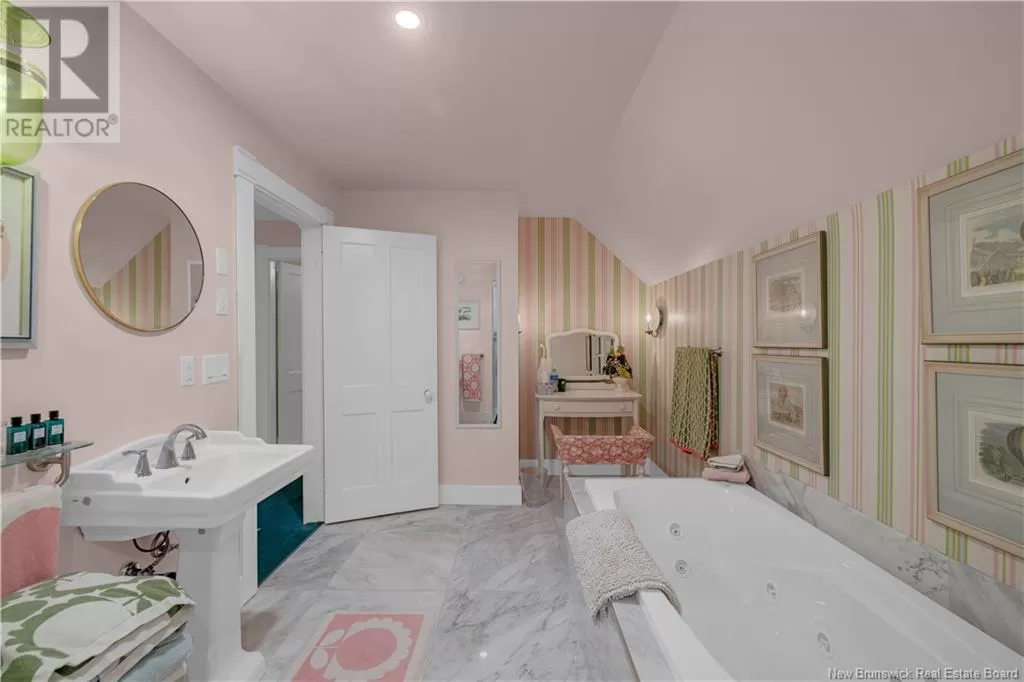 CHALLENGE: Identifying an ideal property. SOLUTION: Canadian Maritimes! Welcome to 91 Cedar Lane. A striking 5 bedroom, 4 bathroom house located in historic St. Andrews by-the-Sea on the Bay of Fundy in New Brunswick, Canada. One of the most impressive residences in the Canadian Maritimes, 25 minute drive from the U.S. Maine border. Located in a prestigious neighbourhood in the oldest seaside resort town in Canada. Breathtaking views of the iconic Algonquin Golf Course (established in 1894 and reworked in 1920s by famous golf architect, Donald Ross). Location is a 5 minute drive/15 minute walk to the charming town of St. Andrews. Close proximity to tennis, walking/biking paths, tourist attractions. Lovely small apple/pear tree orchard in the back of the property. One hour fifteen minute drive from Airport, 20 minute drive from private airstrip, 5 hour drive from Boston or Halifax. Design touches throughout the house and property surroundings reflect rare attention to spectacular architecture and detail for those who value quality, privacy and unforgettable design. Masterfully reimagined in 2022 by Architectural Designer John Haddon. A masterpiece which boasts too many details to list (please refer to brochure). Enjoy the photos and video to capture the wonderful flow of this showpiece. This property is exempt from the Federal Ban on Foreign Buyers. Approx. 2.15 mill USD, 1.85 mill EUR, 1.6 mill GBP (id:27476)