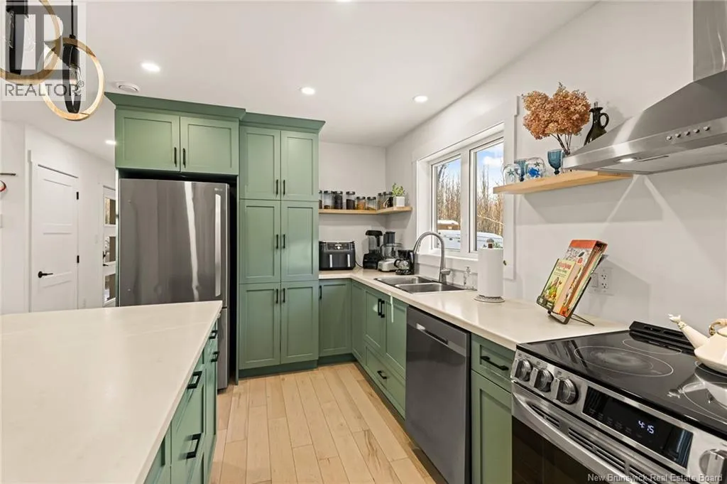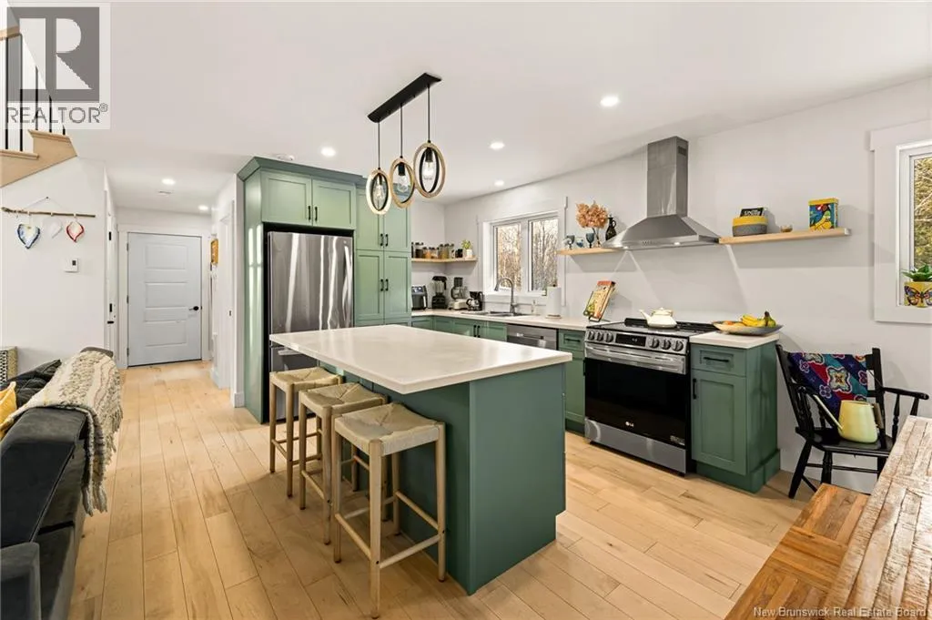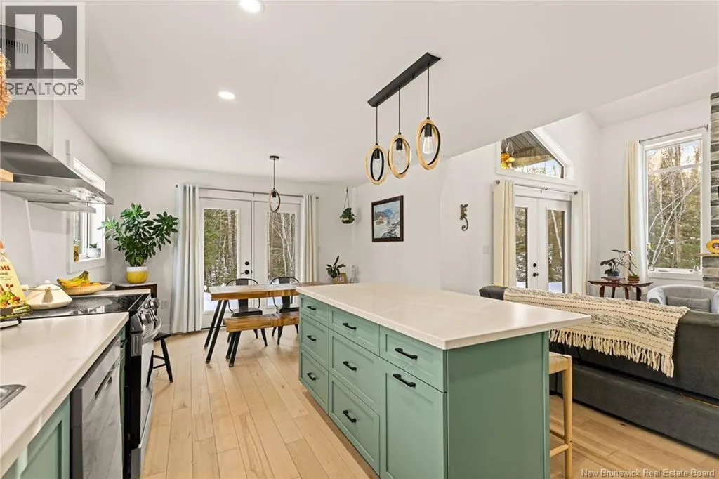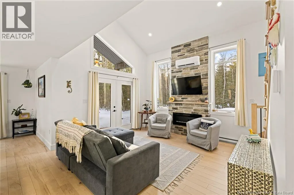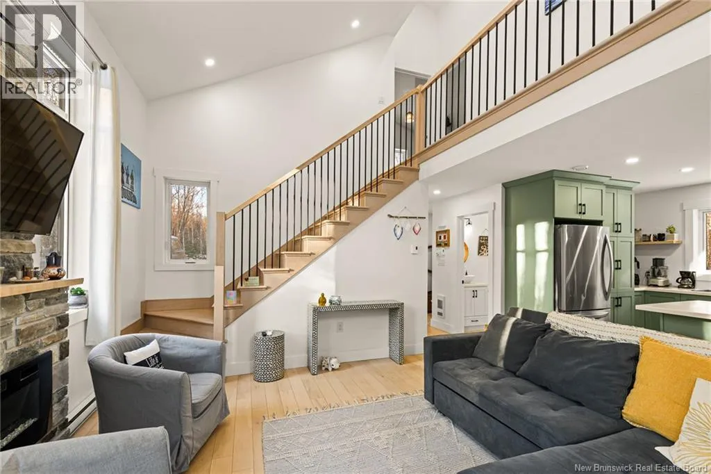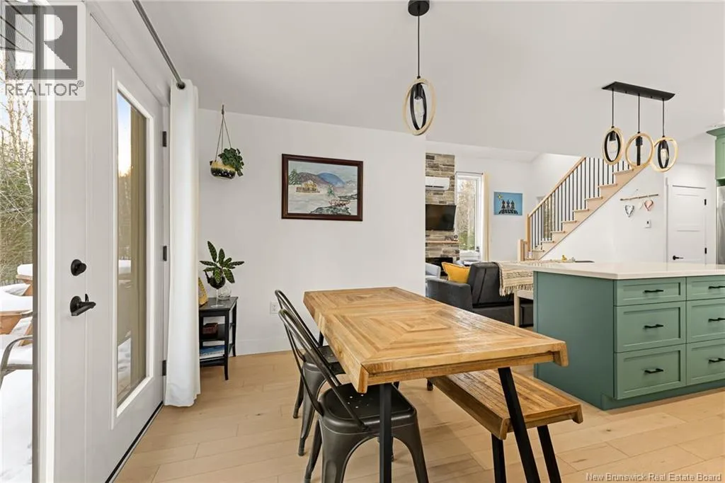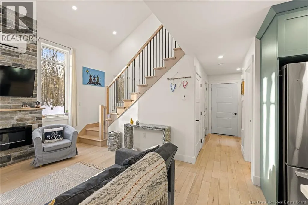 Head north on NB-11 and take Exit 27 for NB-115 toward NB-134/NB-535/McKees Mills/St. Thomas. At the end of the ramp, turn left onto NB-115 South, following the signs for Moncton. Continue along NB-115 South, then turn right onto Sheridan Road. Next, turn left onto Chemin Kay. Your destination will be on the left. Welcome to 368 Kay Road in Saint-Antoinea stunning two-storey home built in December 2022, perfectly nestled on a private, treed 2-acre riverfront lot. This beautiful new construction offers the ideal blend of modern comfort and natural serenity. Step inside to discover engineered hardwood and ceramic tile throughout. The bright dining room features patio access, perfect for entertaining or enjoying peaceful views of the brook. The stylish kitchen consists of epoxy countertops, light cabinetry, stainless steel fridge, stove, dishwasher, hood fan, and a double sink for added convenience. The inviting living room showcases a vaulted ceiling, electric fireplace, and patio doors that bring in natural light and connect you to the outdoors. A convenient 2-piece bath completes the main level. Upstairs, youll find two spacious bedrooms with vaulted ceilings. The primary bedroom offers a private balcony and walk-in closet with pocket doors. A full 4-piece bathroom includes washer and dryer, which remain with the home. Comfort is ensured year-round with two mini-split heat pumps plus baseboard heating. Exterior highlights include cedar siding, vinyl windows, a durable metal roof, and a 60-amp generator backup panel for peace of mind. An attached 21.6 x 12.0 garage completes this exceptional property. Modern living meets tranquil waterfrontdont miss this opportunity! Contact your REALTOR® today to schedule your private showing (id:27476)
