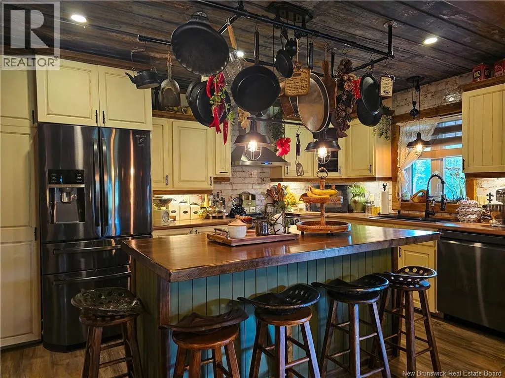 1.Partir de chemin Smith dans la direction qui vous permet de rejoindre le chemin Davis. 2.Prendre le chemin Davis (suivre les panneaux ou la route locale qui mène vers Davis). 3.Continuer sur le chemin Davis jusquà ce quil intersecte ou se croise avec le chemin Rivière-Verte, ou une route vous permettant de bifurquer vers Rivière-Verte. 4.Tourner sur chemin Rivière-Verte (suivre les indications ou panneaux) en direction du numéro 1685. 5.Suivre chemin Rivière-Verte jusquau lieu-dit 1685. Chercher les repères tels que boîtes à lettres, numérotation, ou propriétés voisines pour sassurer du bon numéro. Découvrez ce chalet dexception, complètement rénové et reconstruit en 2019, offrant un mariage parfait entre confort moderne et nature apaisante. Située en bordure de rivière, cette propriété vous propose une vue imprenable et une atmosphère unique, à seulement 15 minutes de la ville dEdmundston par une magnifique route pavée. Dès votre arrivée, vous serez charmés par lenvironnement naturel qui rappelle un véritable resort privé. La propriété est aménagée avec soin : gazebo, cuisine extérieure, spa, ainsi quun garage détaché avec loft à létage, idéal pour accueillir famille ou invités. à lintérieur, laire ouverte relie la cuisine rustique et le salon chaleureux avec poêle à bois, créant une ambiance conviviale. Une grande salle à dîner, dotée dun comptoir-bar pratique, complète parfaitement lespace de vie. Vous y beaucoup de rangements et une pantry fonctionnelle. Vous serez charmés par la hauteur impressionnante des plafonds cathédrales, où chaque détail a été pensé. à létage, la suite principale avec salle deau saccompagne de quatre lits superposés et dun coin lecture baigné de lumière, offrant une vue imprenable sur la rivière. Ce chalet est un véritable bijou rare, construit avec des matériaux de qualité supérieure et pensé dans les moindres détails. Un lieu où charme, confort et nature sunissent pour créer un havre de paix incomparable. (id:27476)