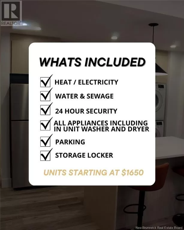 Welcome to the completely restored Bayard Suites. Every inch of this converted commercial building has been redone to create brand new modern apartments that are both beautiful and functional. Conveniently located within walking distance of Saint John's unique uptown, you'll enjoy access to the the vibrant nightlife, incredible restaurants and stunning Saint John waterfront. Do you enjoy sporting events, concerts and other great entertainment? Imagine being able to walk to Harbor Station, or the Imperial theatre to enjoy all the best of our city's Arts and Culture. A quick stroll will take you to North Americas most historic City Market where you will find a variety of delicious food and other vendors that will keep you coming back. All floors of Bayard Suites are serviced by an elevator and the building is protected with a state of the art 24 hour security system. Available units are 1 bedroom, 1 bathroom and include all 5 appliances including in unit washer and dryer. Rent includes: heat, lights, parking and storage locker. These wont last long, reach out today for your private showing. (id:27476)
