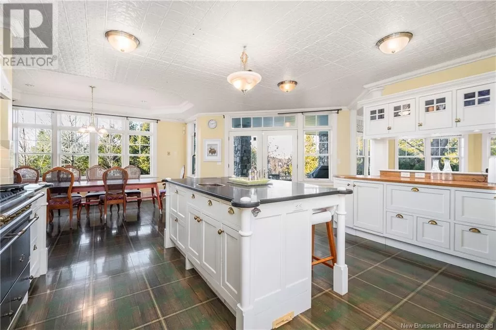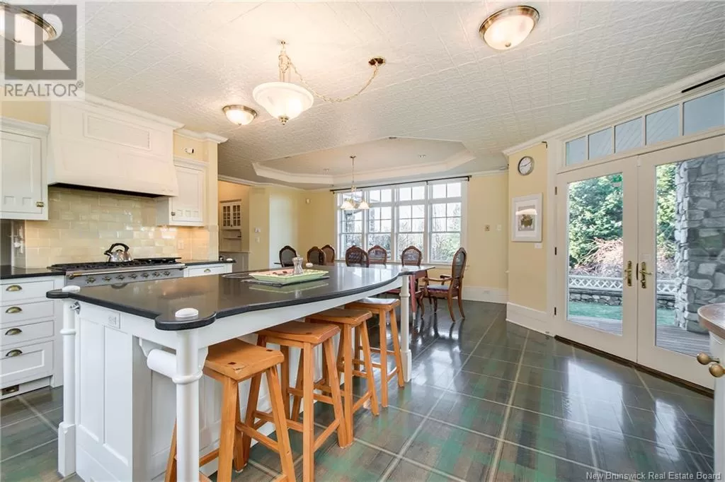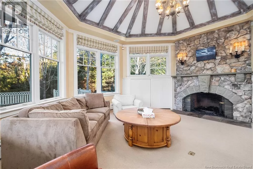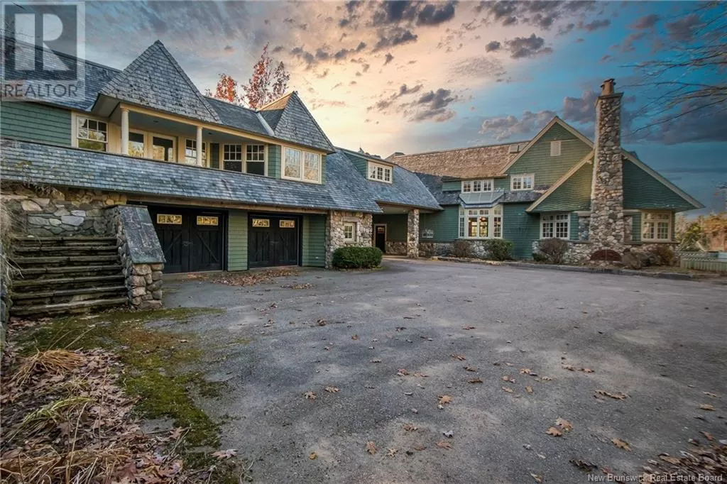 Just after Tucker Park ±1,867 ft on Kennebecasis Drive; ±2,133 ft along the Kennebecasis River This beautiful, exclusive,estate is situated on one of the best waterfront properties in Southern NB.Overlooking the picturesque Kennebecasis River, this exceptional, custom built,classic New England Shingle Style home offers private luxury living.With 5 bedrooms, 6 baths and a 2 ½ car garage, it provides a residential retreat in a natural setting in the city of Saint John. The 46 acres of natural landscape, direct access to approximately 2,100 feet of shore frontage on the Kennebecasis River, and 1,800 feet along the road make this property unique. The property boasts beautiful, naturalistic views of the sparkling river. You will enjoy glorious sunsets and star filled night skies from the multiple decks on the home.The beautiful, private sandy beach offers swimming and a place to moor a boat. Upon entering the home, you will be amazed with the quality of construction and attention to detail. In addition to spacious bedrooms, the home also features many rooms that take advantage of the amazing views and natural surroundings.Accented by sweeping staircases, gorgeous fireplaces, moldings and exposed beams, you will appreciate the detail put into every room.The design is structured around a west wing and east wing layout. The west wing includes: foyer, living room, dining room, and library on the first floor, with the primary and guest suites on the upper levels. The east wing includes the kitchen, living room, mud room along with the balance of the bedrooms on the upper level. (id:27476)