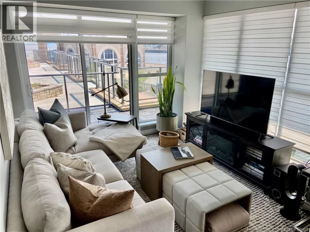 This stunning 1037 sq ft condominium in uptown Saint. John, NB, overlooks the harbour with both westerly and southerly exposures, offering breathtaking sunset and scenic views. The spacious wrap-around newly tiled deck is perfect for outdoor entertaining and relaxing. Inside, the home features two bedrooms plus a den/office, along with a private primary ensuite that includes a bathtub, stand-up shower, double vanity and WI closet. An additional full bathroom adds convenience. The apartment boasts hardwood floors and ceramic tile throughout for a stylish, durable finish. Located close to uptown restaurants, entertainment, theaters, and shopping, you'll enjoy vibrant city living. The building offers underground heated parking, a fitness room, a guest suite, and a community space ideal for social events, fostering a welcoming neighbourhood. Condo fees are $601.46 and include heat, electricity. hot water, sewage and garbage removal, and M-F 9-4pm reception.Please note taxes reflect non owner occupied. This residence combines comfort, elegance, and an unbeatable location, making it an exceptional waterfront lifestyle opportunity. (id:27476)